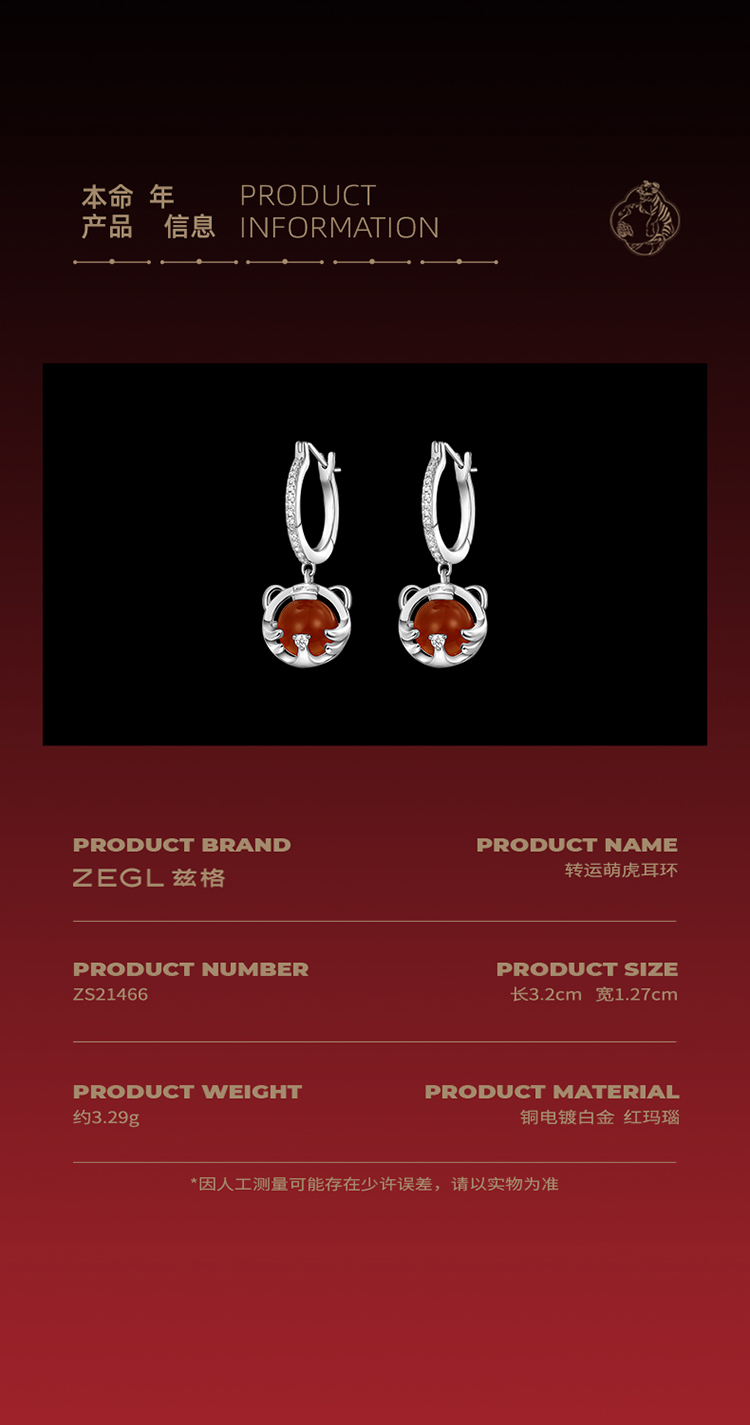 ZEGL设计师虎年本命年礼物转运虎耳环女生肖属虎耳钉小众秋冬耳饰