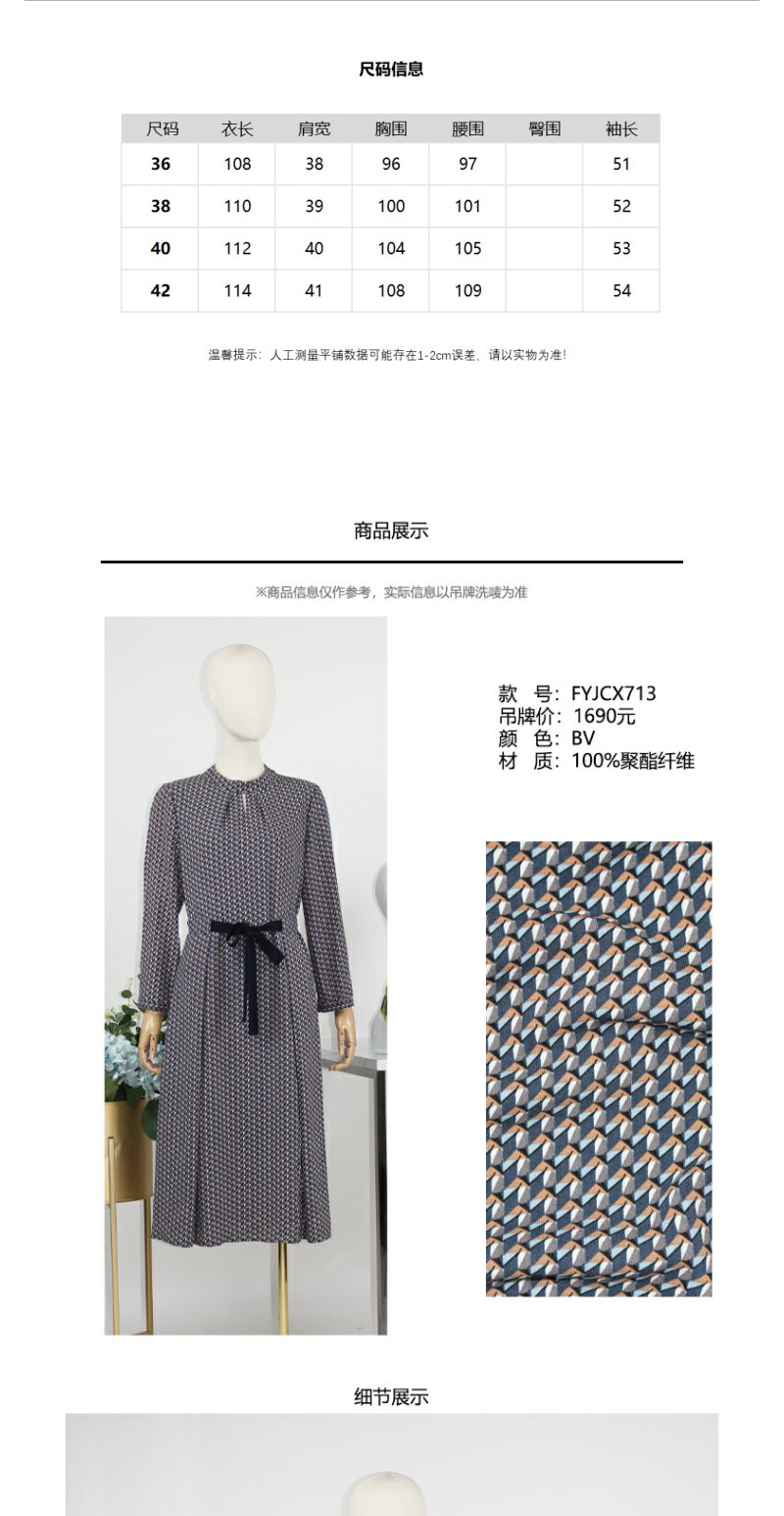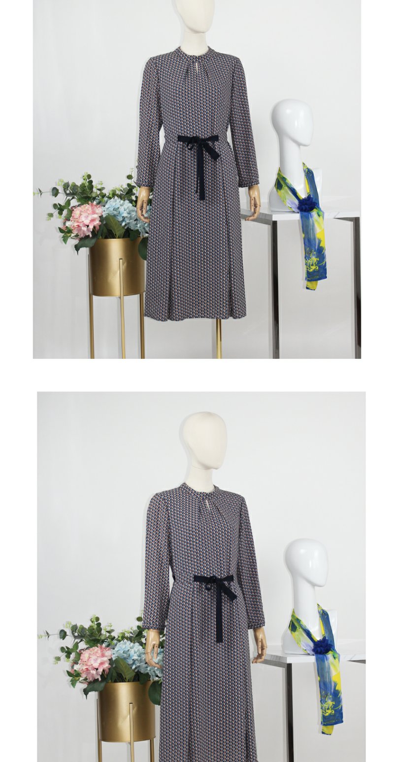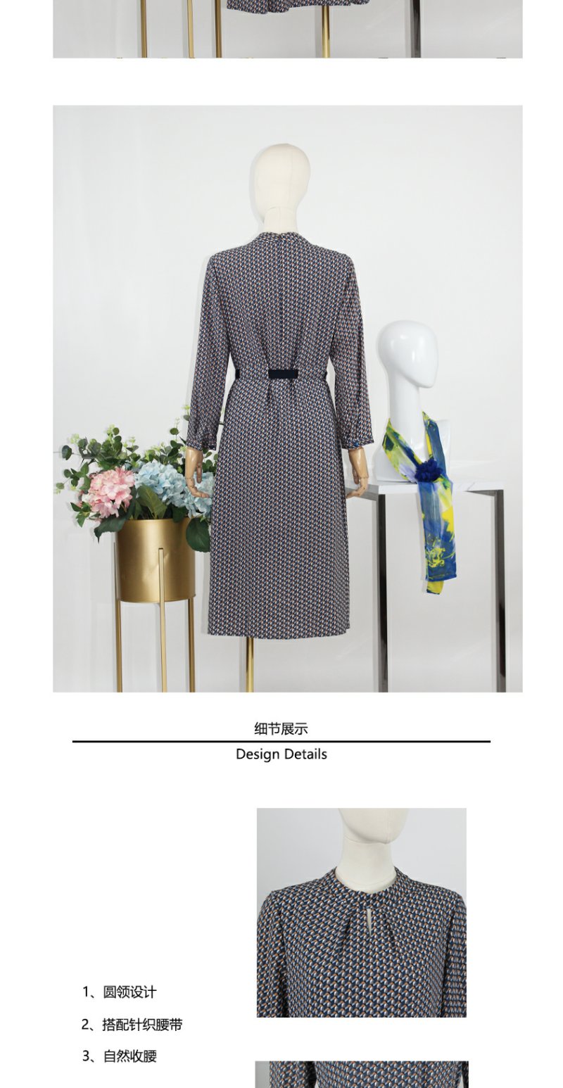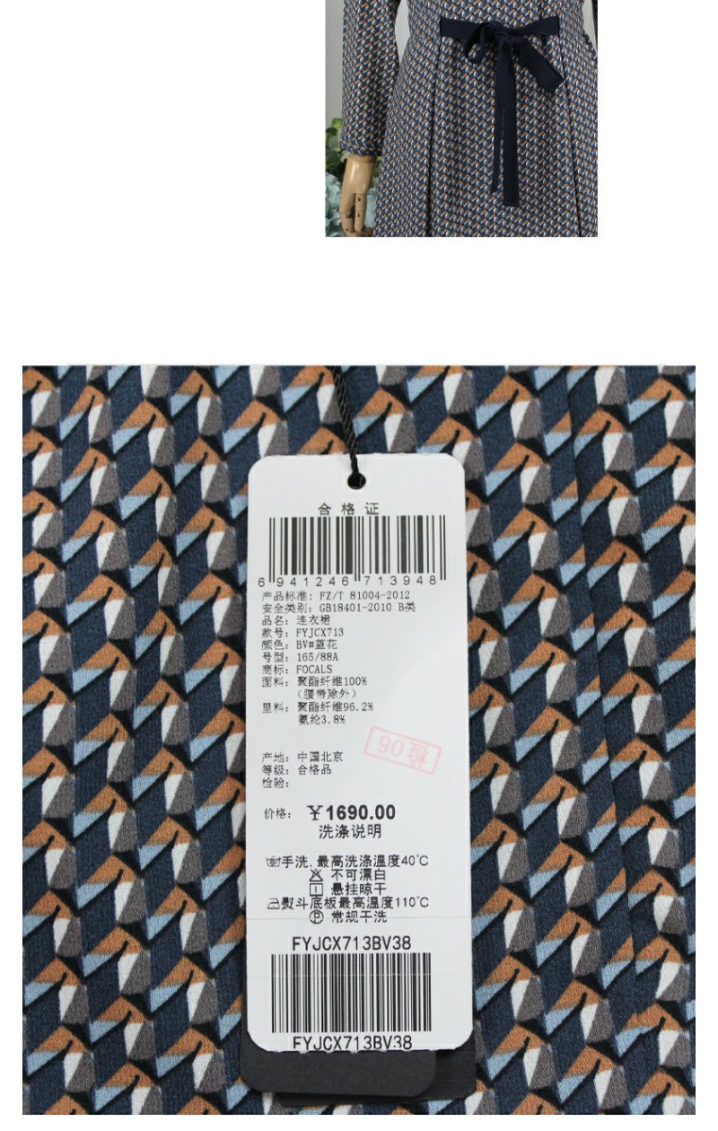 FOCALS福柯斯秋季七分袖休闲几何印花圆领连衣裙FYJCX713BV