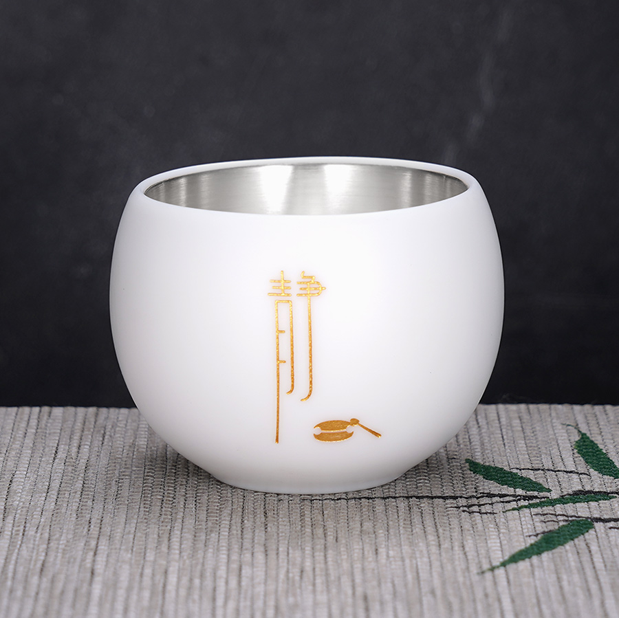 子佩集S999银【乐得其道】茶具【HYT002】纯银茶杯摆件-静禅悟道2412