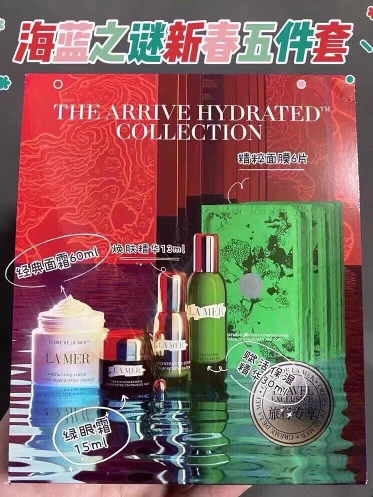 LA MER海蓝之谜-新春五件套-抗衰老套装-面霜60ml眼霜15ml焕肤精华13ml精华露30ml面膜6片-会员6折