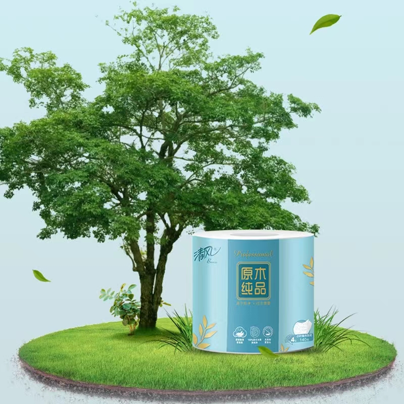 【RQ】清风卷纸原木纯品4层140克/卷*8*3卷筒卫生纸B208AQ