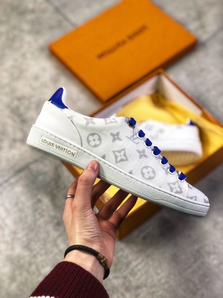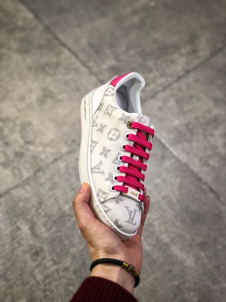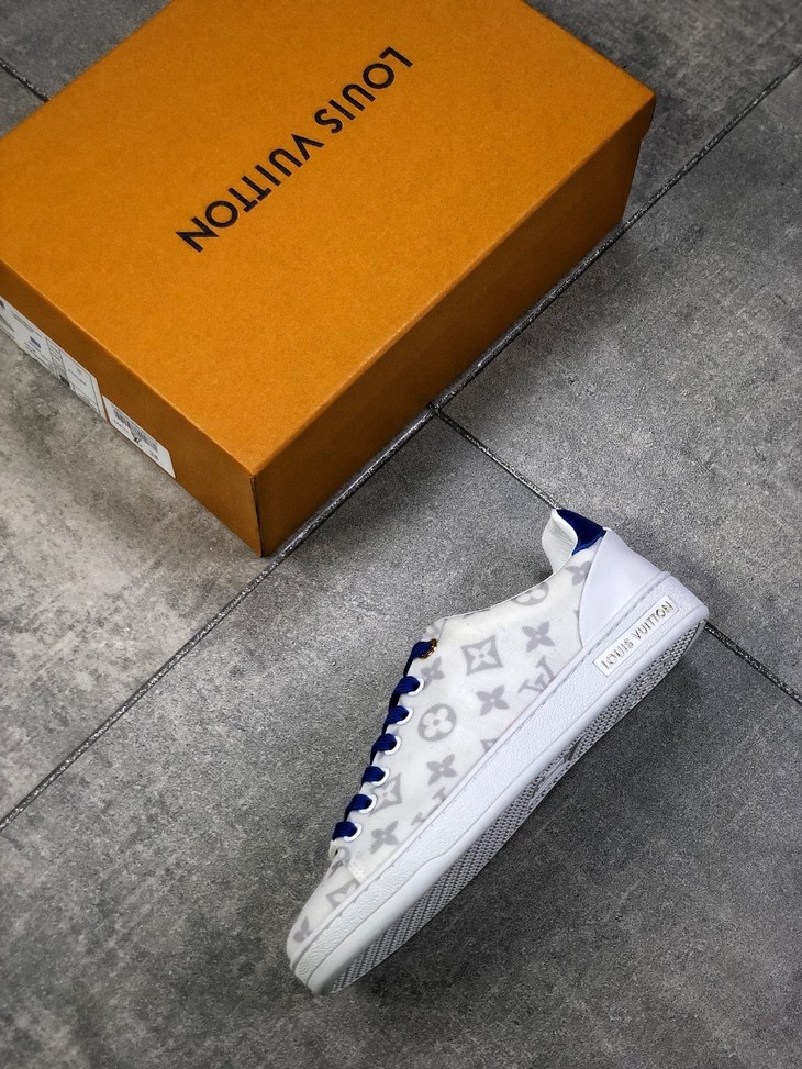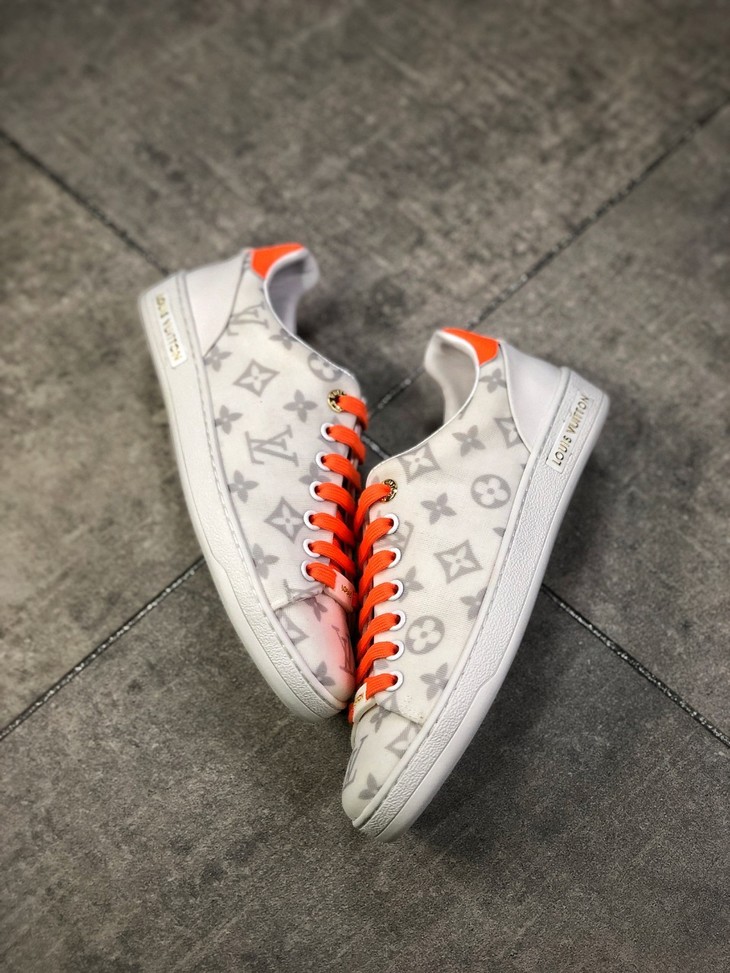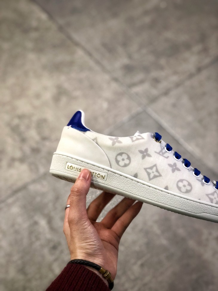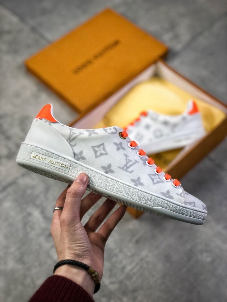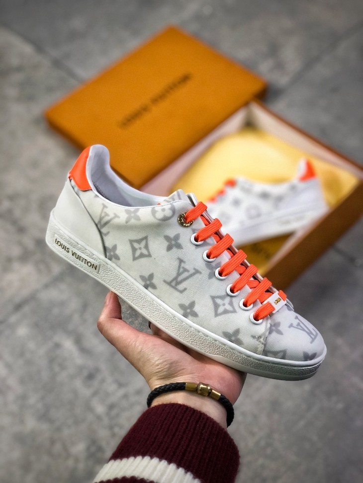 💯女鞋 冬季新品,法国高奢品牌·路易威登Louis Vuitton Frontrow Low Sneaker锋芒系列简约休闲运动百搭低帮小白板鞋“布面白粉灰老花LOGO”1A640N