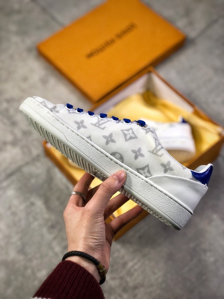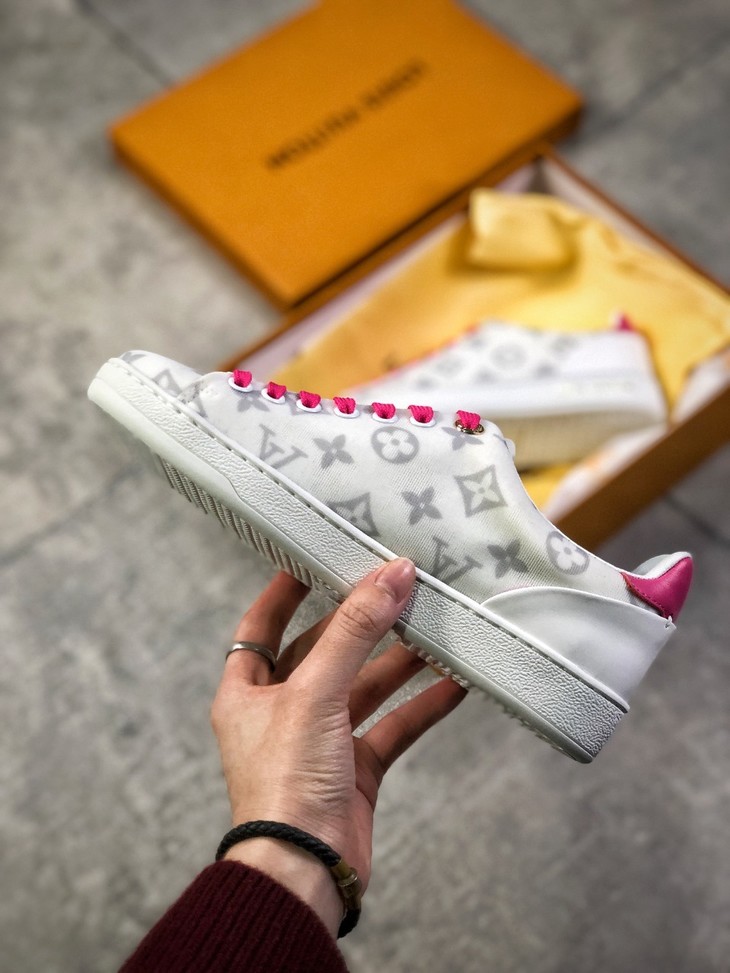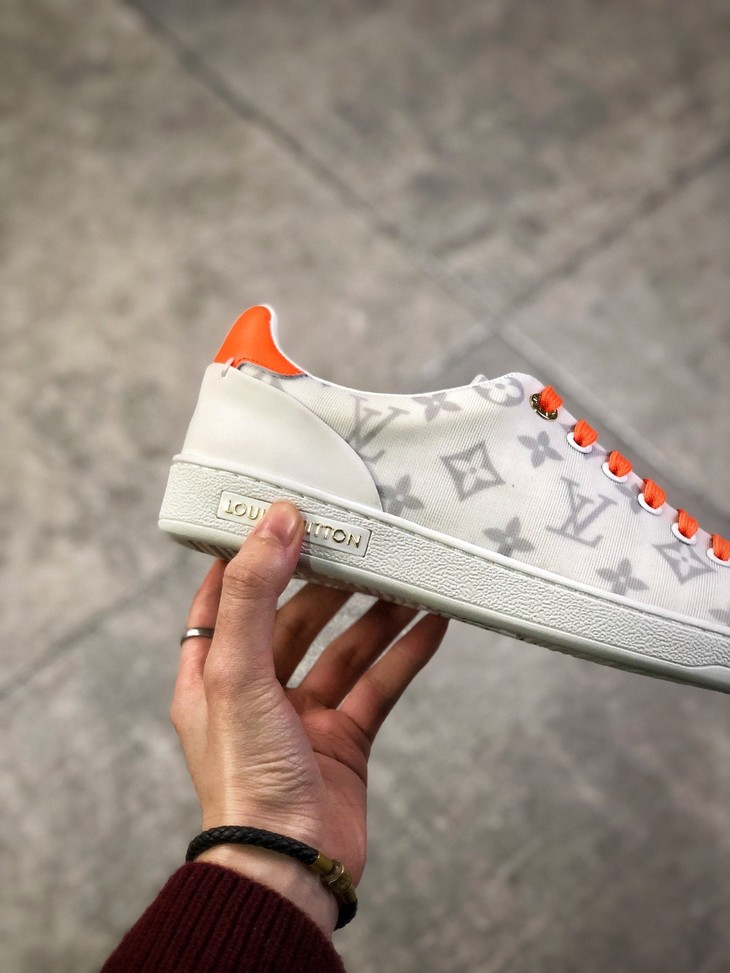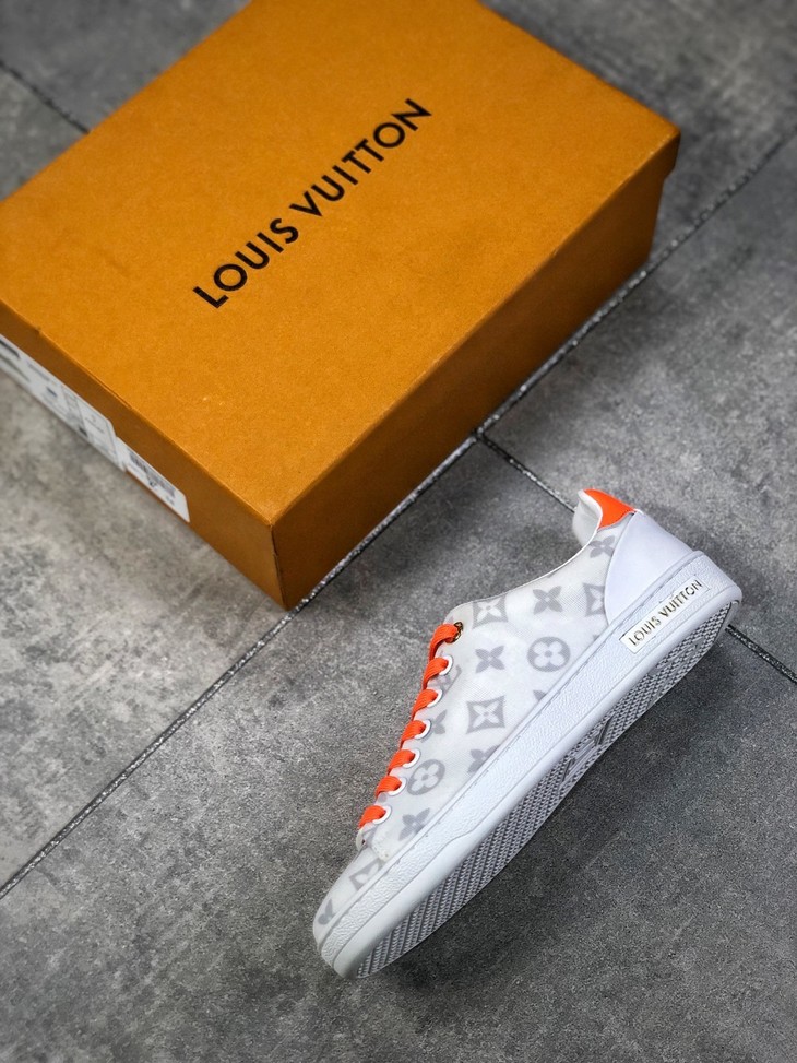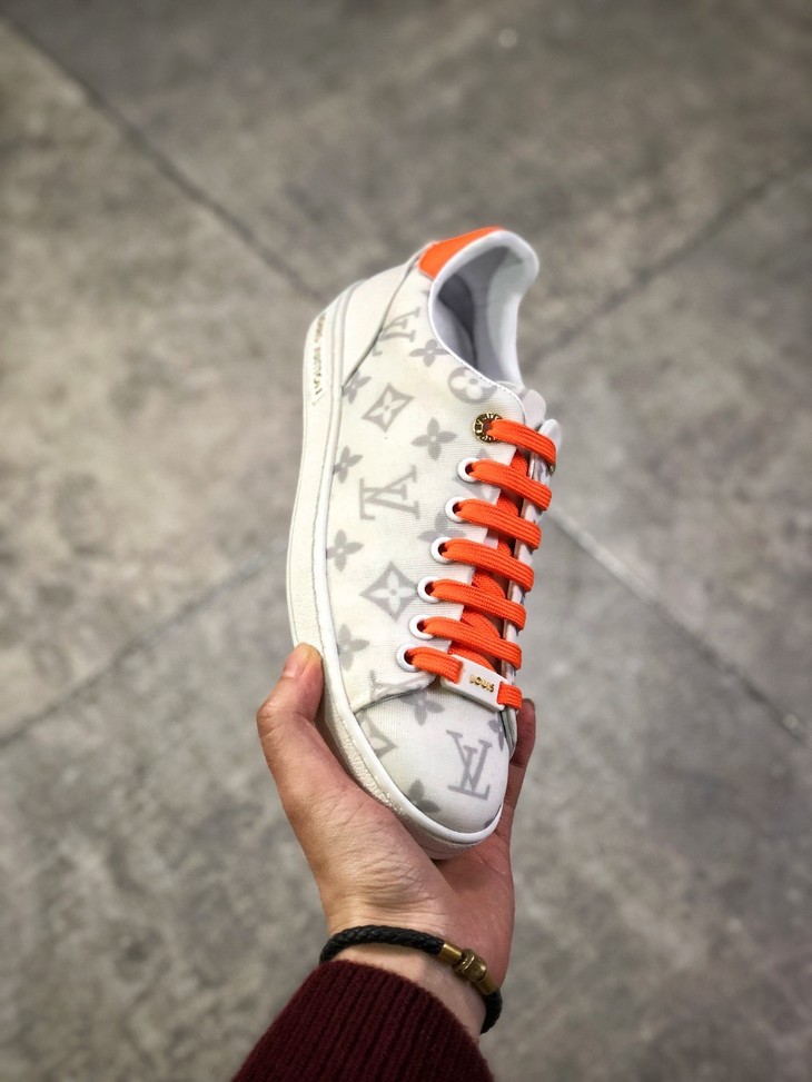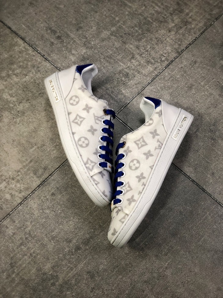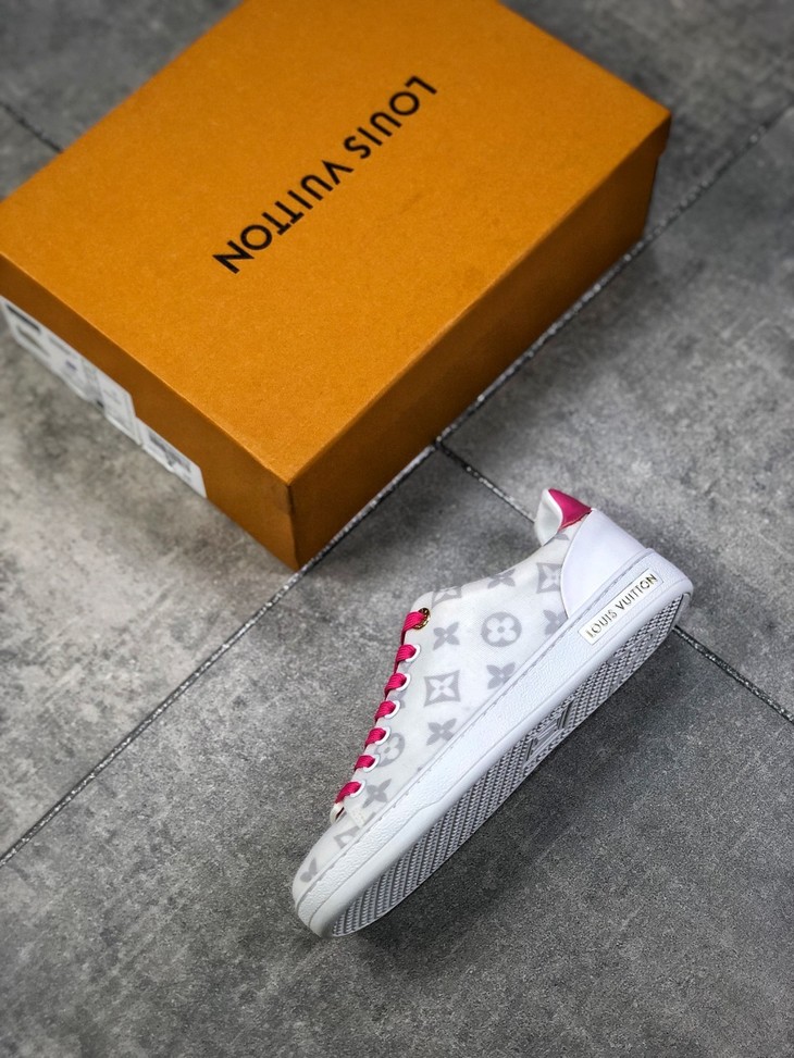 💯女鞋 冬季新品,法国高奢品牌·路易威登Louis Vuitton Frontrow Low Sneaker锋芒系列简约休闲运动百搭低帮小白板鞋“布面白粉灰老花LOGO”1A640N