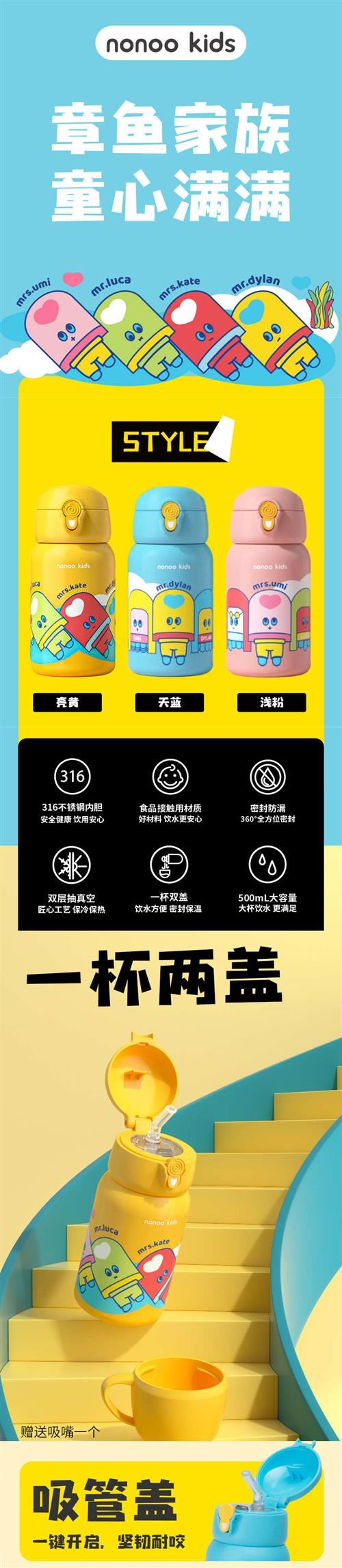 NONOO 章鱼家族儿童保温杯500ml(蓝色)FL-81501