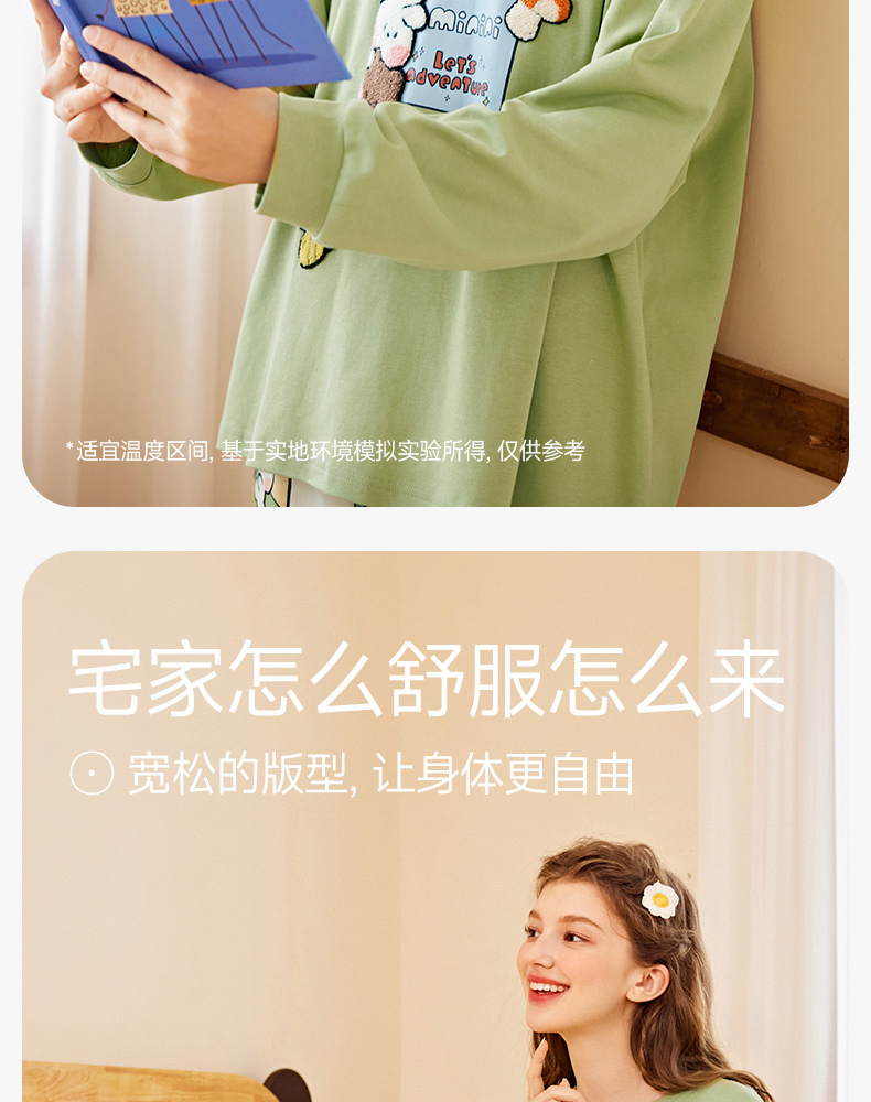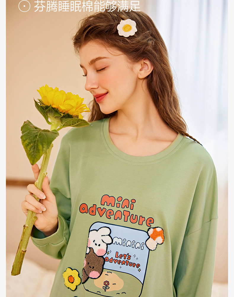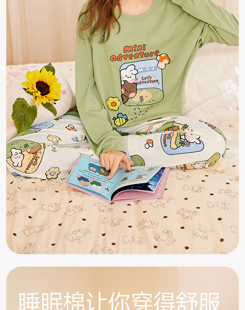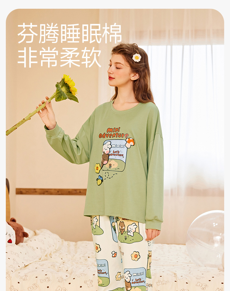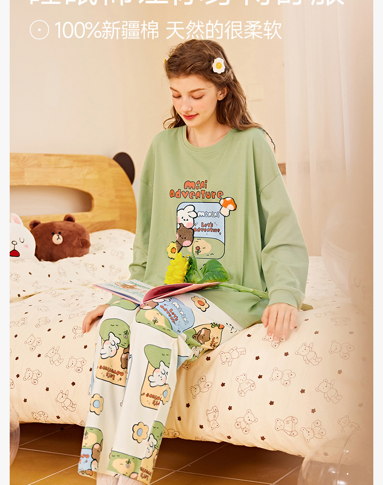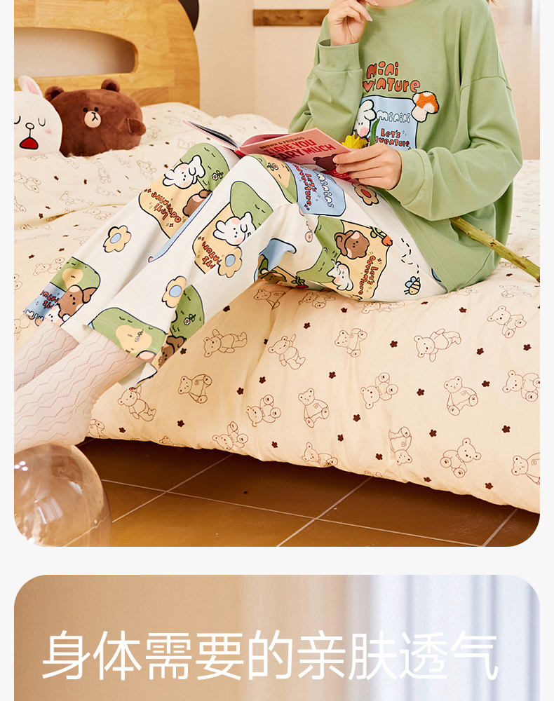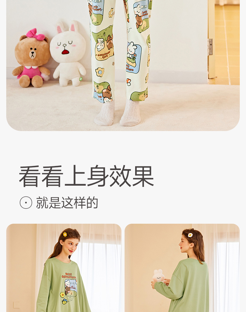 *【芬腾】布朗熊睡衣女春秋季纯棉长袖套装可爱宽松休闲全棉大码家居服