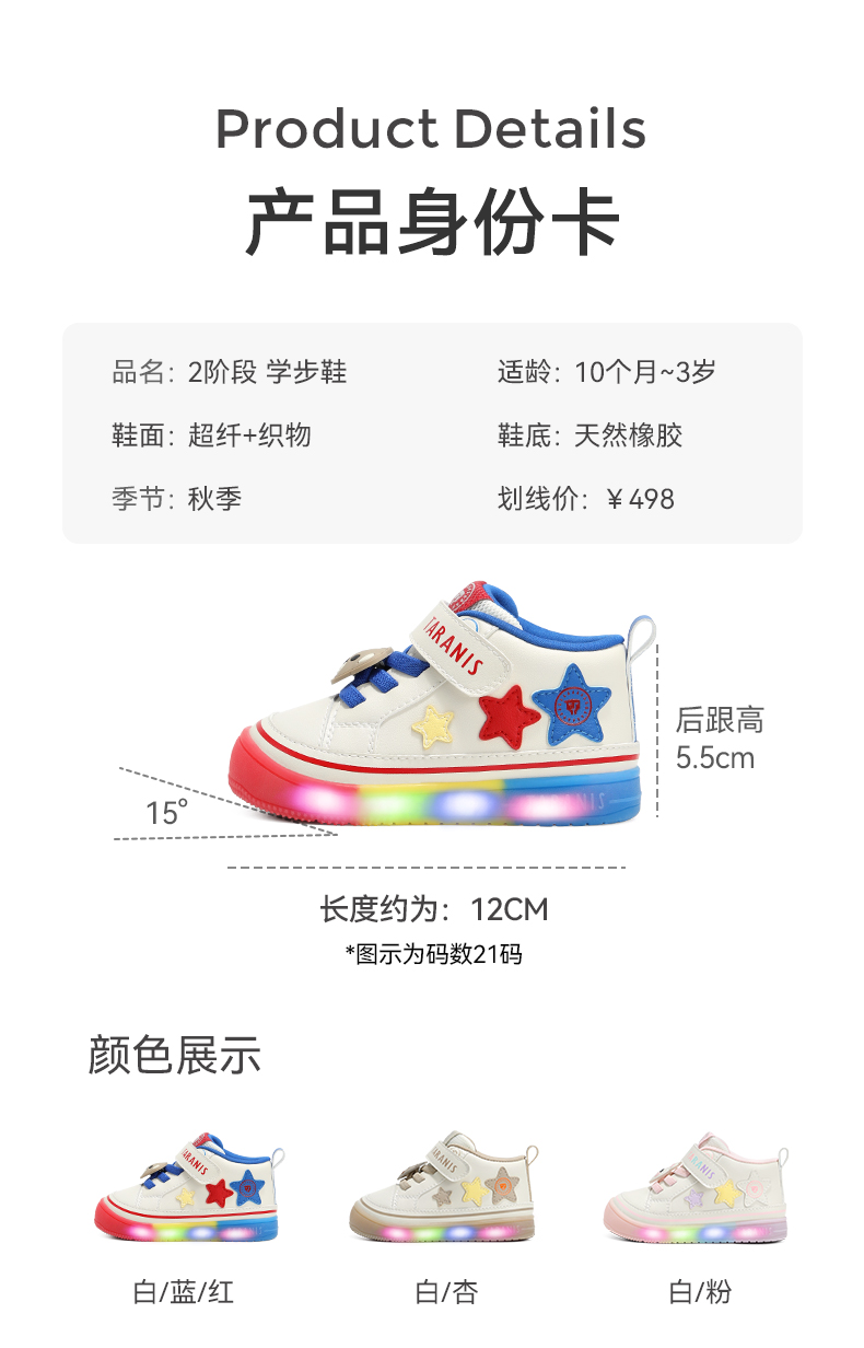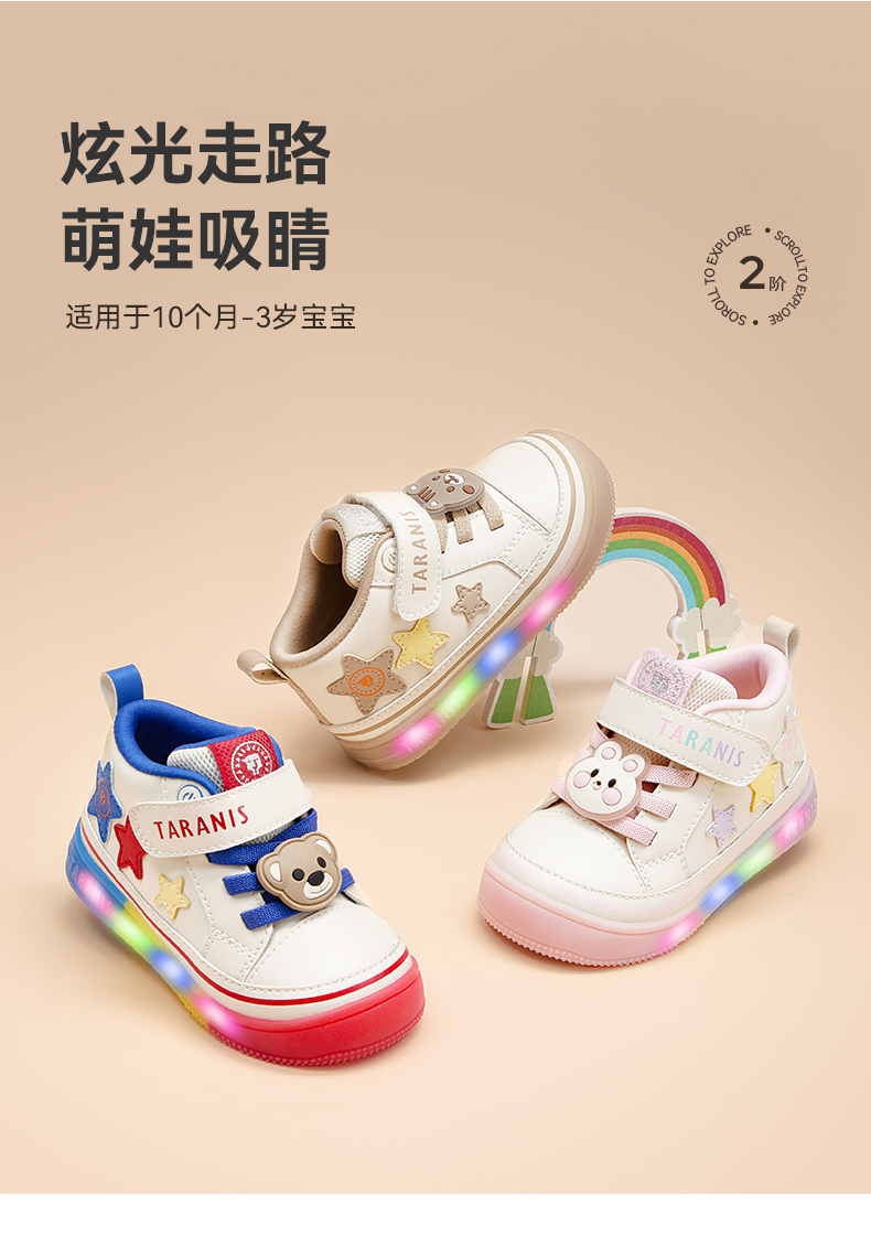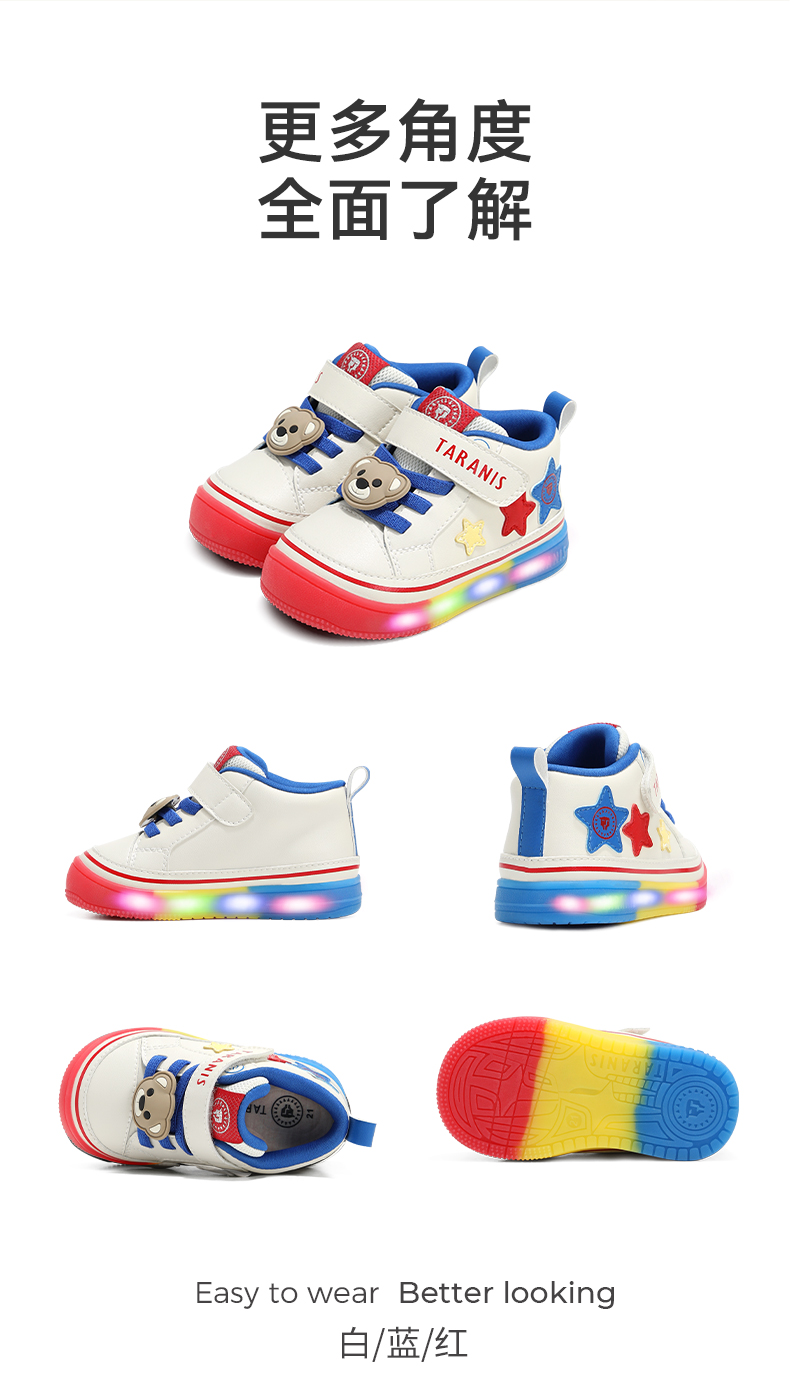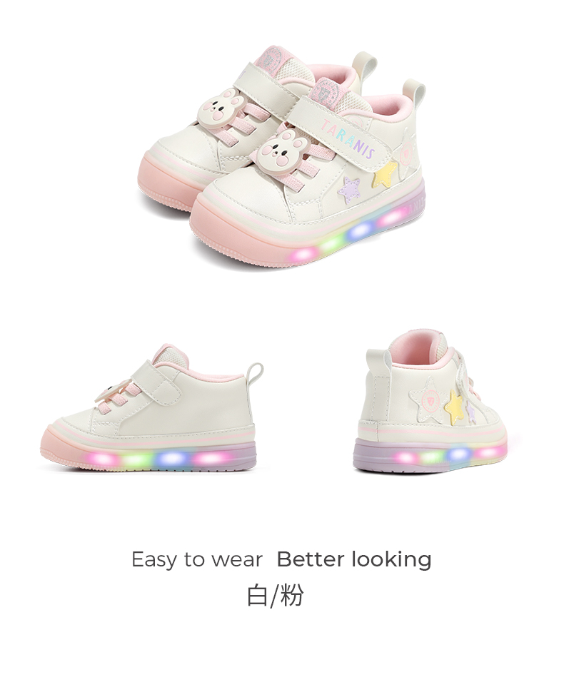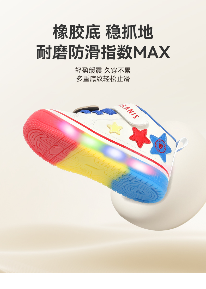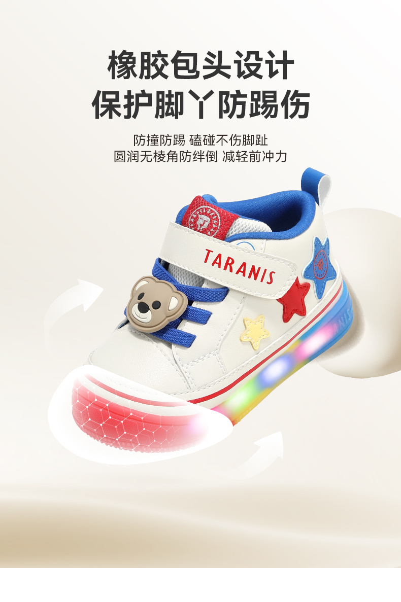泰兰尼斯宝宝闪灯鞋秋季新款软底运动童鞋男童发光机能鞋女童板鞋 T01T5C7818