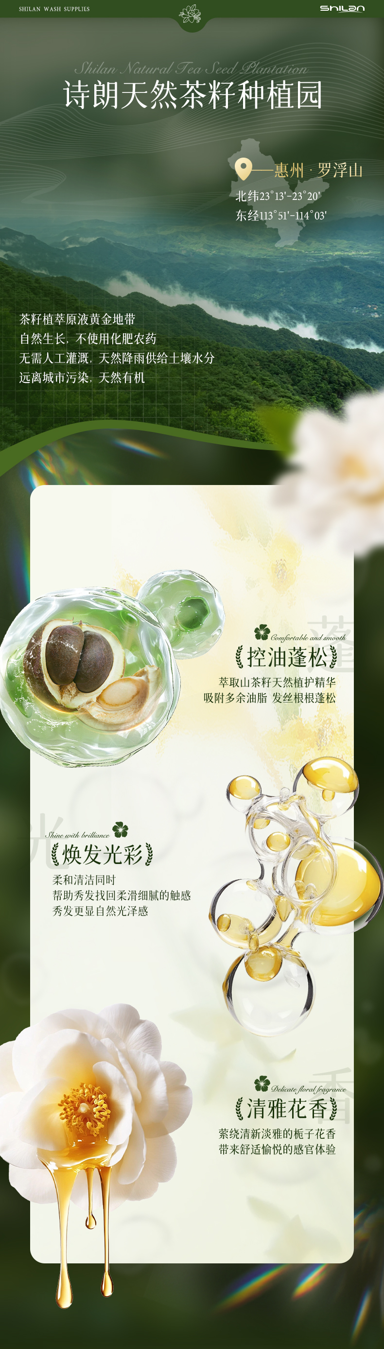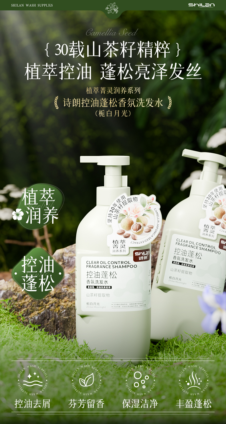 30载山茶籽精粹 蓬松亮泽发丝『诗朗控油蓬松香氛洗发水』山茶籽提取物 油脂去无踪 根源洗走油腻 秀发越洗越净