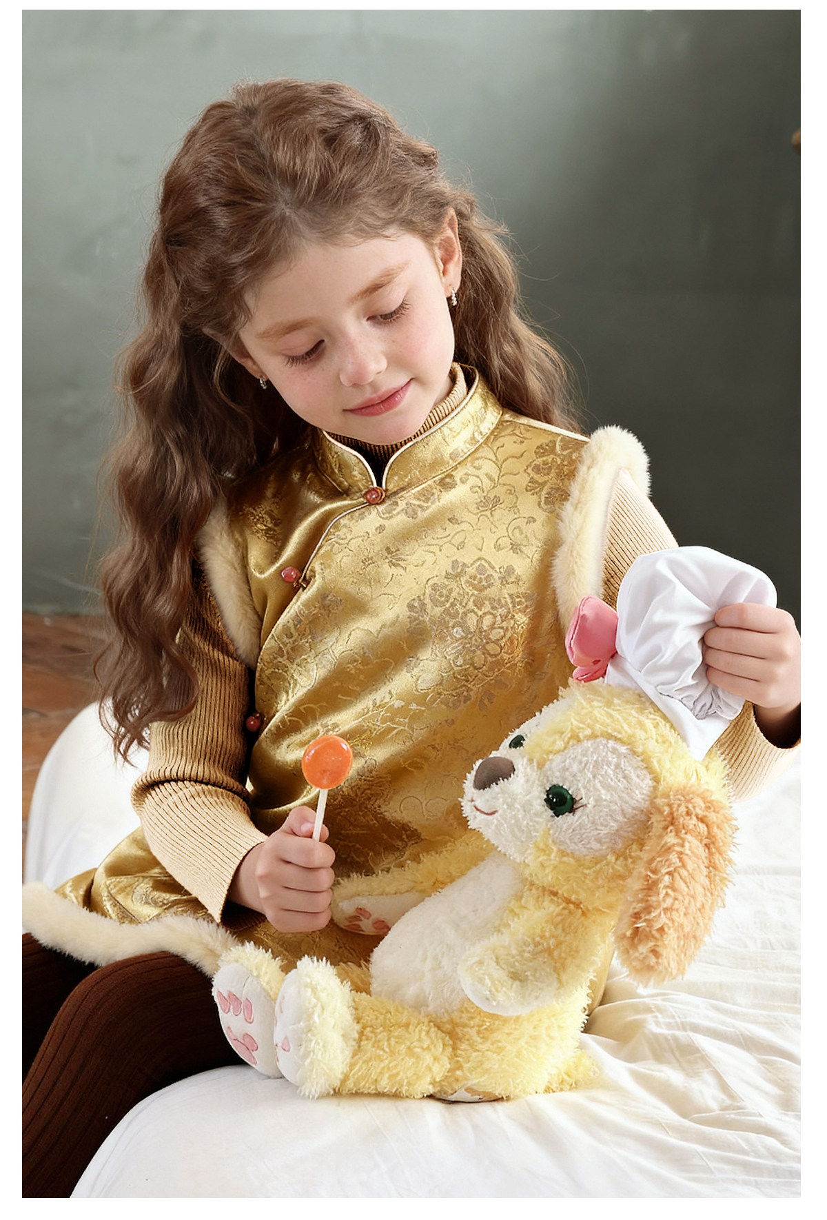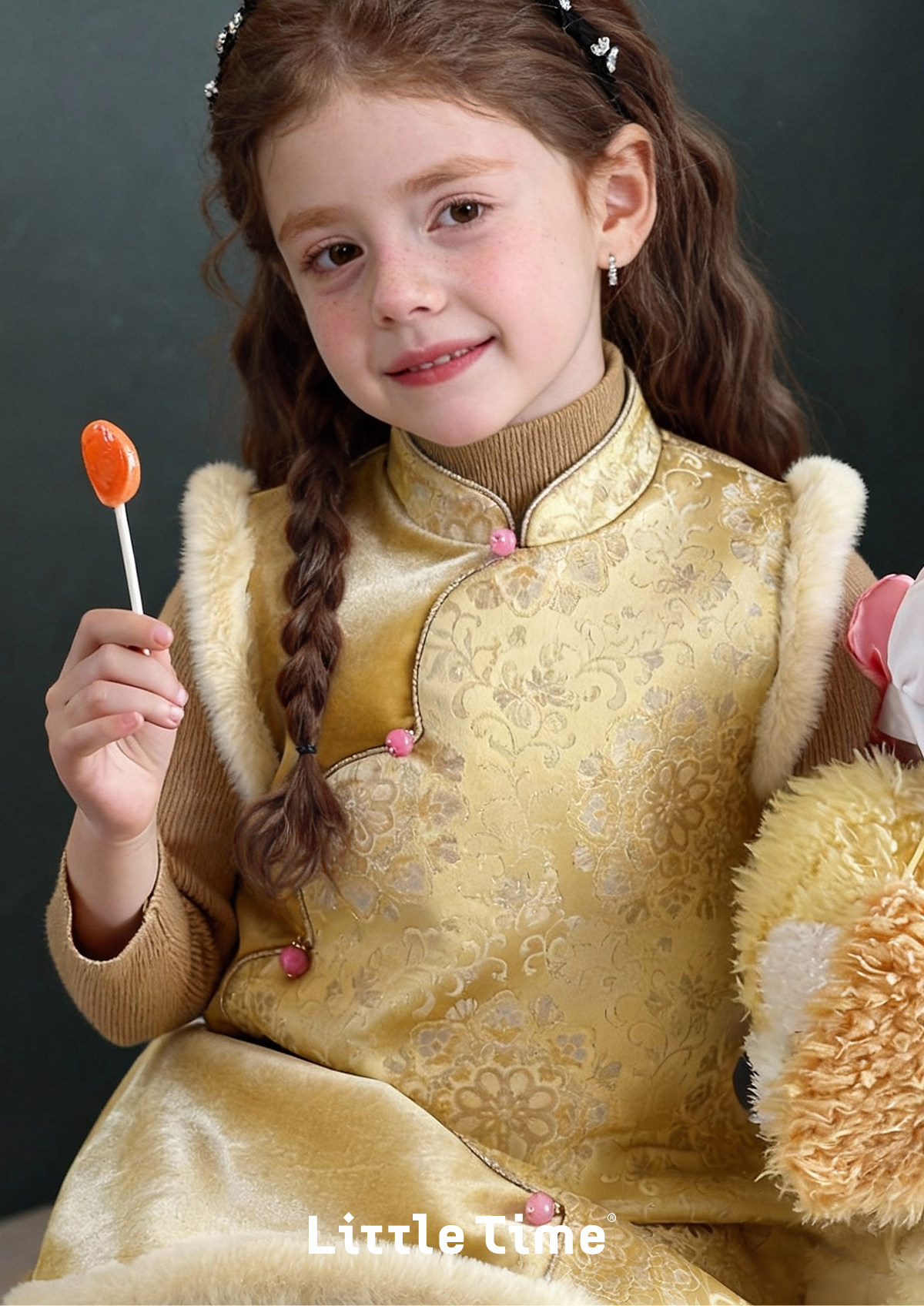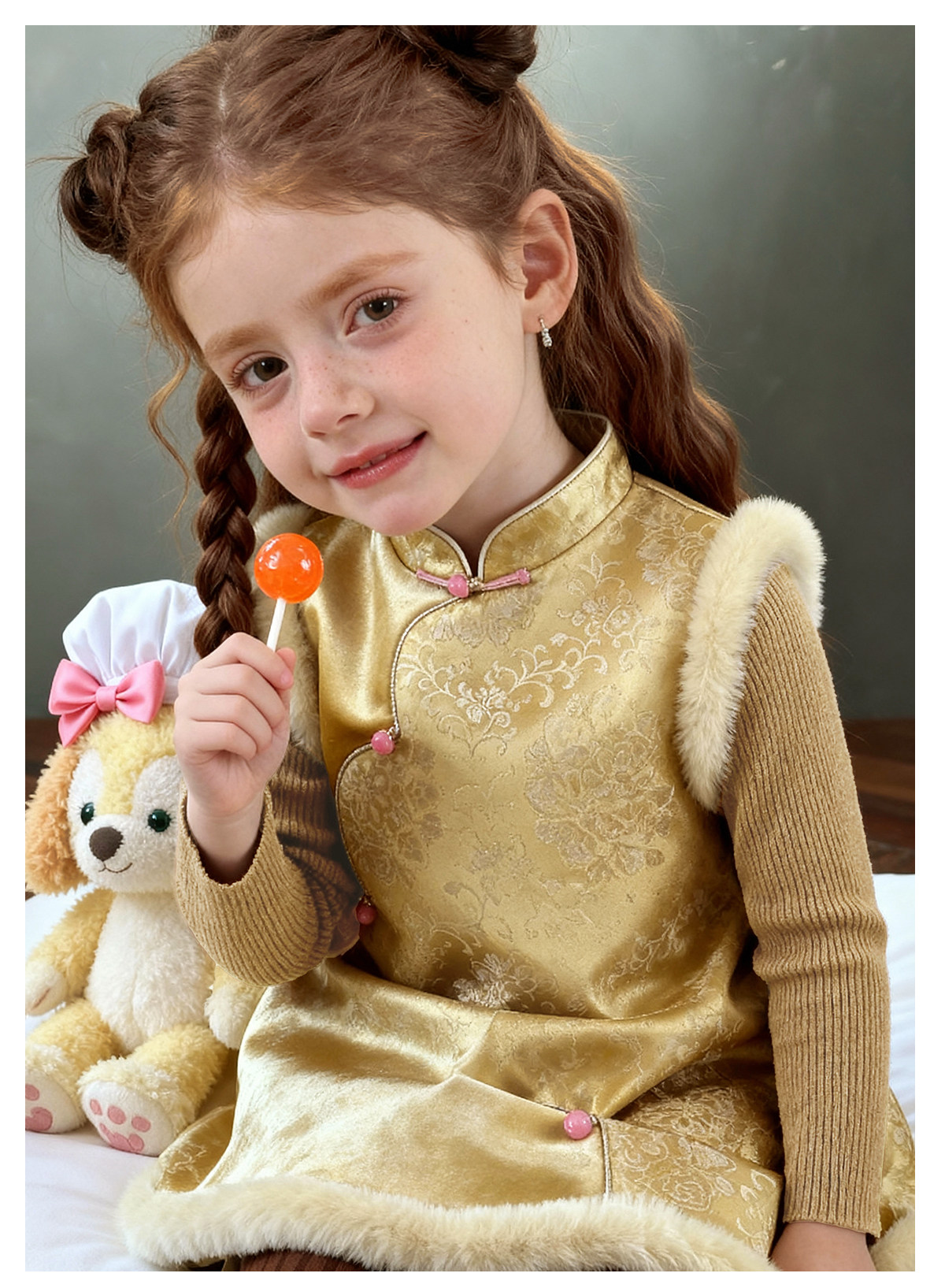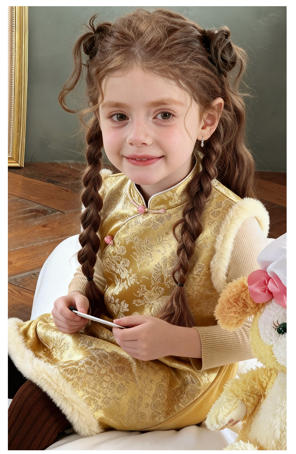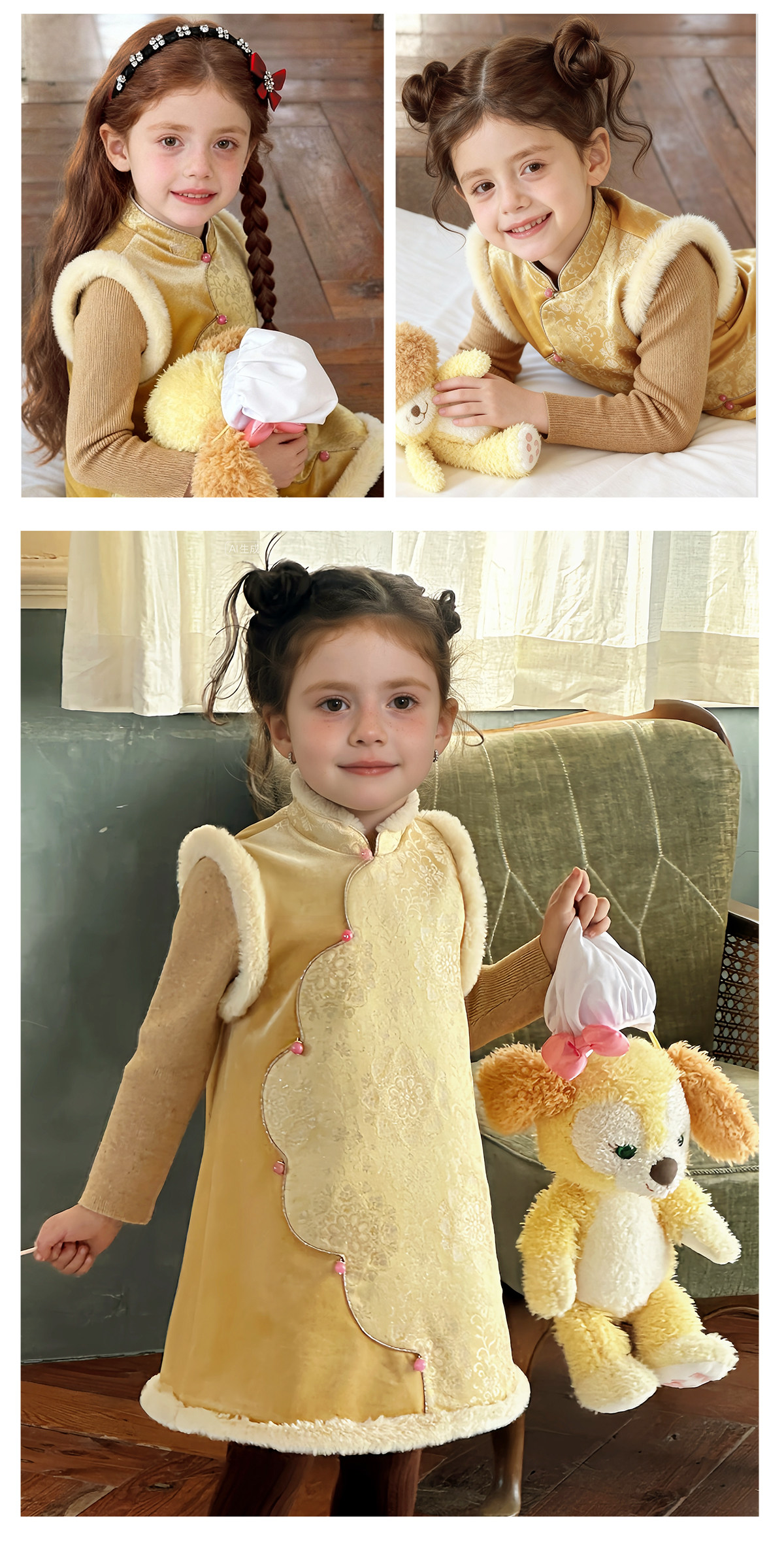 littletime女童连衣裙2025秋冬新款中式改良旗袍立领连衣裙外套
