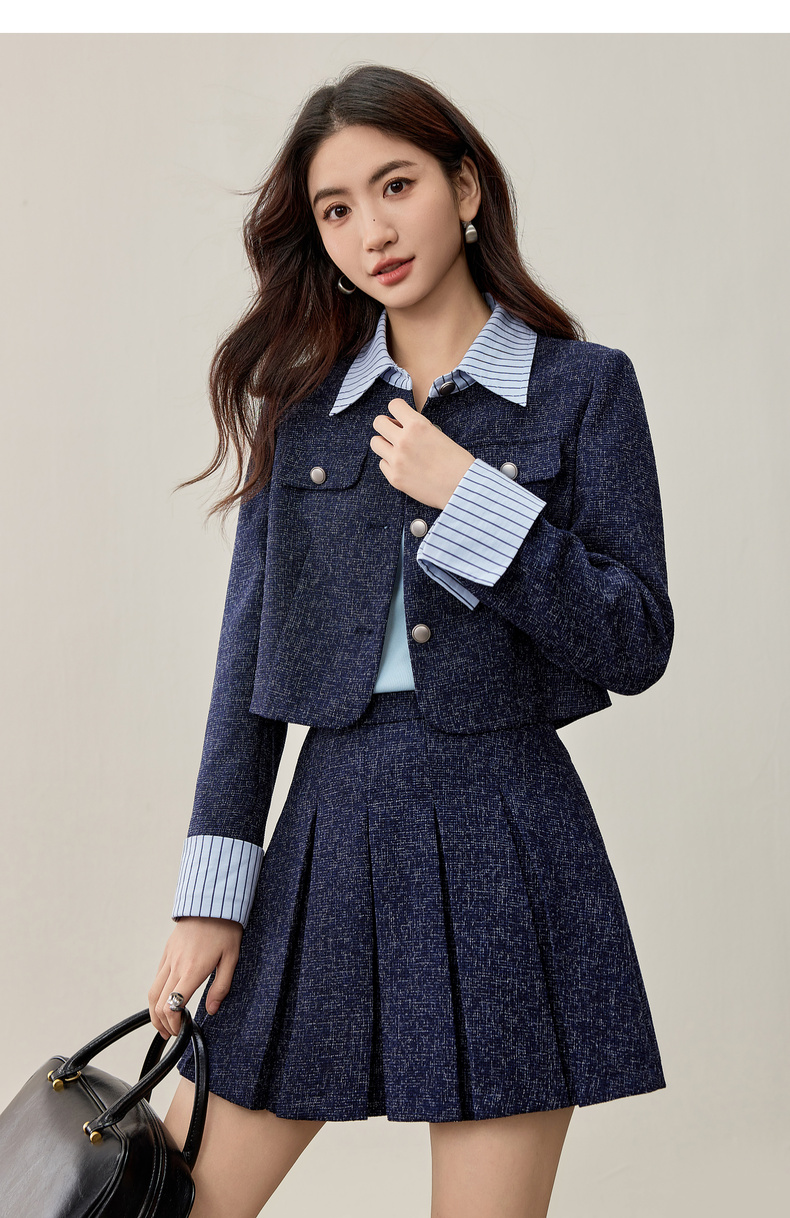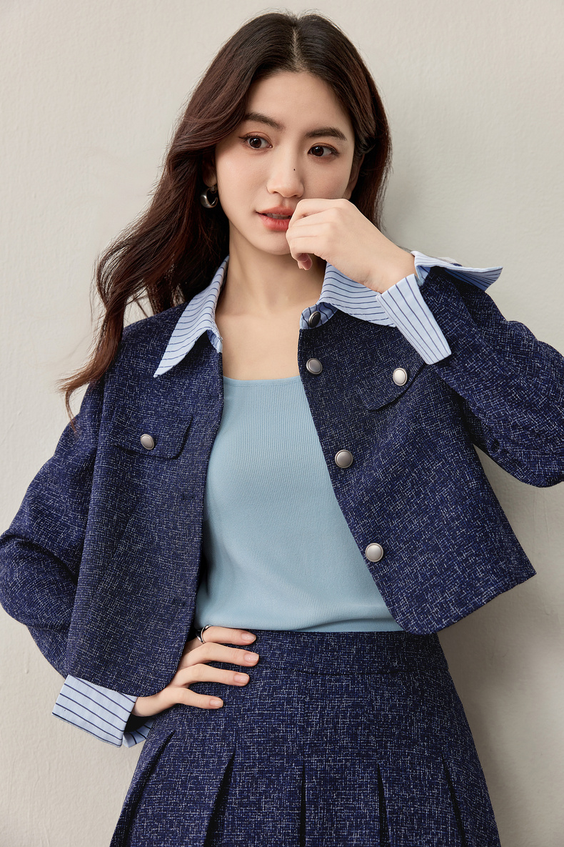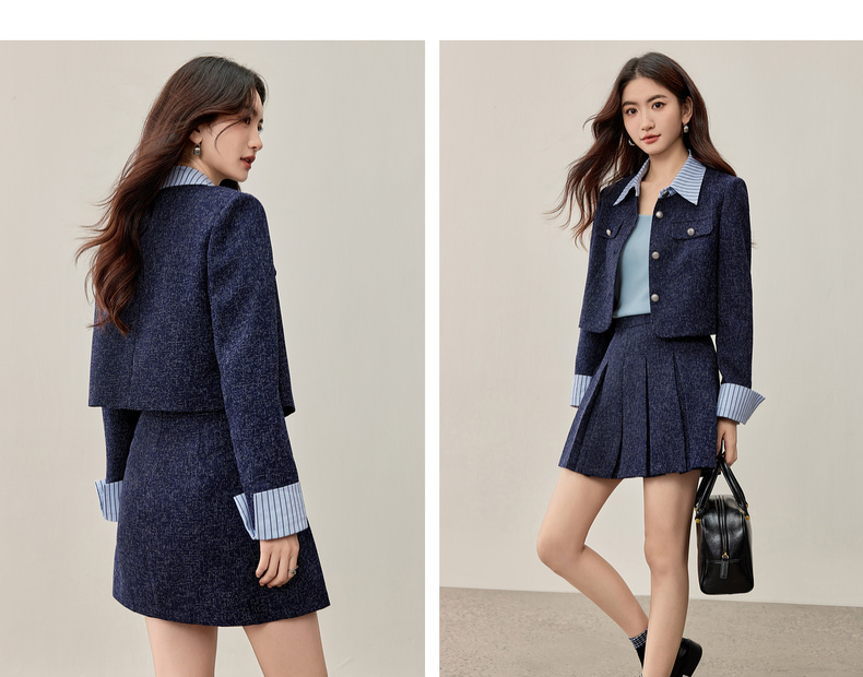 【内购】【通勤套装】小香风花纱两件套浮雕金属扣外套&A字百褶短裙-153ZA2876