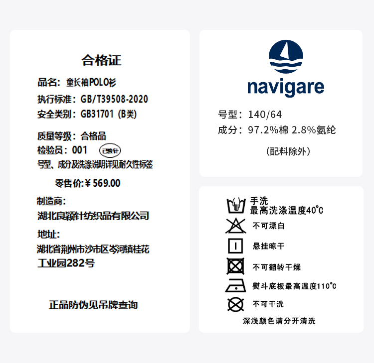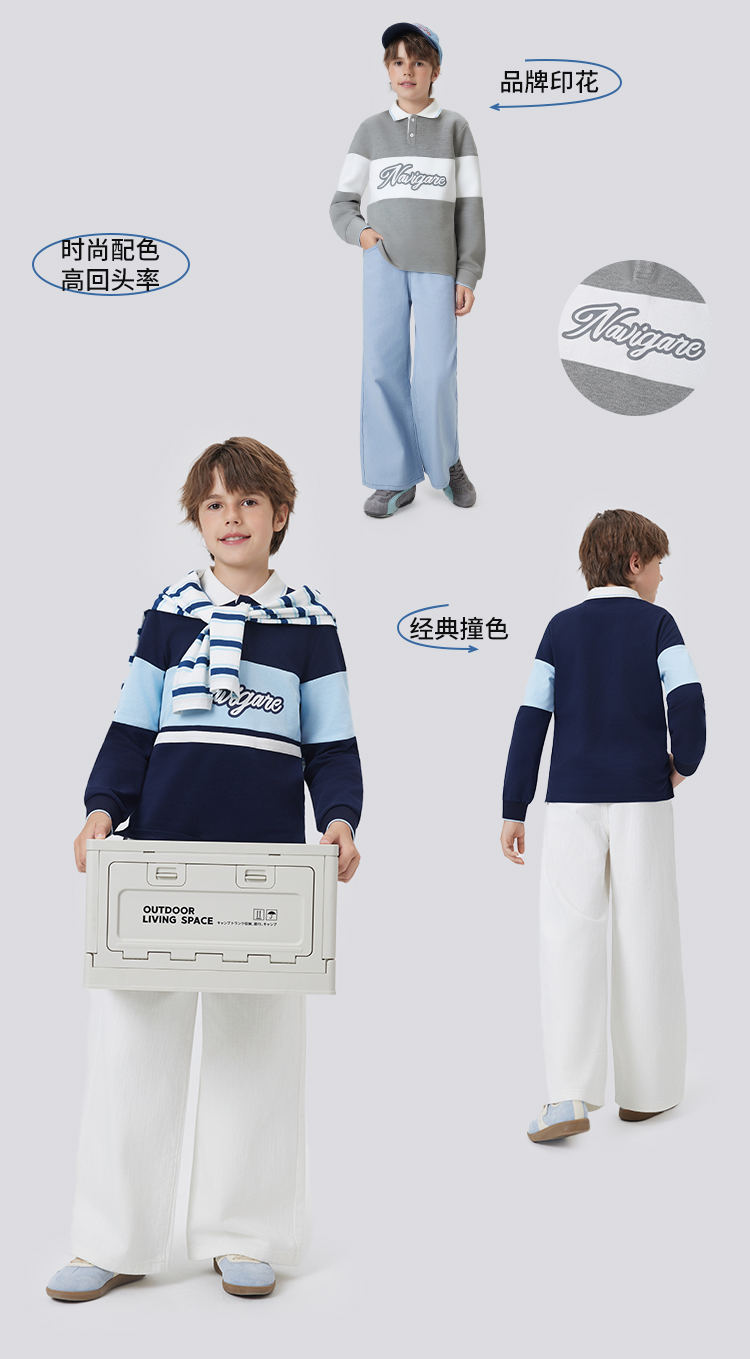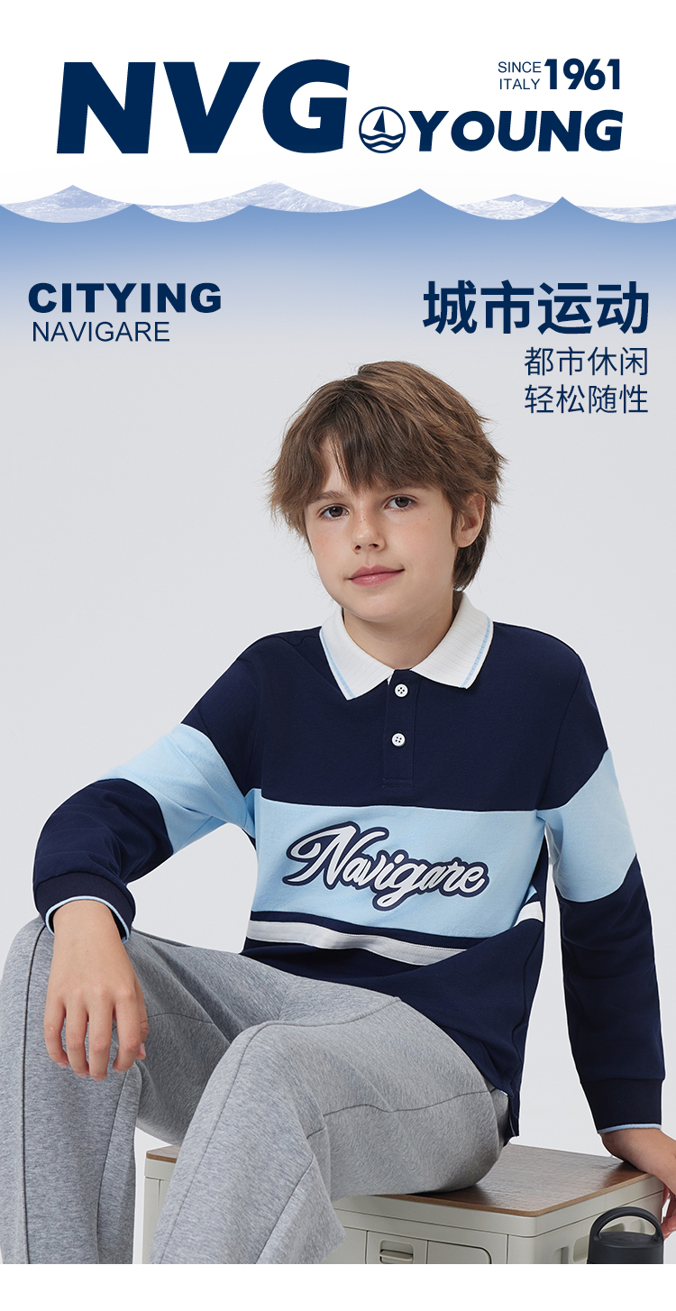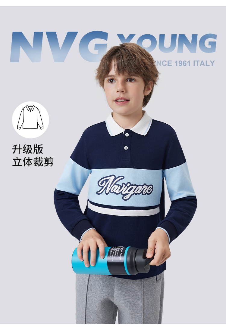 【纳维凯尔】【120-165】意大利小帆船男童长袖polo衫
