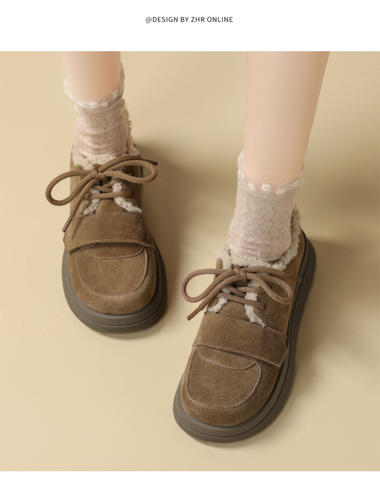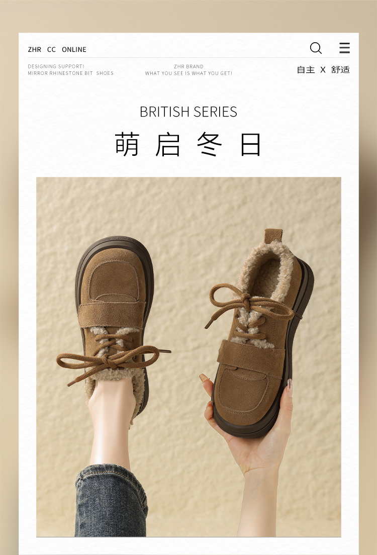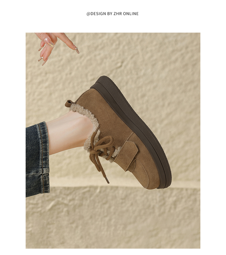 ZHR休闲鞋女2024春季新款洋气休闲百搭加绒加厚软萌魔术贴保暖棉鞋
