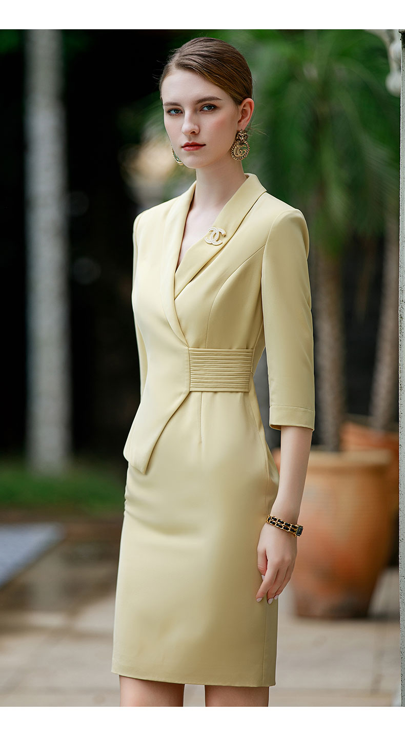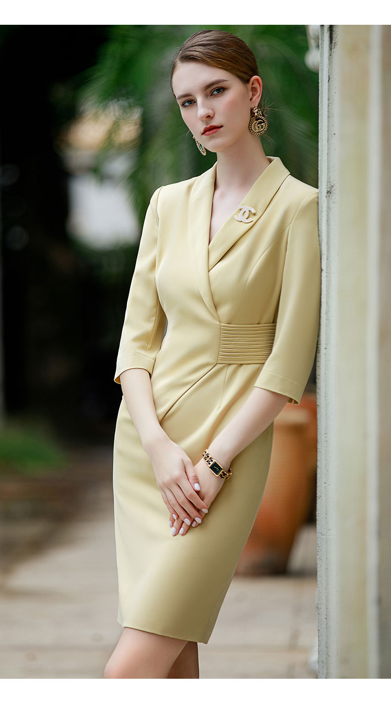 IWY/黄色职业连衣裙女春装新款高级感气质名媛修身包臀裙子Q853