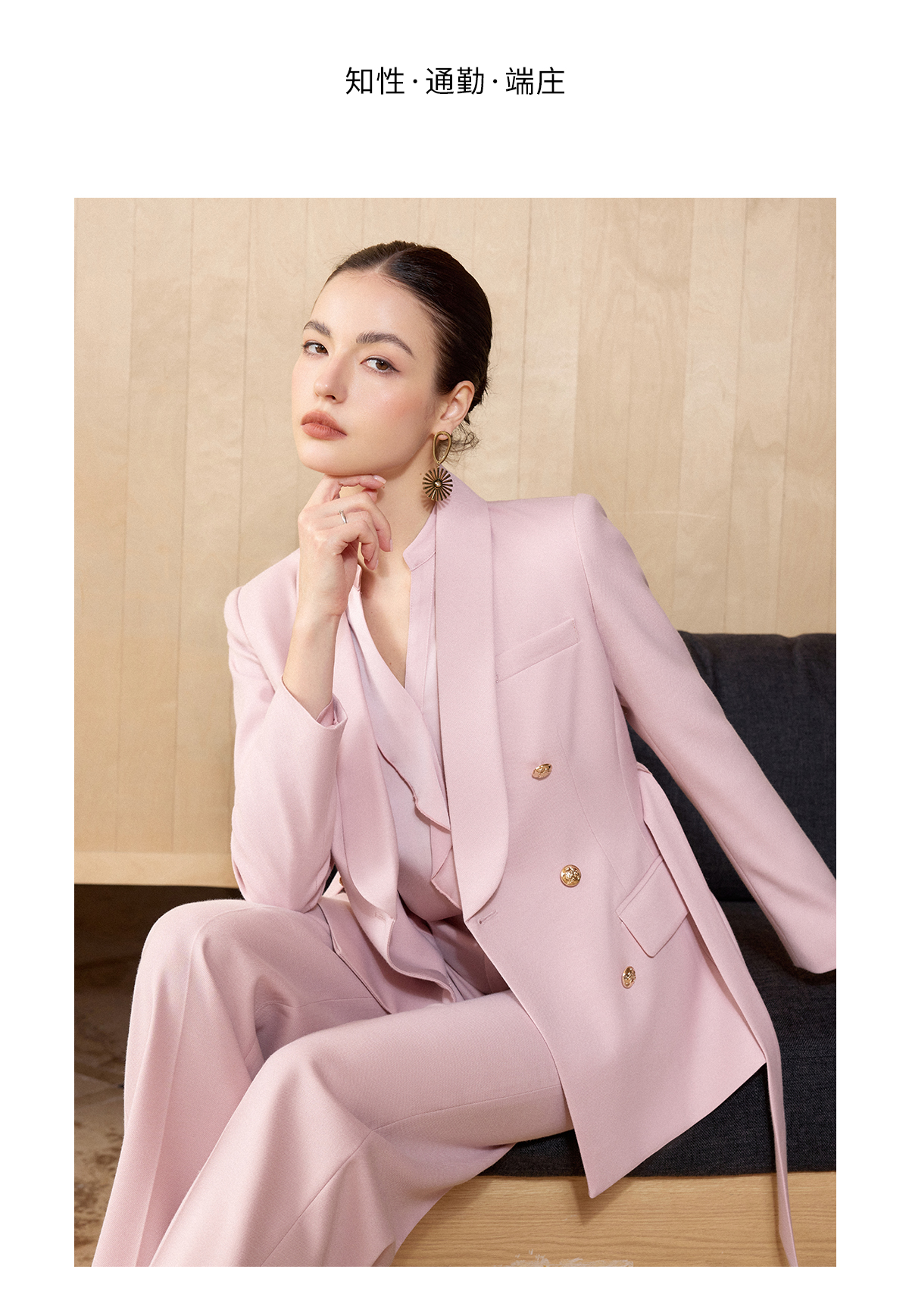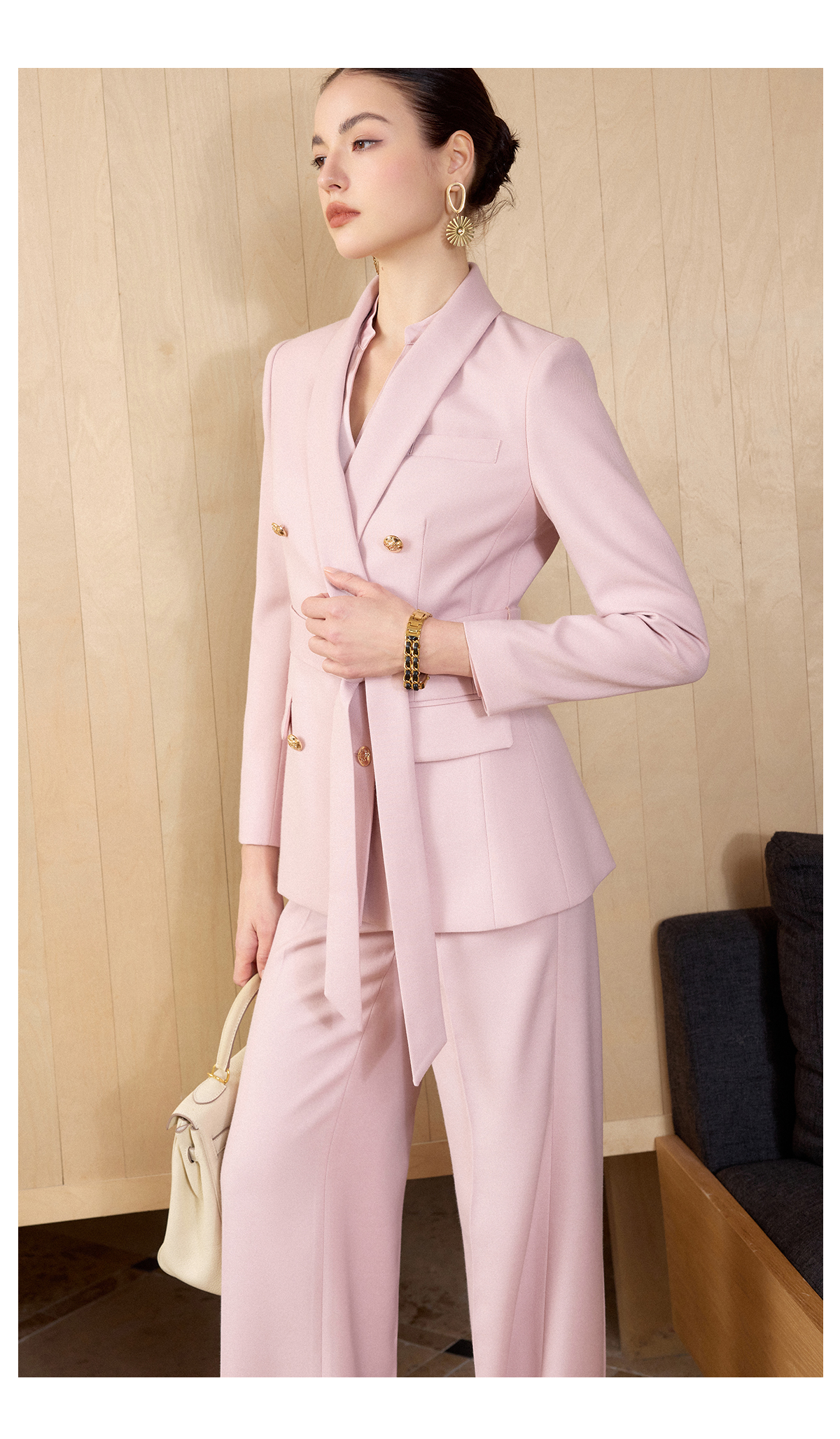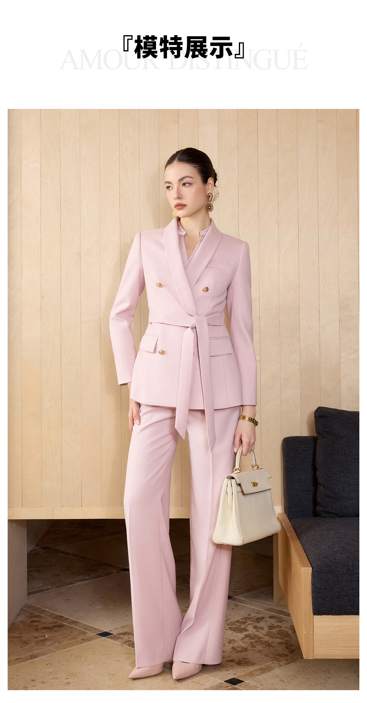 IWY/高级感粉色西装套装女春季职业装收腰系带两件套气质通勤职场穿搭CP2720