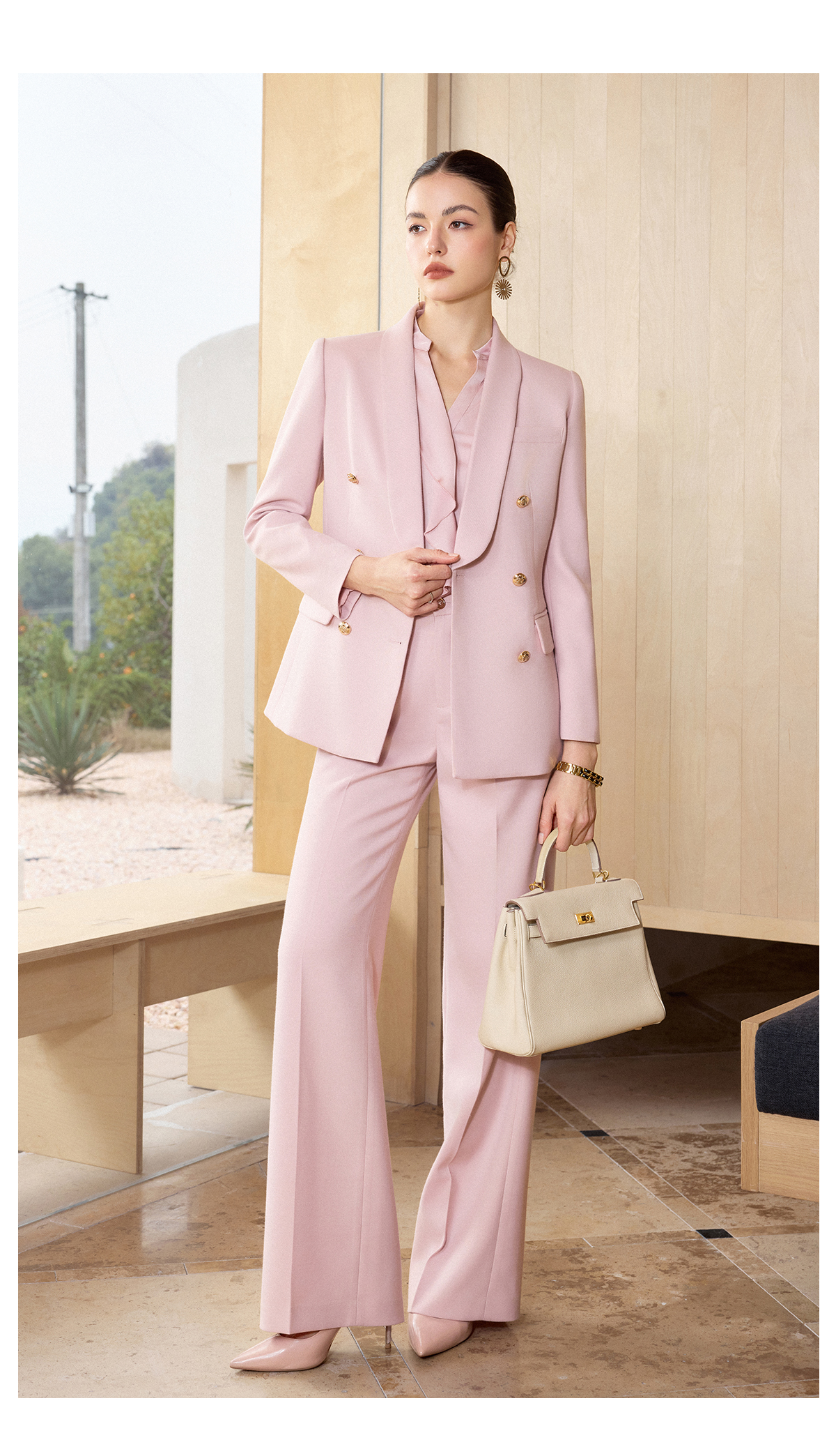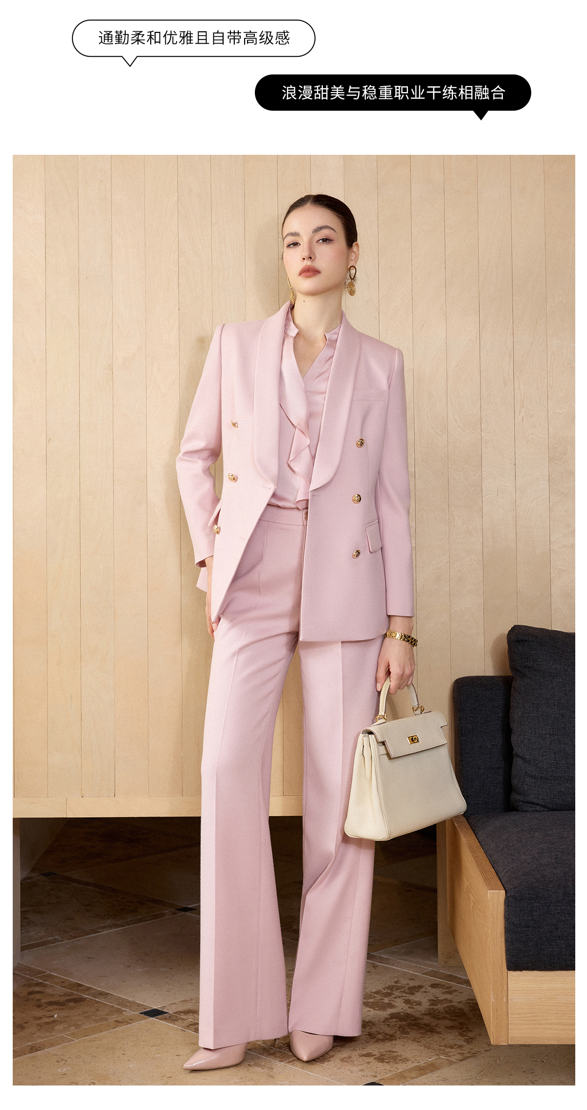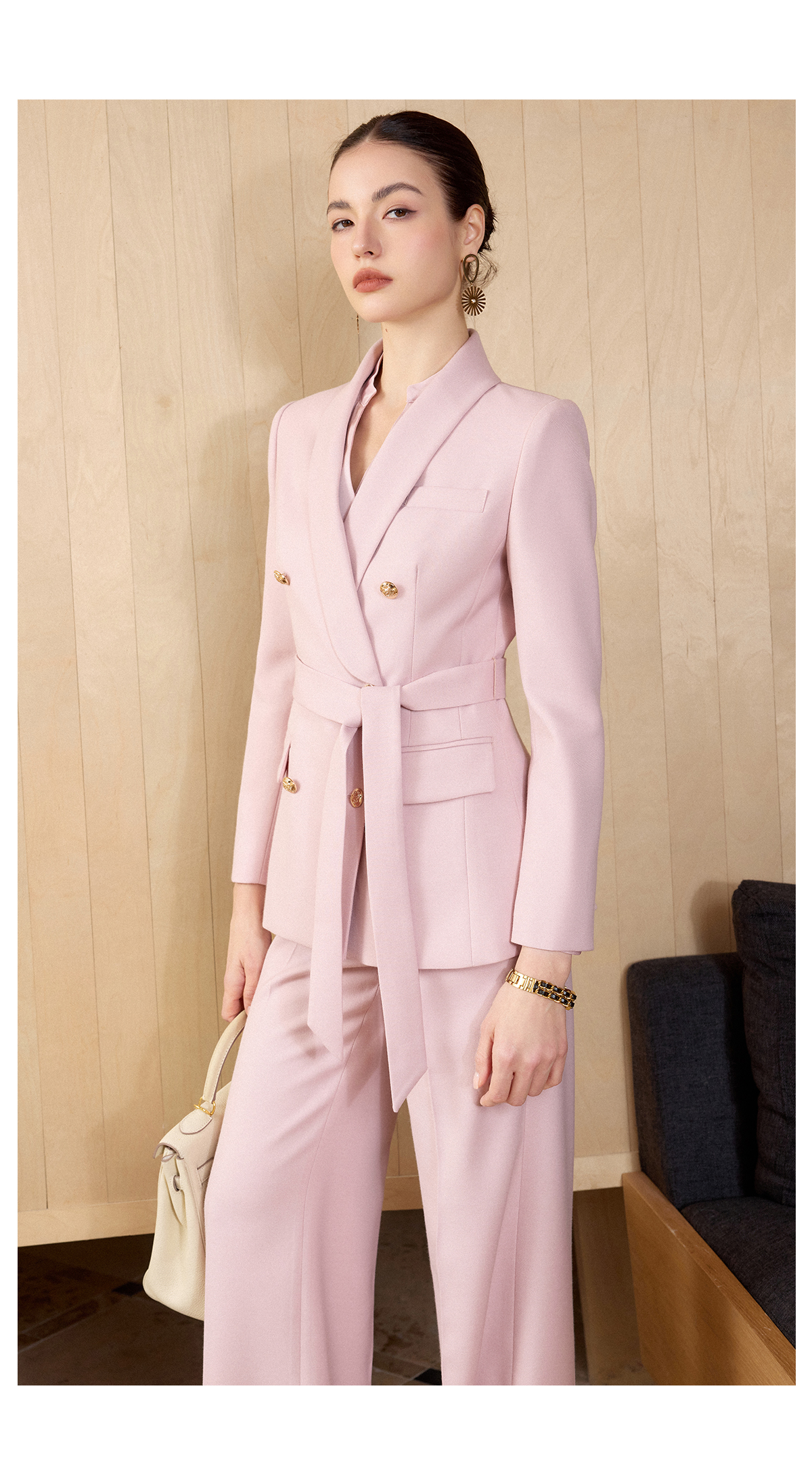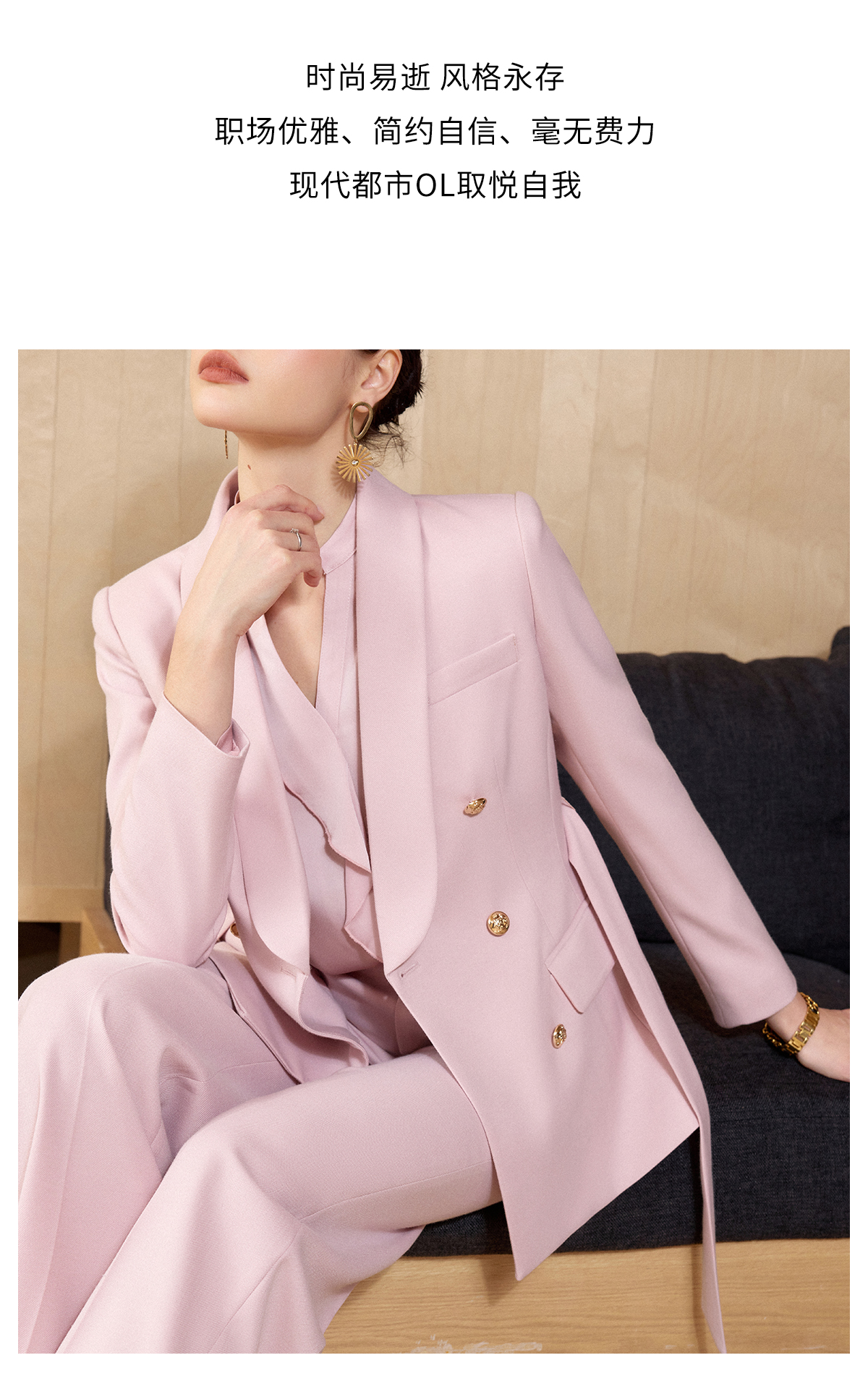 IWY/高级感粉色西装套装女春季职业装收腰系带两件套气质通勤职场穿搭CP2720