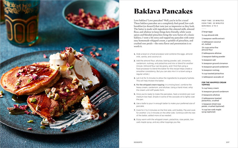 • Desserts: Satisfy your sweet tooth without the carbs with Lemon Ricotta Crepes and Baklava Pancakes.