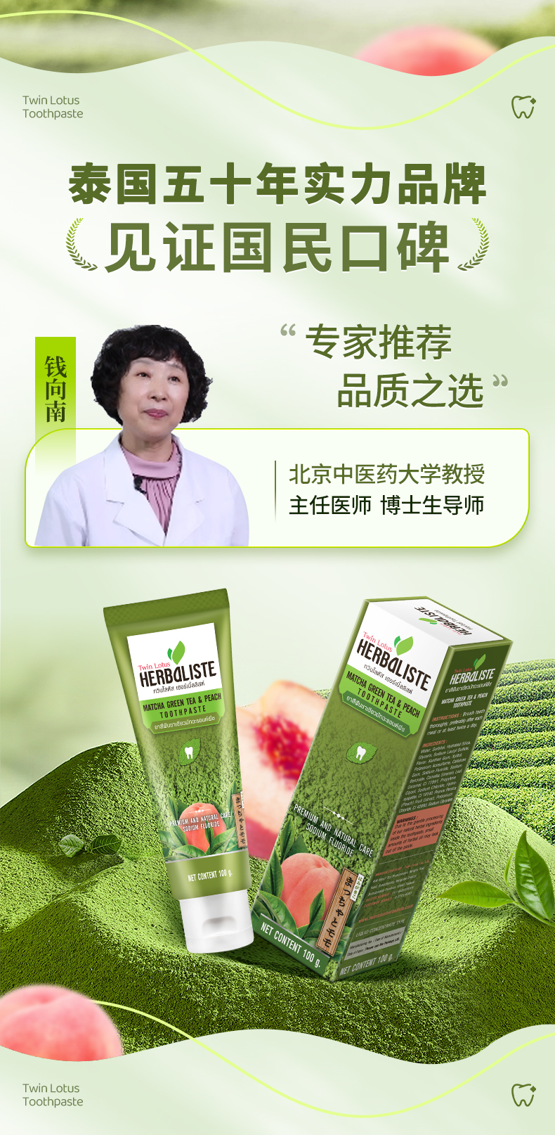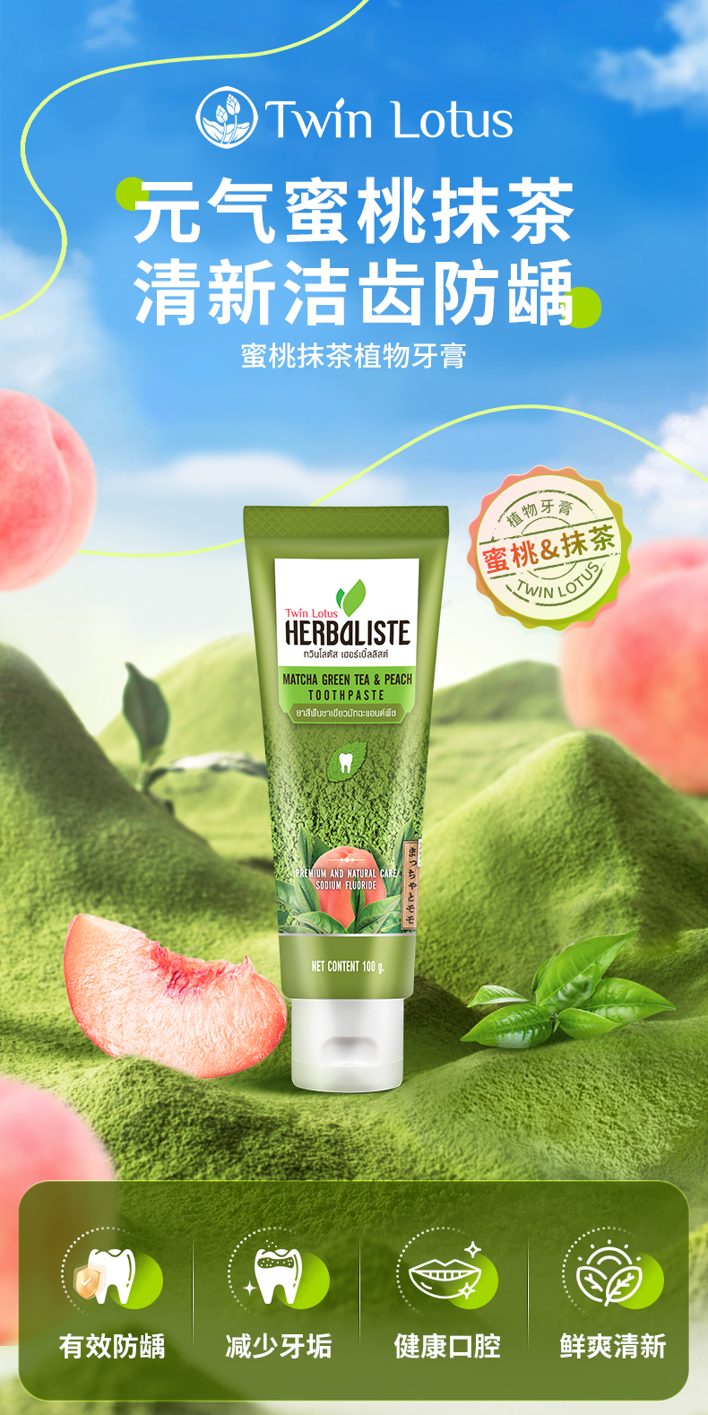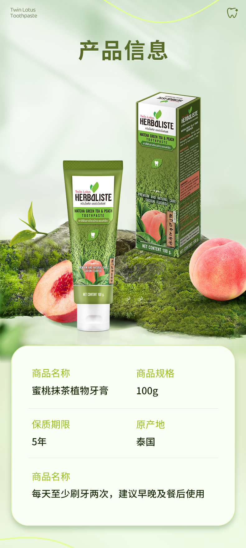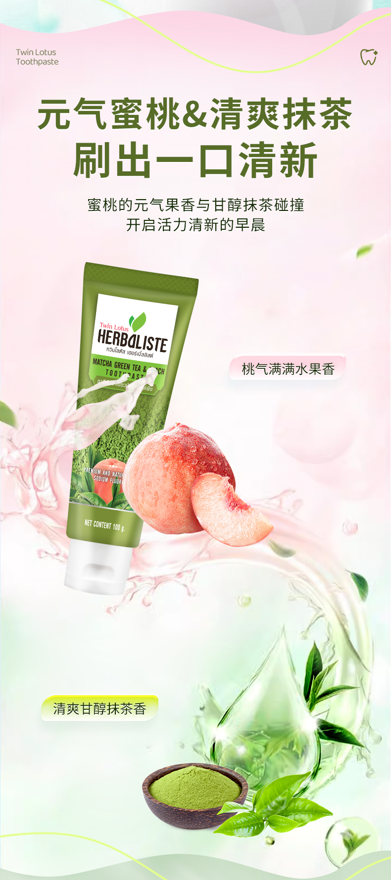 泰国双莲抹茶桃子味牙膏 100g