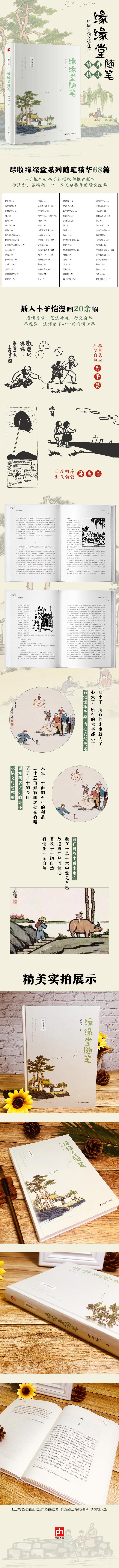 收录丰子恺缘缘堂系列68篇经典随笔,丰子恺代表性漫画数十幅。丰子恺外孙杨子耘授权和推荐版本。在上海开明书店1931年初版本的基础上增加其他代表篇目50篇。以平常心写平常事,一本书阅尽丰子恺的有情世界。