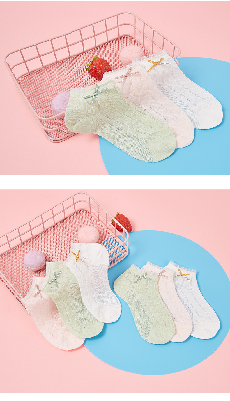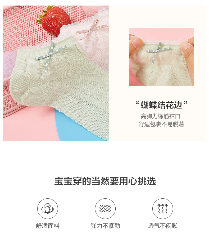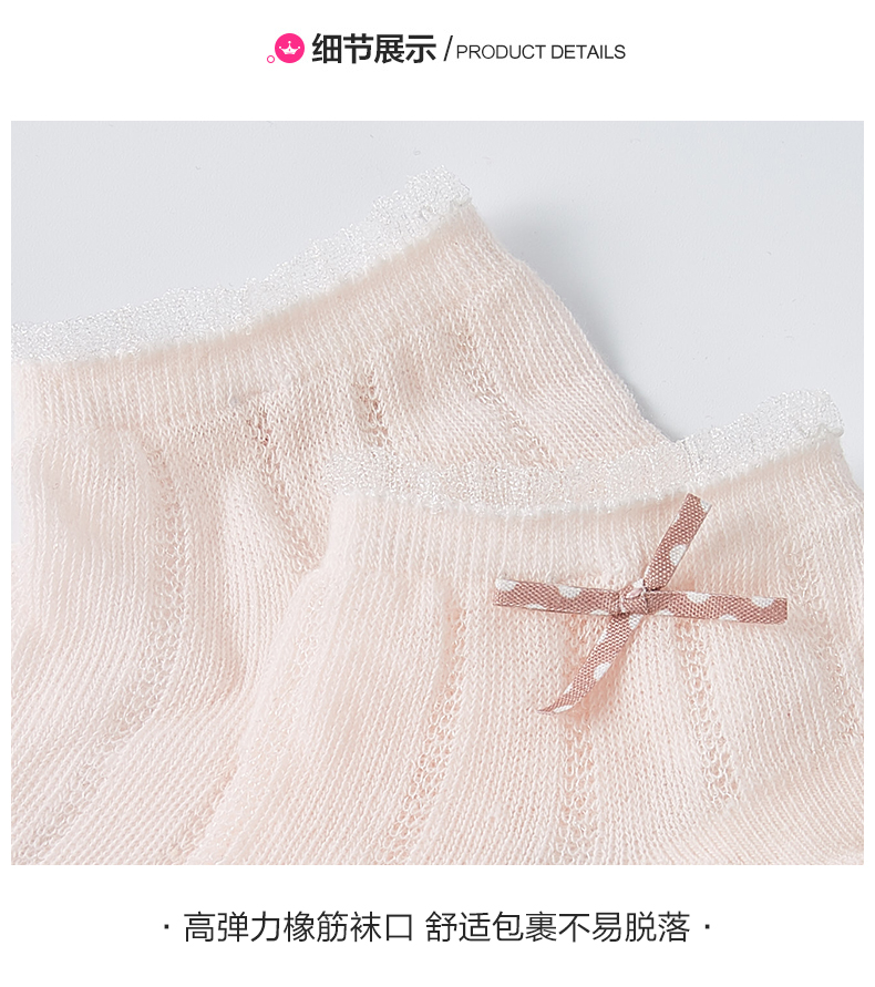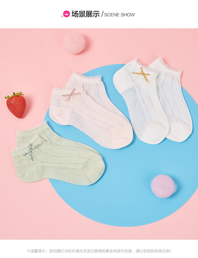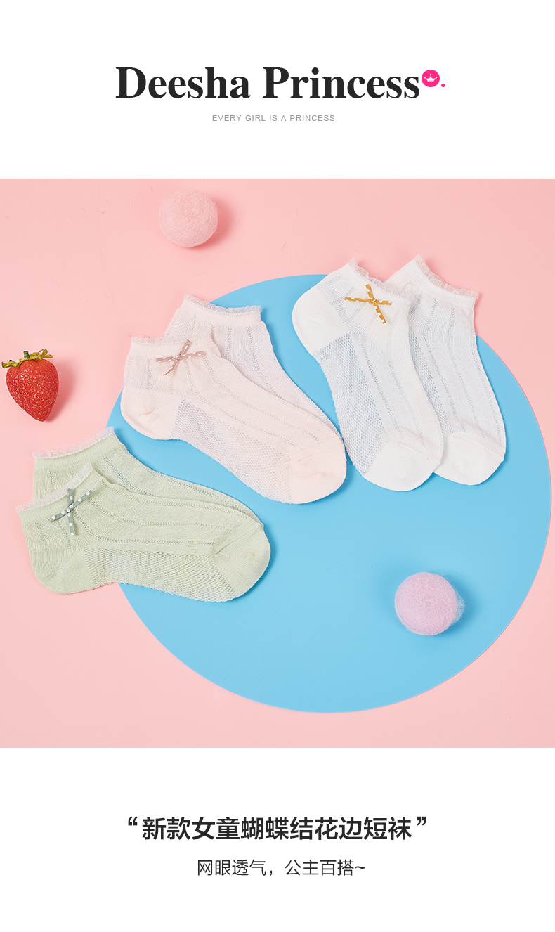 笛莎Deesha 童装女童袜子2022夏季新款时尚蝴蝶结花边简约舒适儿童短袜