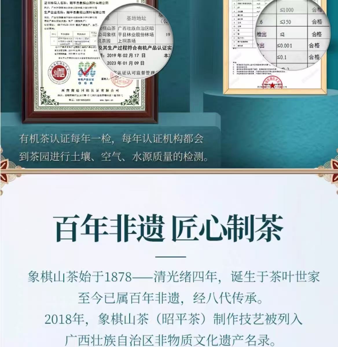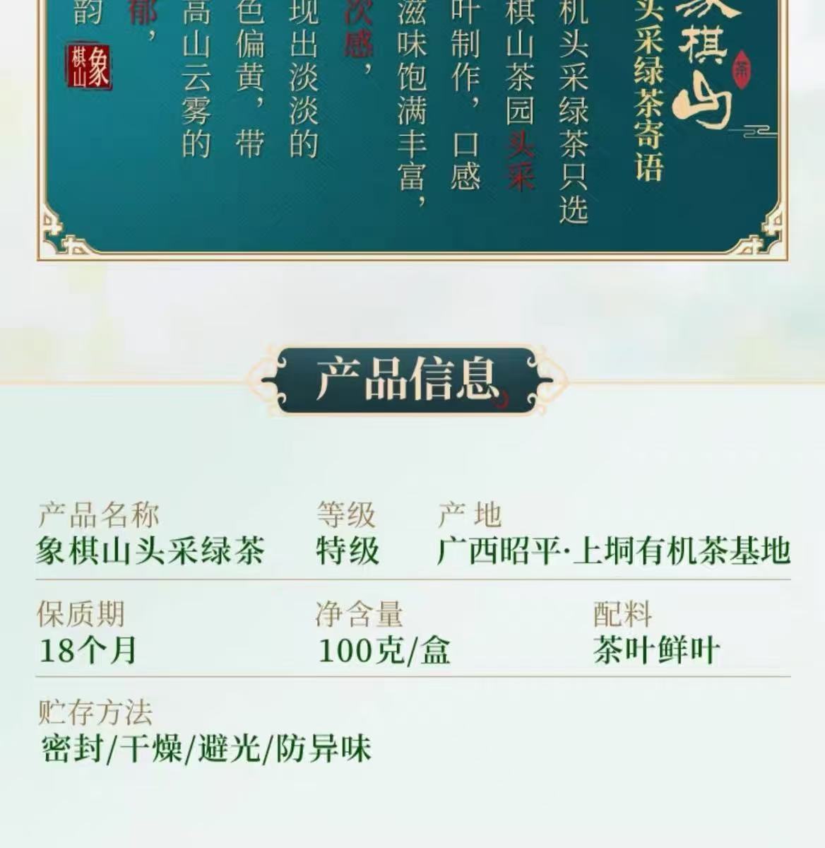 象棋山有机昭平绿茶100g/盒