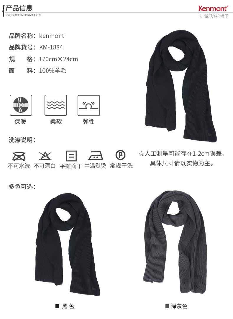 卡蒙/Kenmont男士秋冬季毛线针织长款围巾 KM-1884