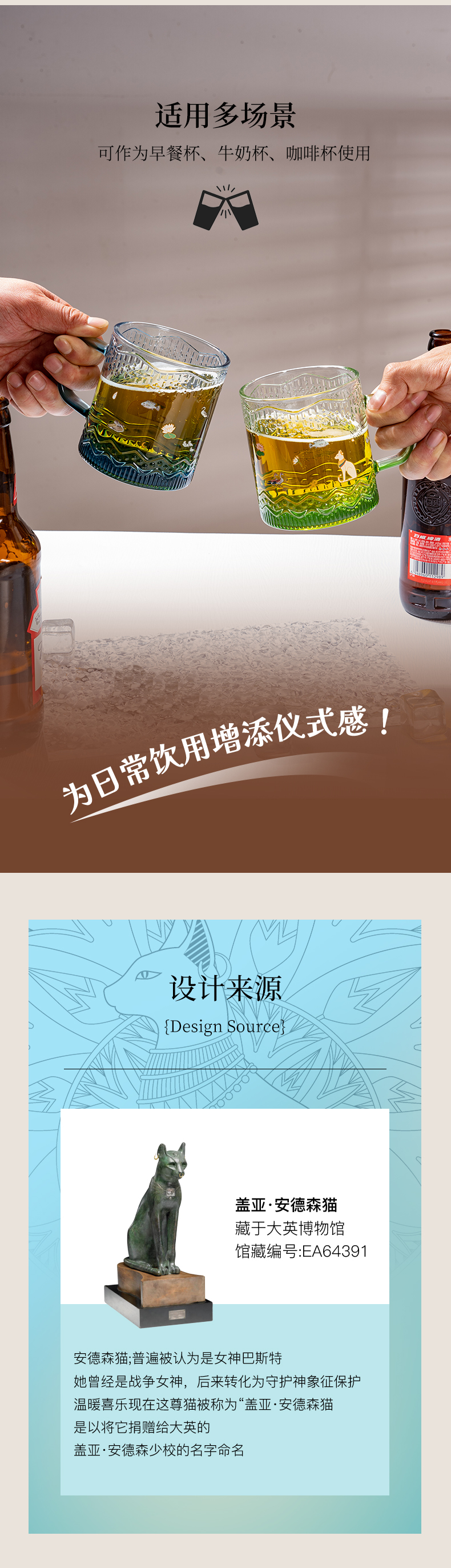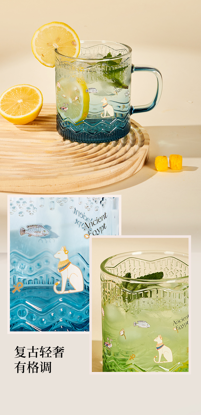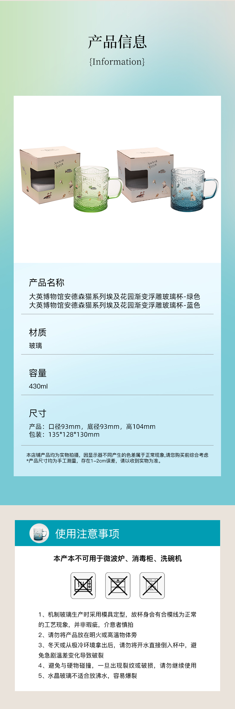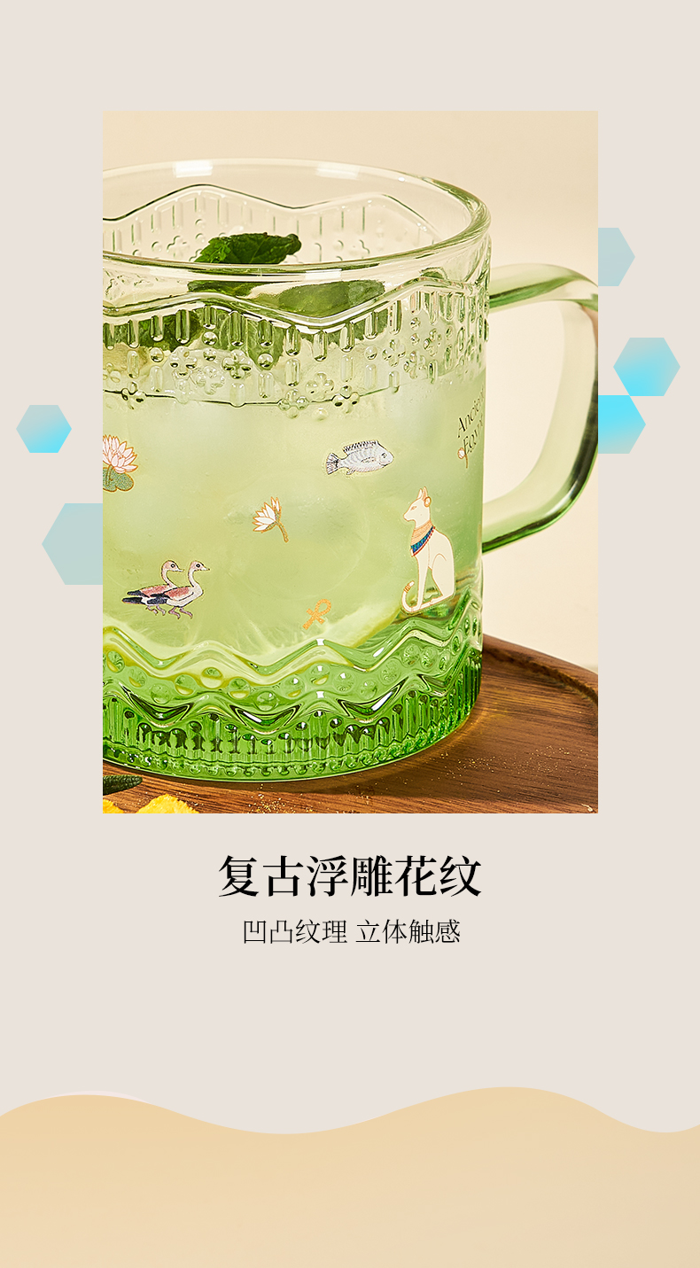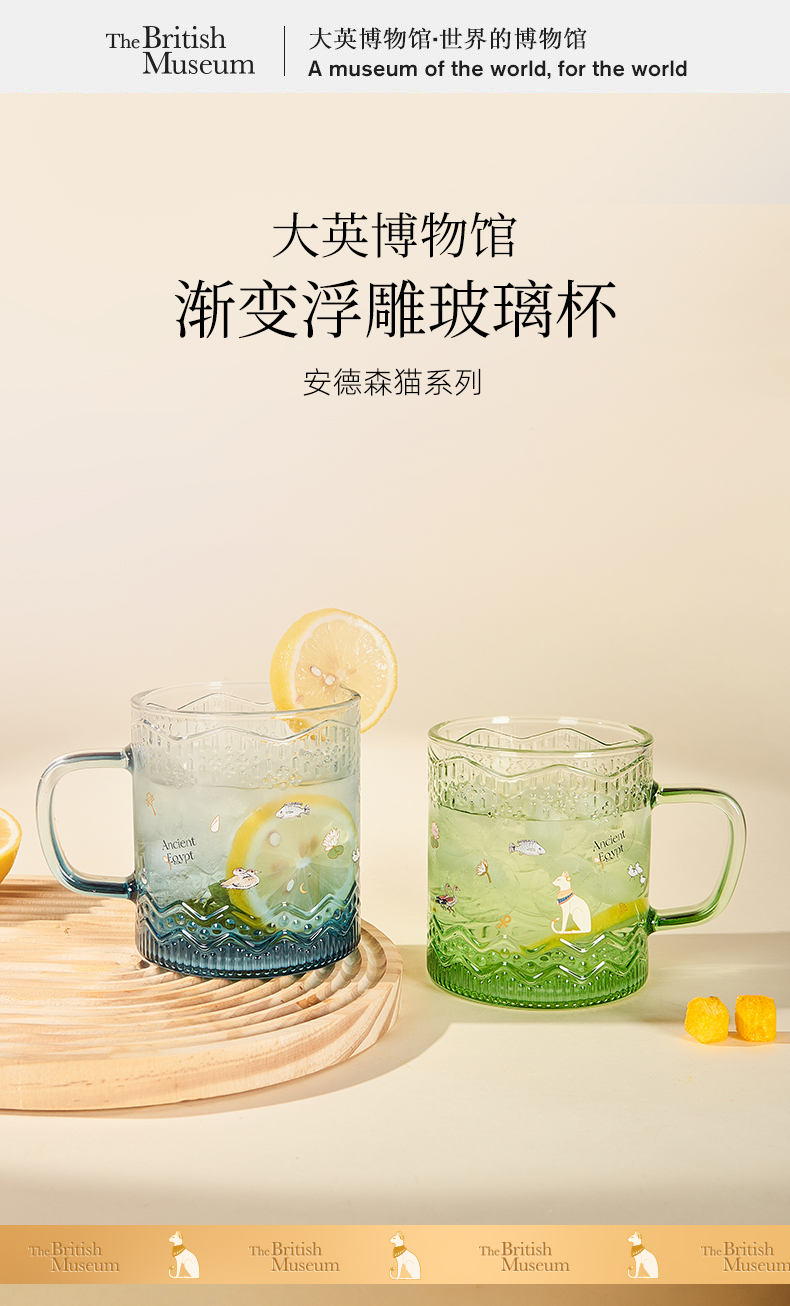 大英博物馆 盖亚·安德森猫系列 埃及花园 渐变浮雕玻璃杯 蓝色/绿色