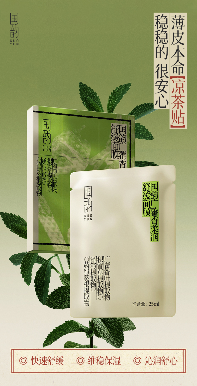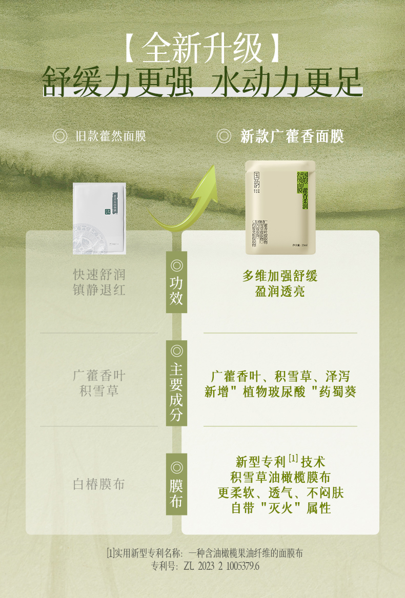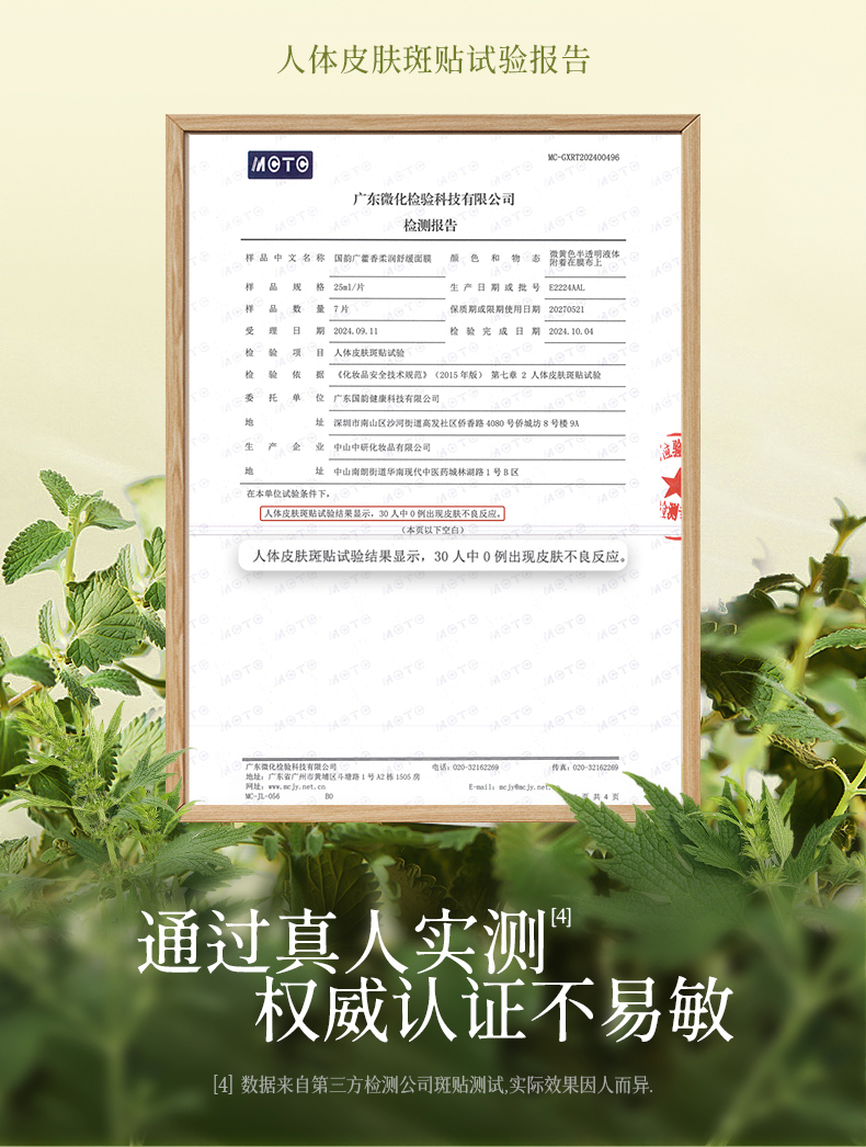 国韵广藿香柔润舒缓面膜25ml*5片/盒*1,买即赠同款面膜*2片