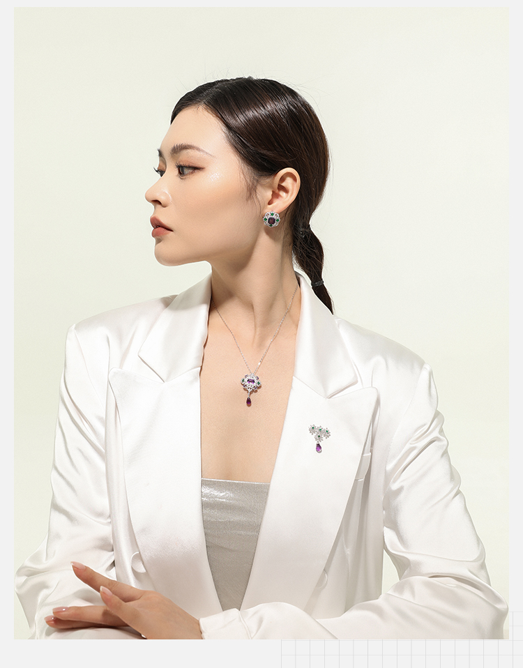 【花园】JULEE JULEE茱俪珠宝 18K白金紫水晶祖母绿钻石胸针/吊坠两用款