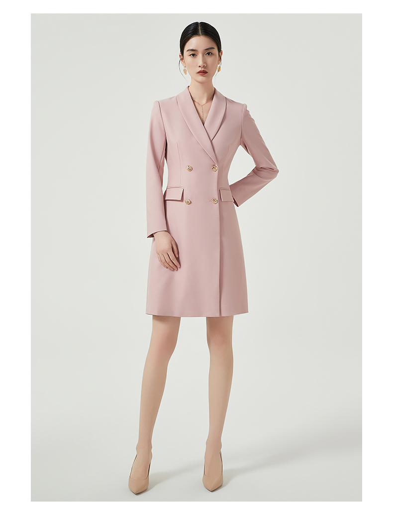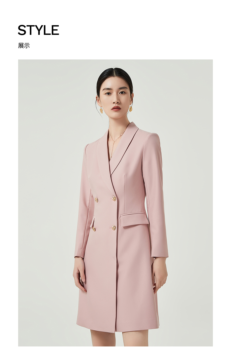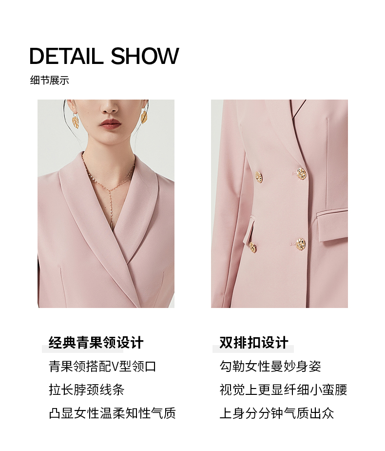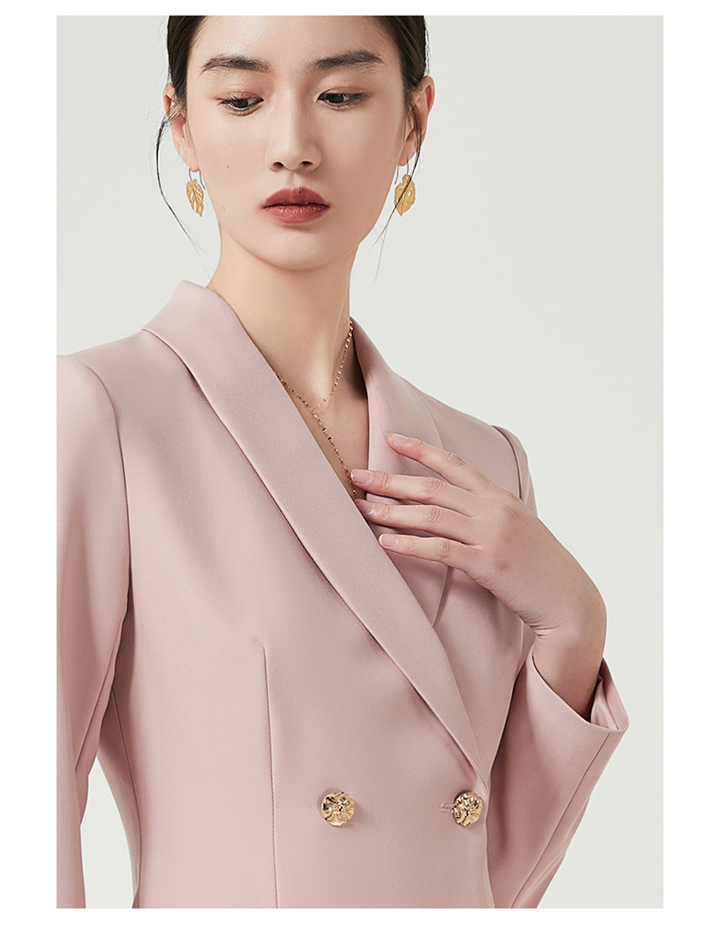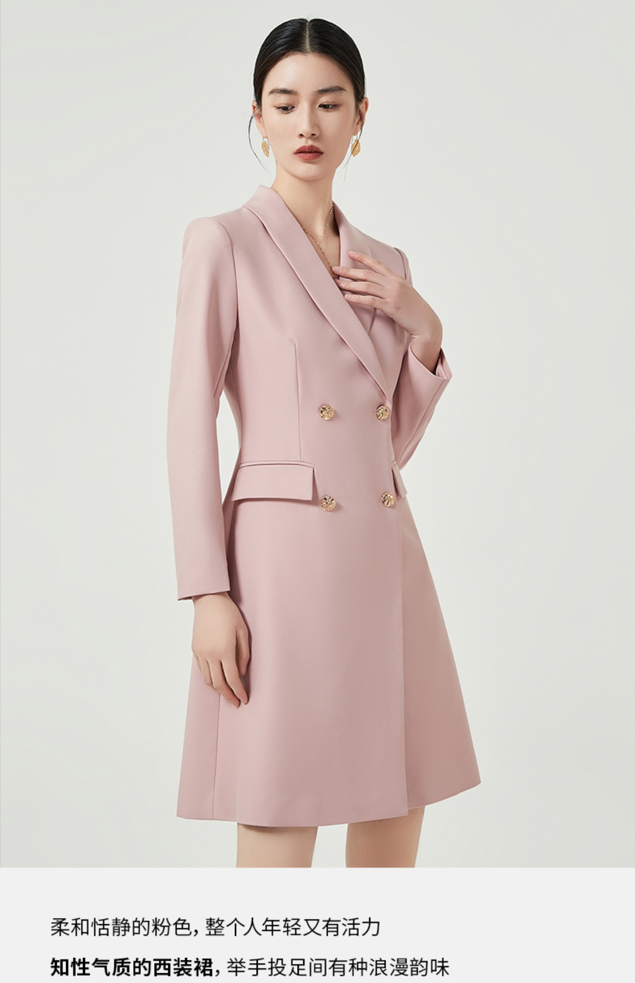 IWY/粉色西装连衣裙女春秋气质通勤职场女装中长款艺考主持人演讲裙子Q768