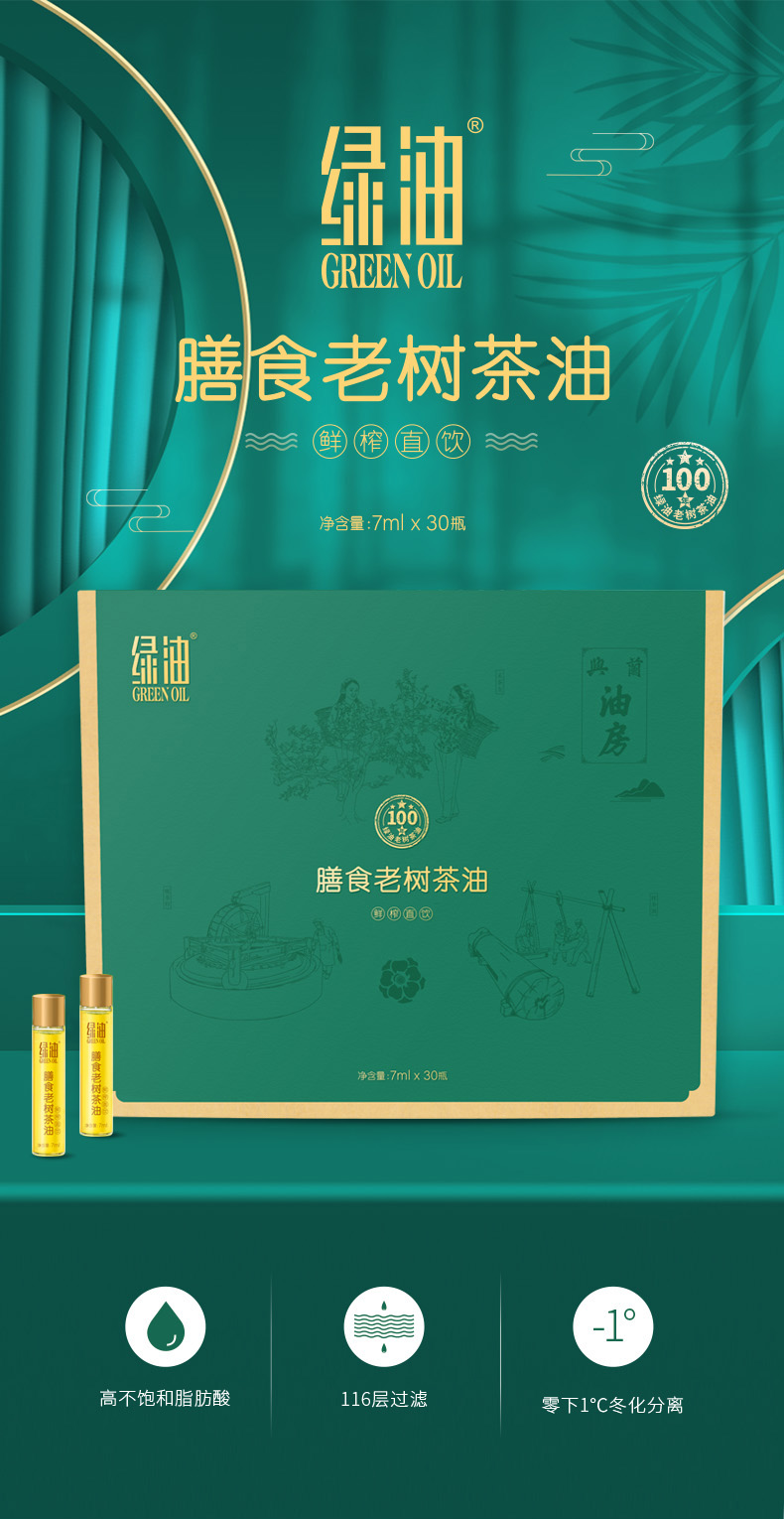 绿油膳食老树茶油鲜榨直饮礼盒装7ml*30瓶