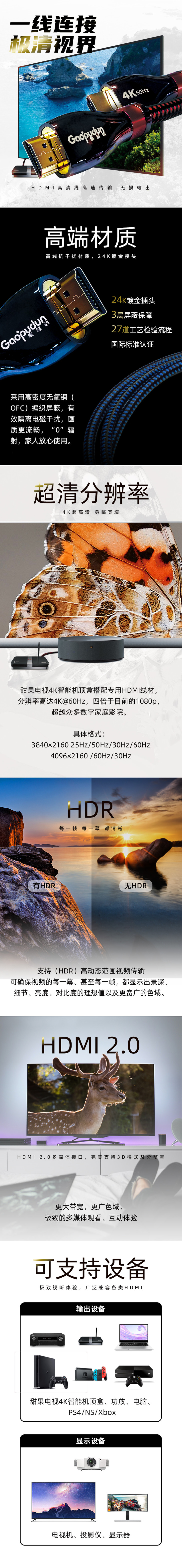 【极清4K】高品质 HDMI高清线,高速稳定,甜果电视、甜果时光可用 商品图2