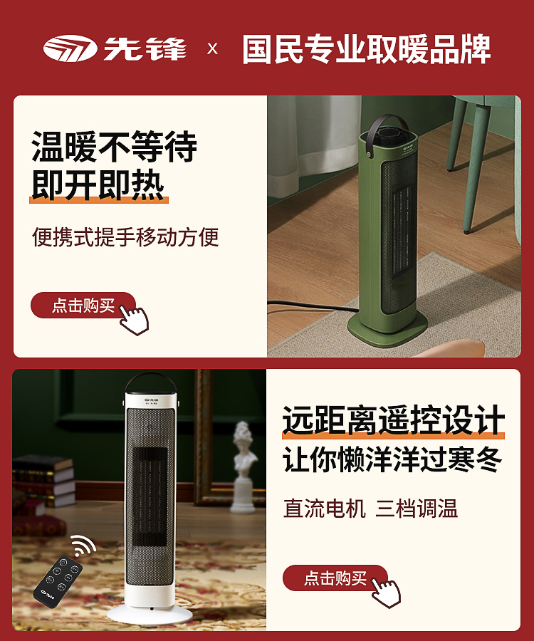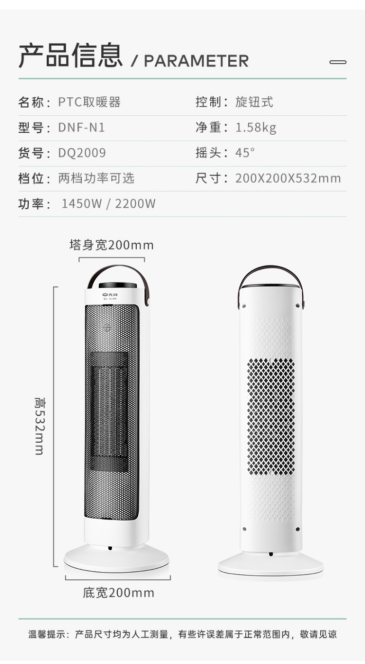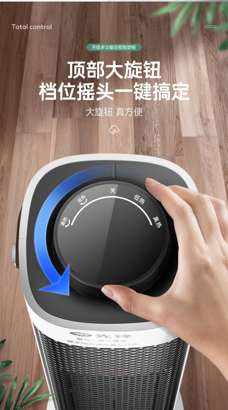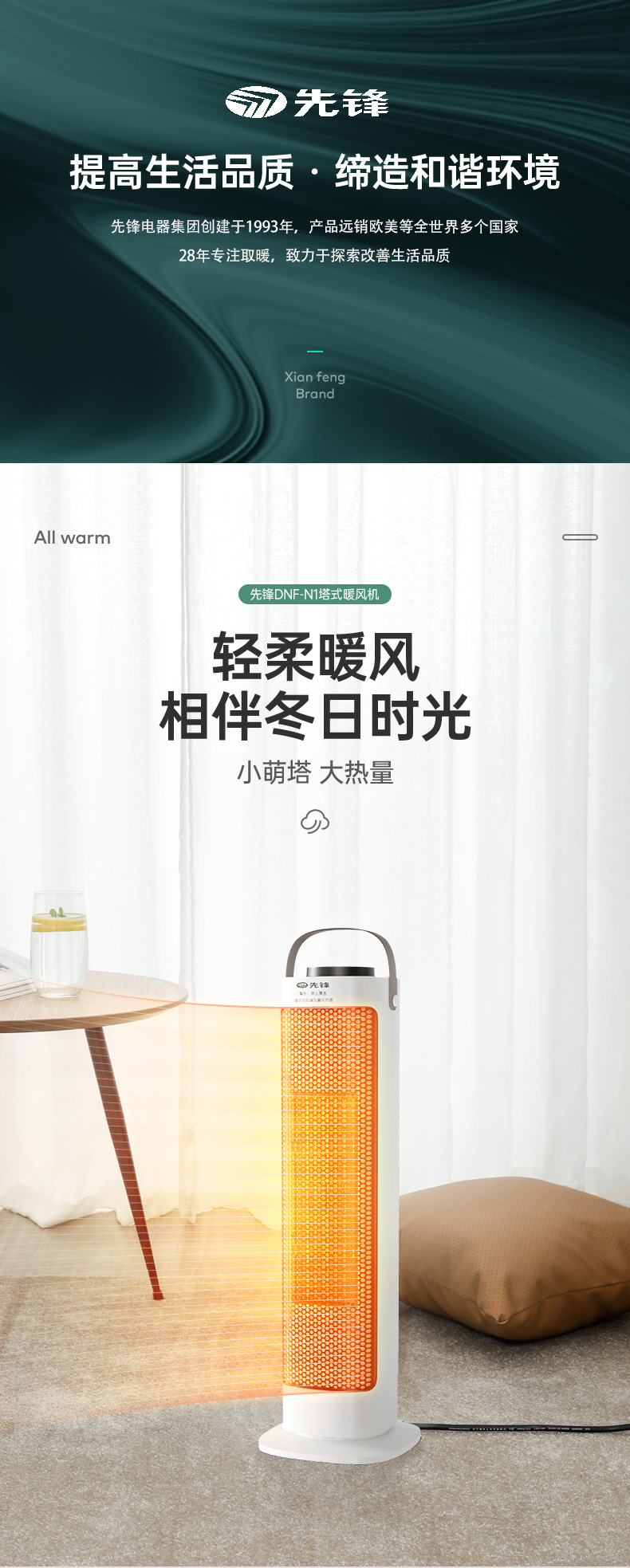 先锋(Singfun)暖风机取暖器电暖气电暖器电暖风电吹风吹风机热风机塔式广角摇头1秒速热DNF-N1
