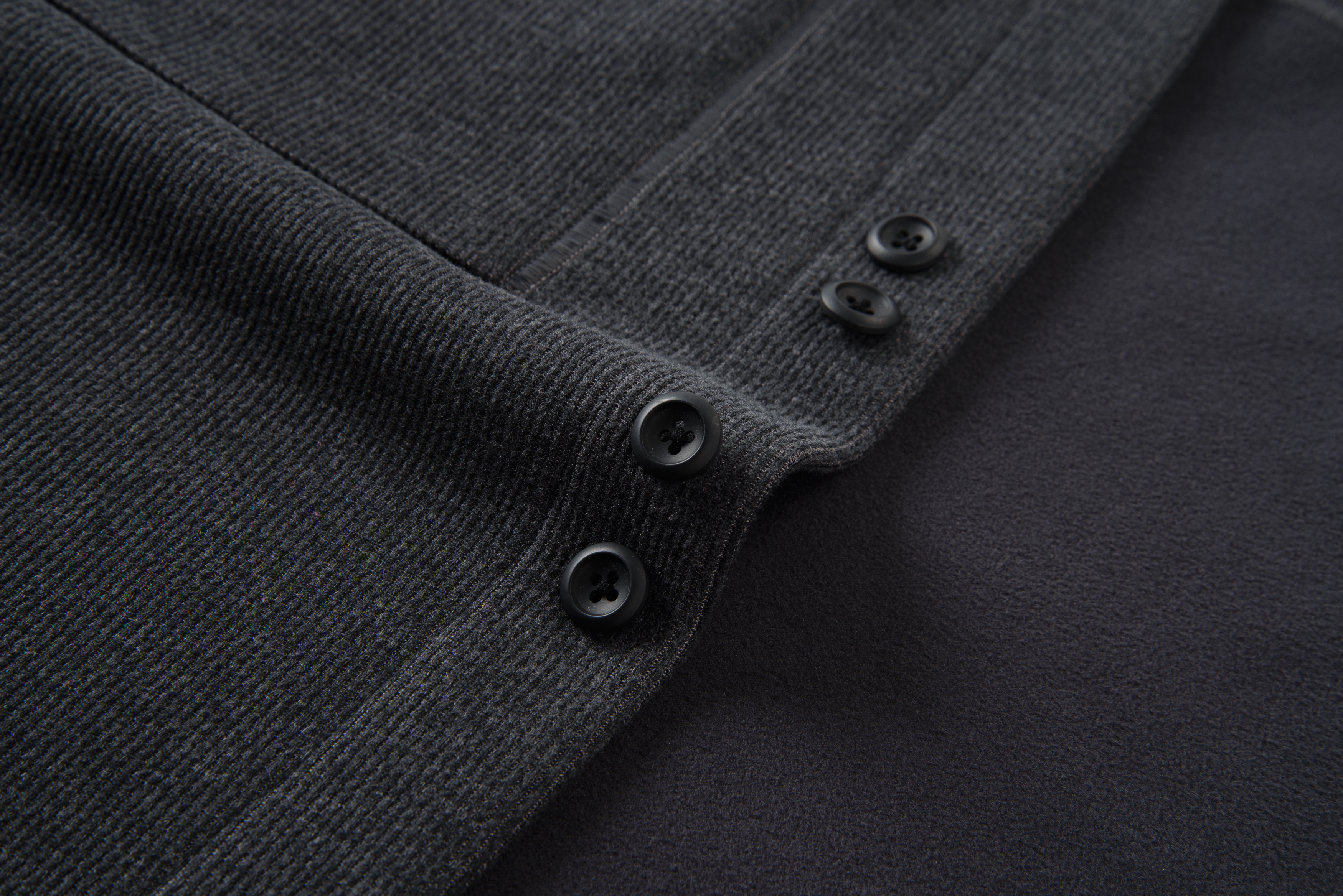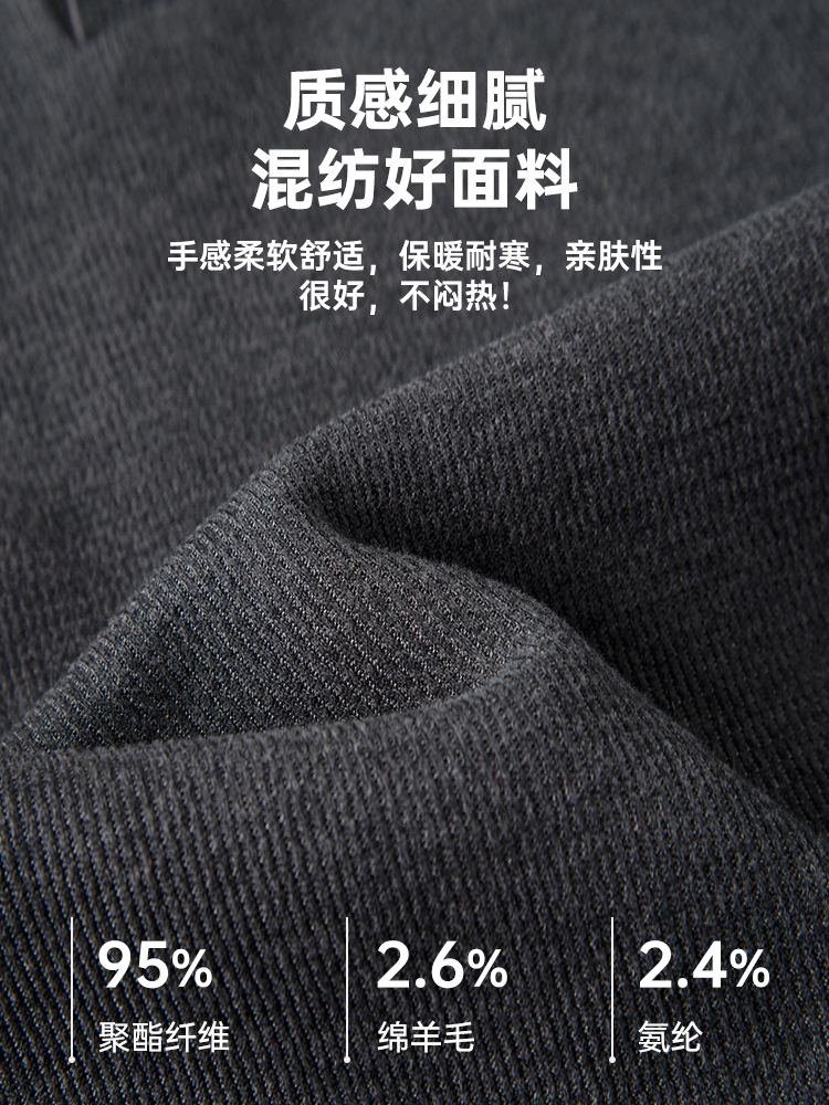 复合面布:95.0%聚酯纤维 2.6%绵羊毛 2.4%氨纶
