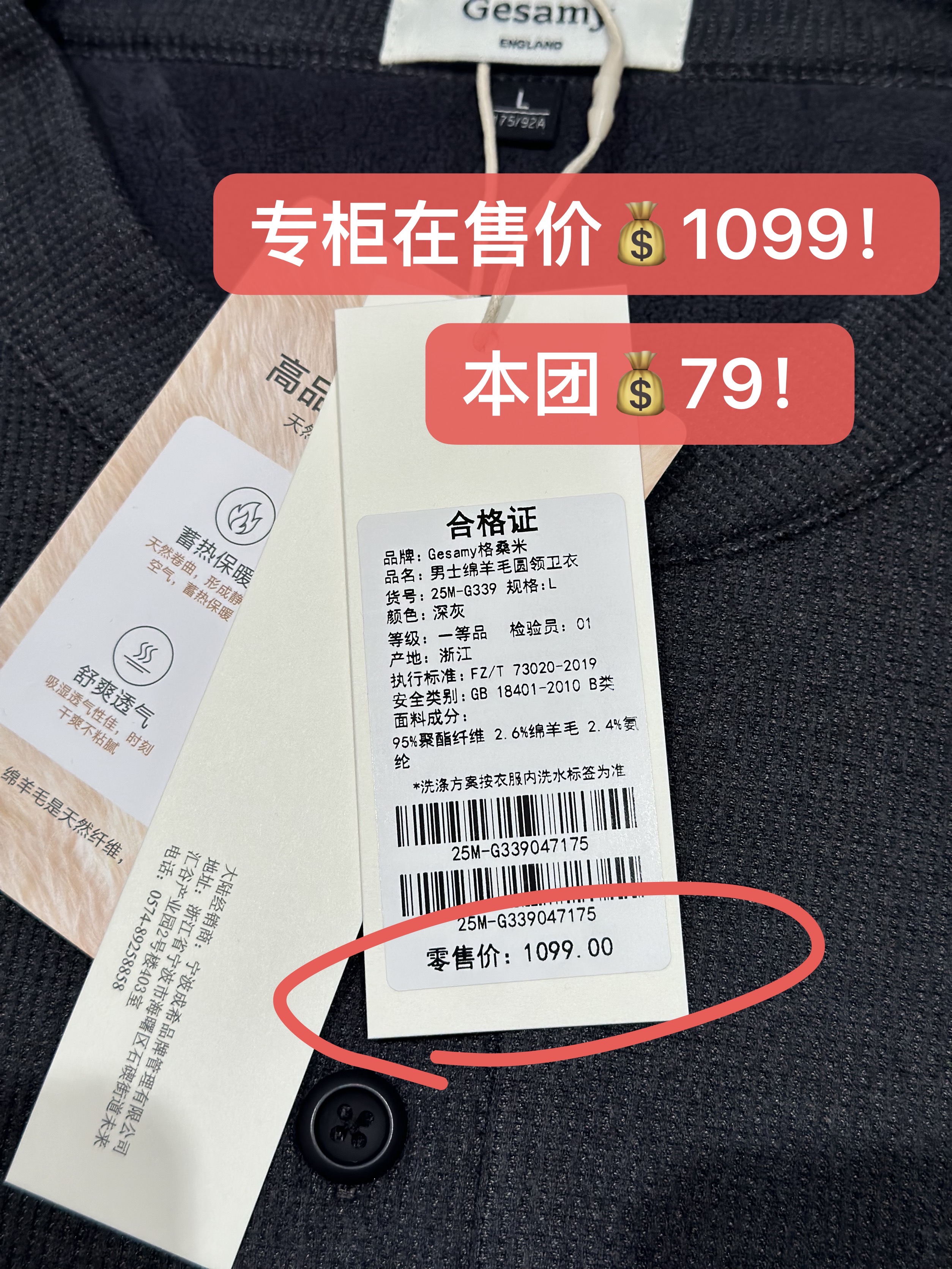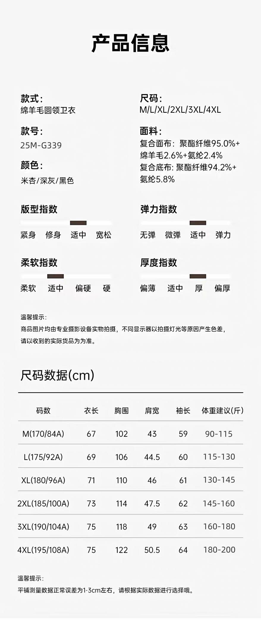【品名】Gesamy男士绵羊毛圆领卫衣