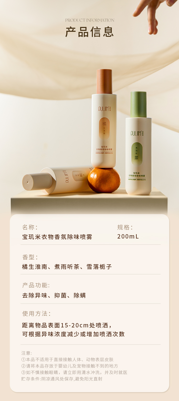 【宝玑米】 衣物香氛除味喷雾 200ml
