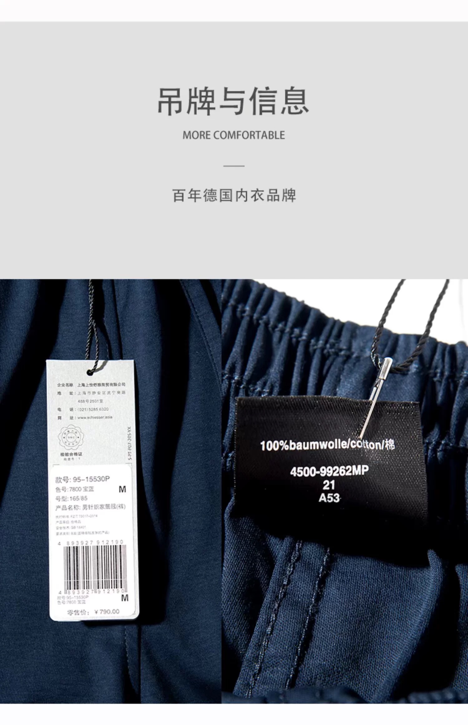 【80支纱100%丝光棉】SCHIESSER 舒雅铂雅男装80支100%丝光棉短裤单裤95/15530P