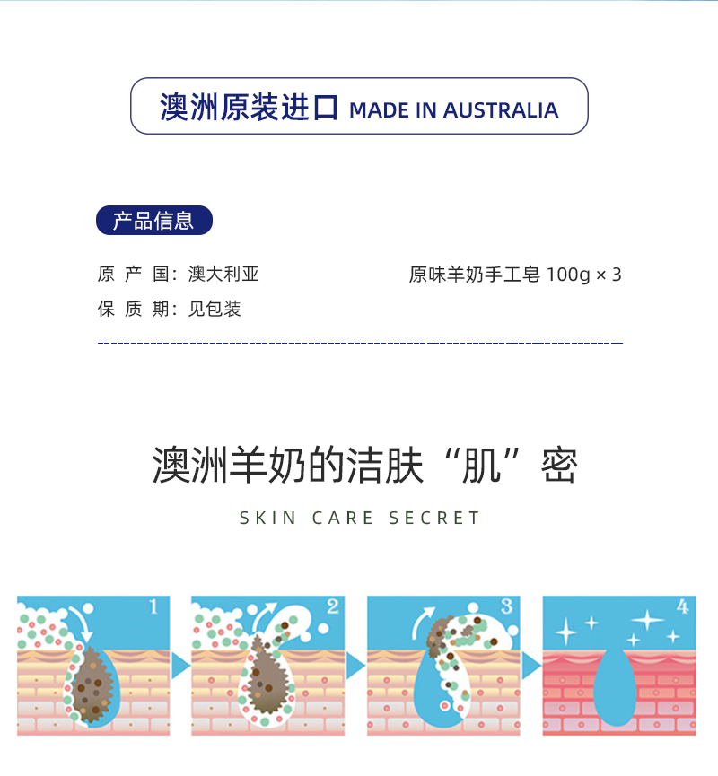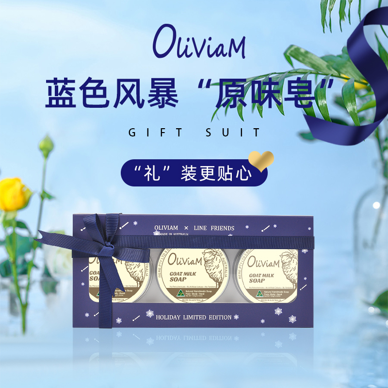 澳莉维亚蓝色风暴原味羊奶手工皂套盒(100g*3块)