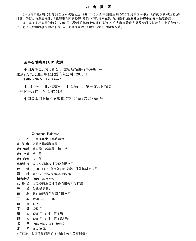 中国海事史(现代部分)ISBN 978-7-114-15064-7