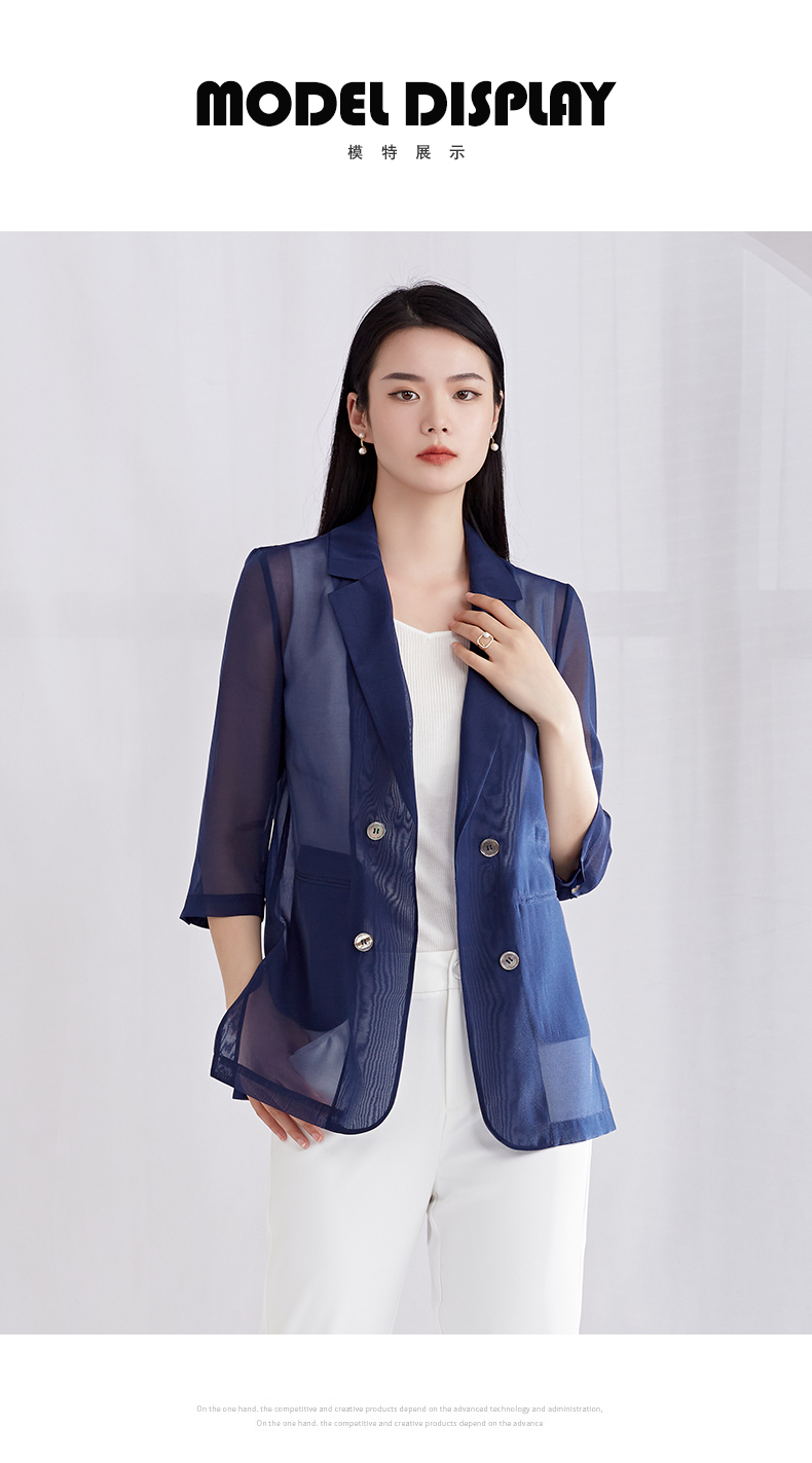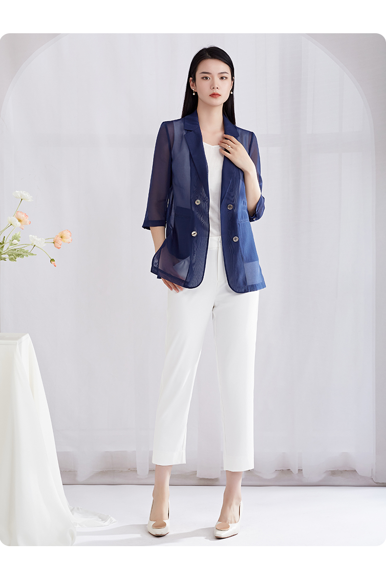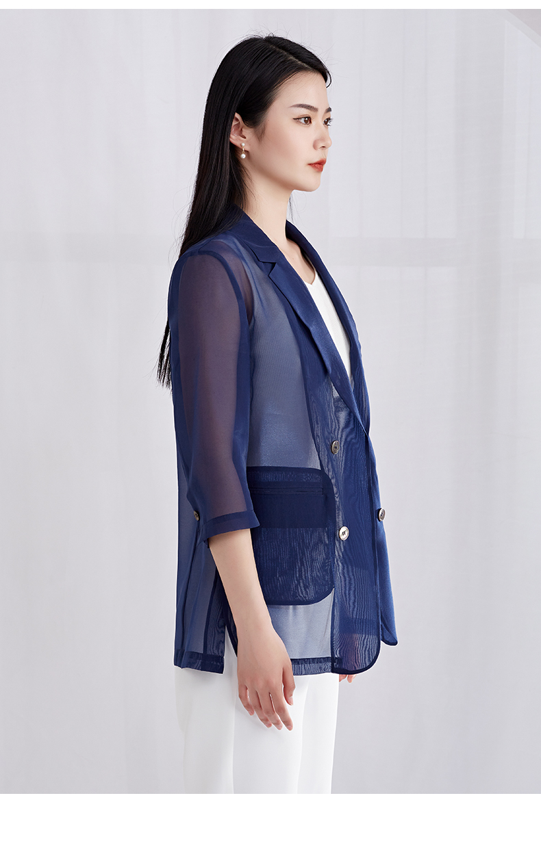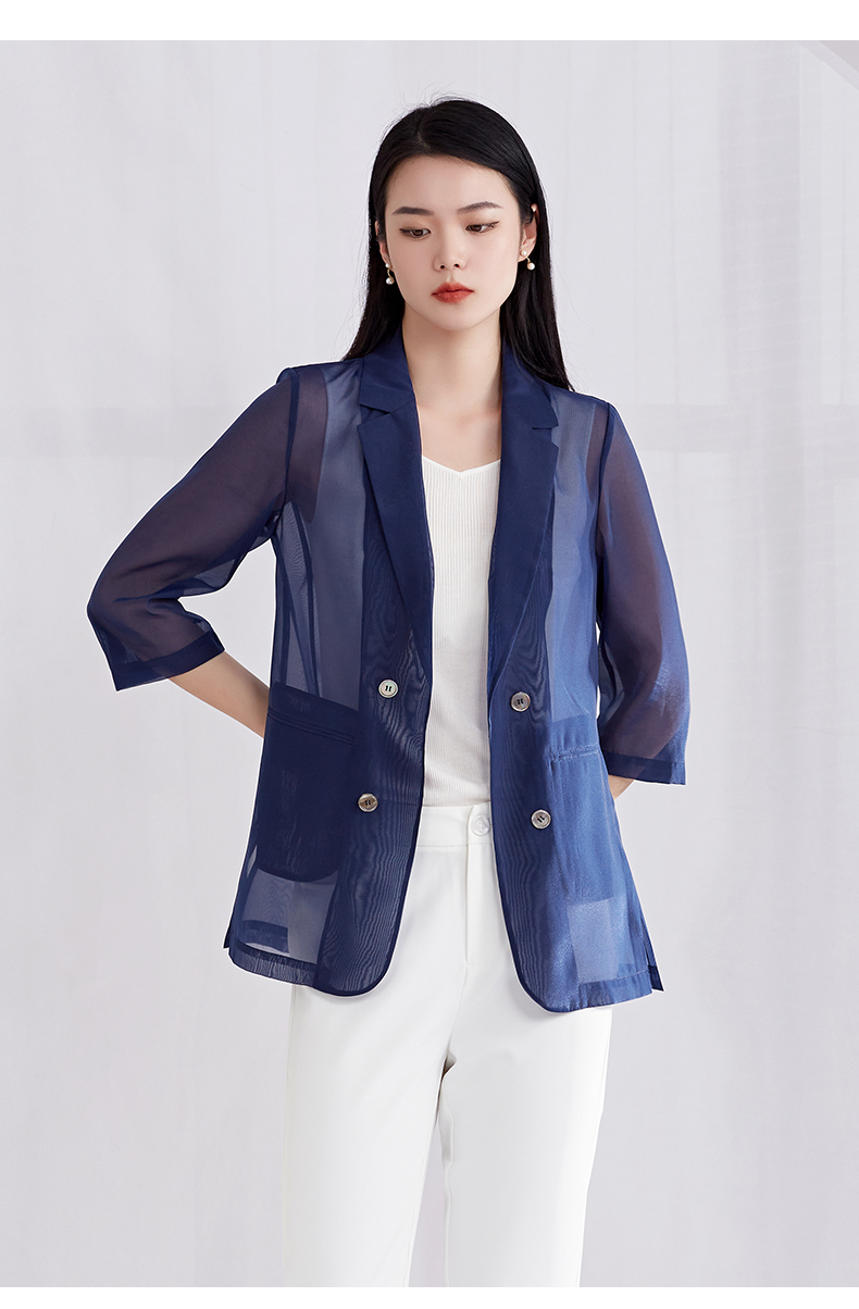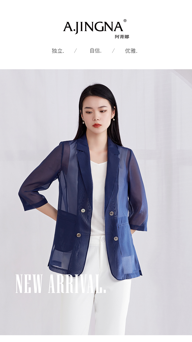 【积分兑换】阿菁娜经典藏蓝色双排染色贝壳扣H型薄款醋酸真丝外套A27X107032