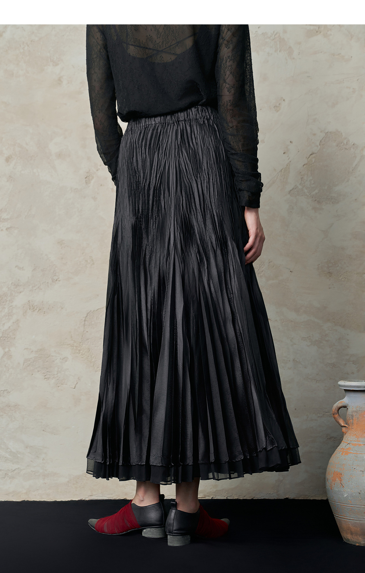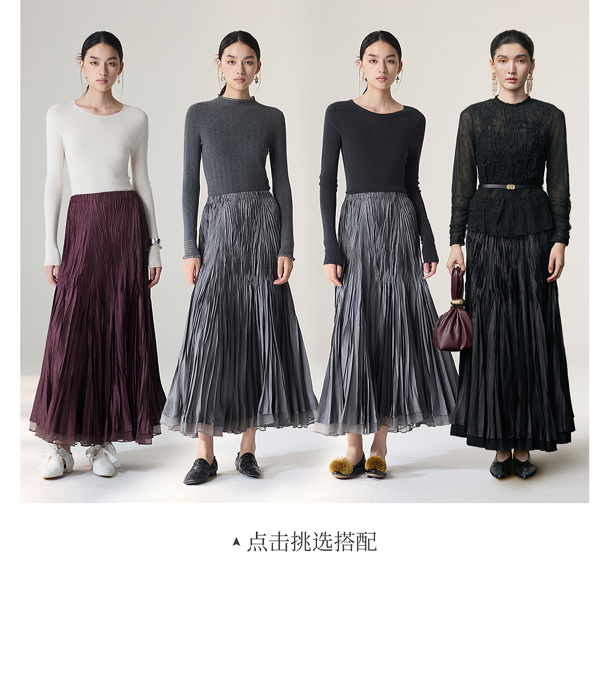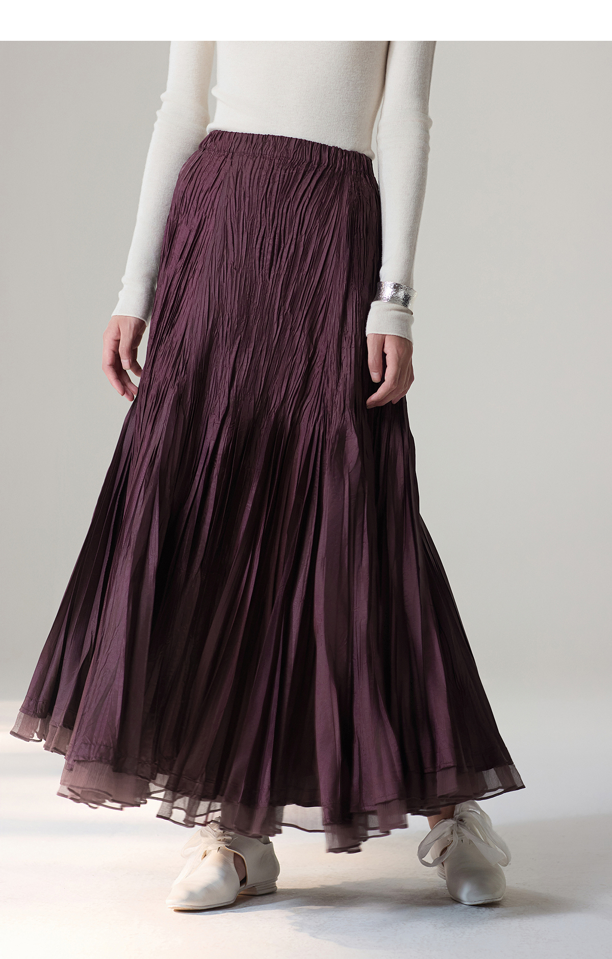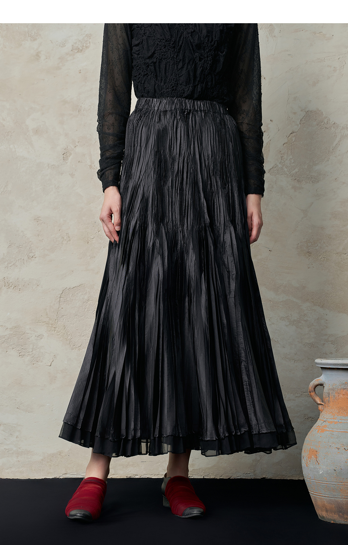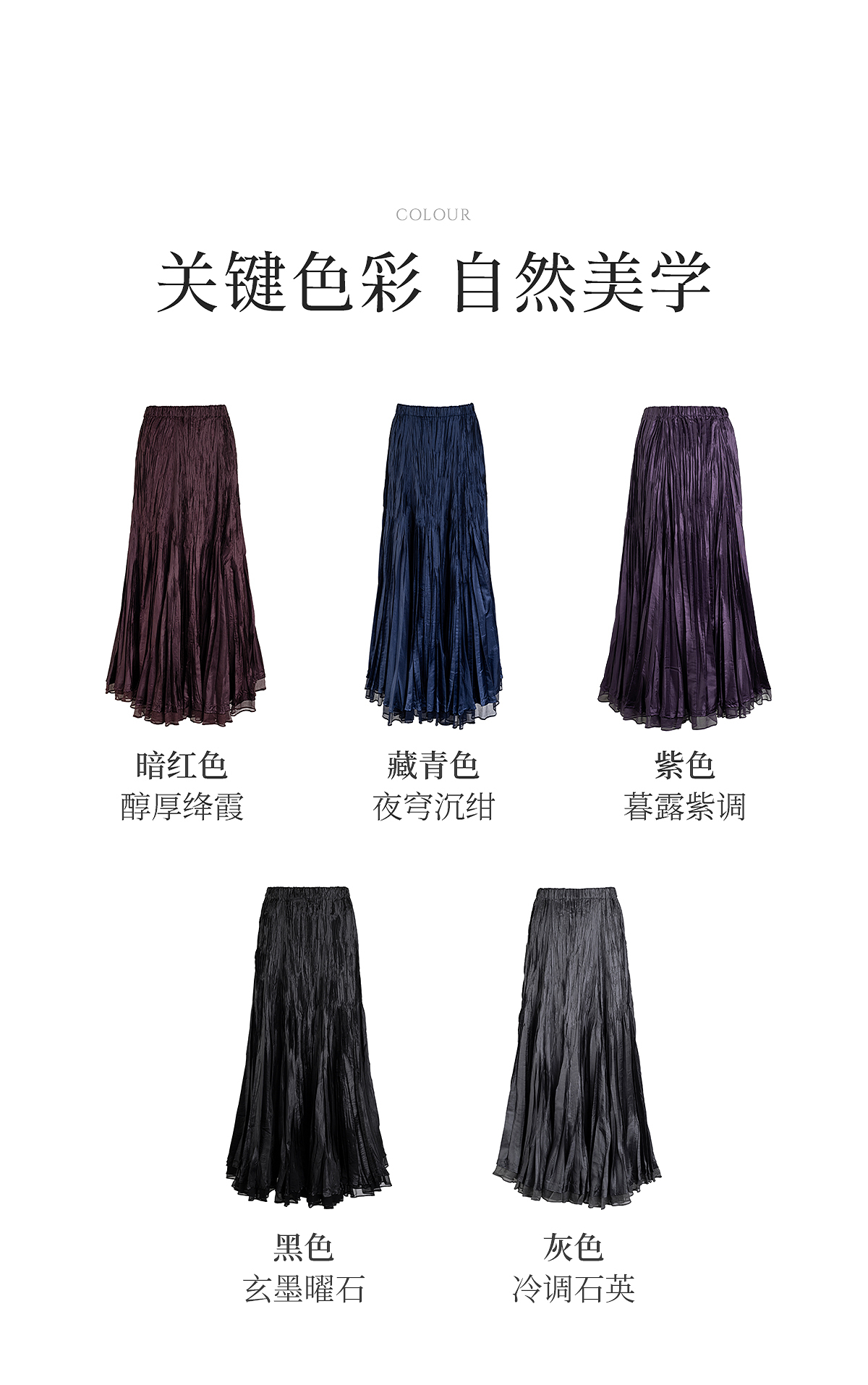 【林栖设计小店】(藏青色/黑色预售12.11)碎钻手工捏褶皱半身裙紫色2025秋季拼真丝休闲文艺新款长裙女1953039