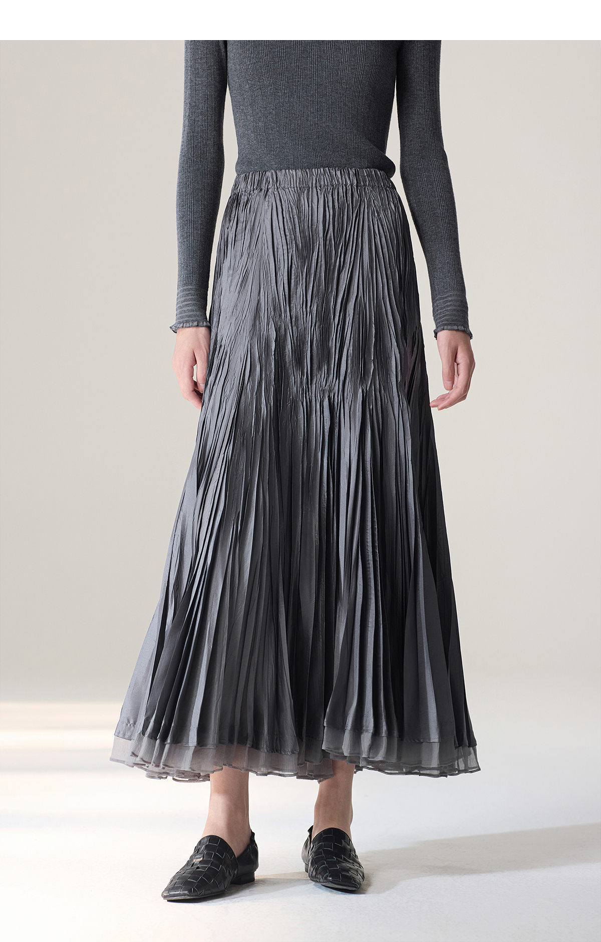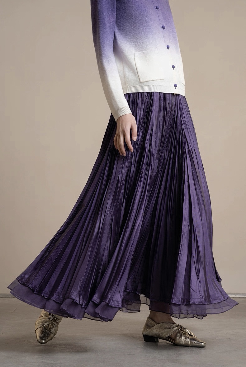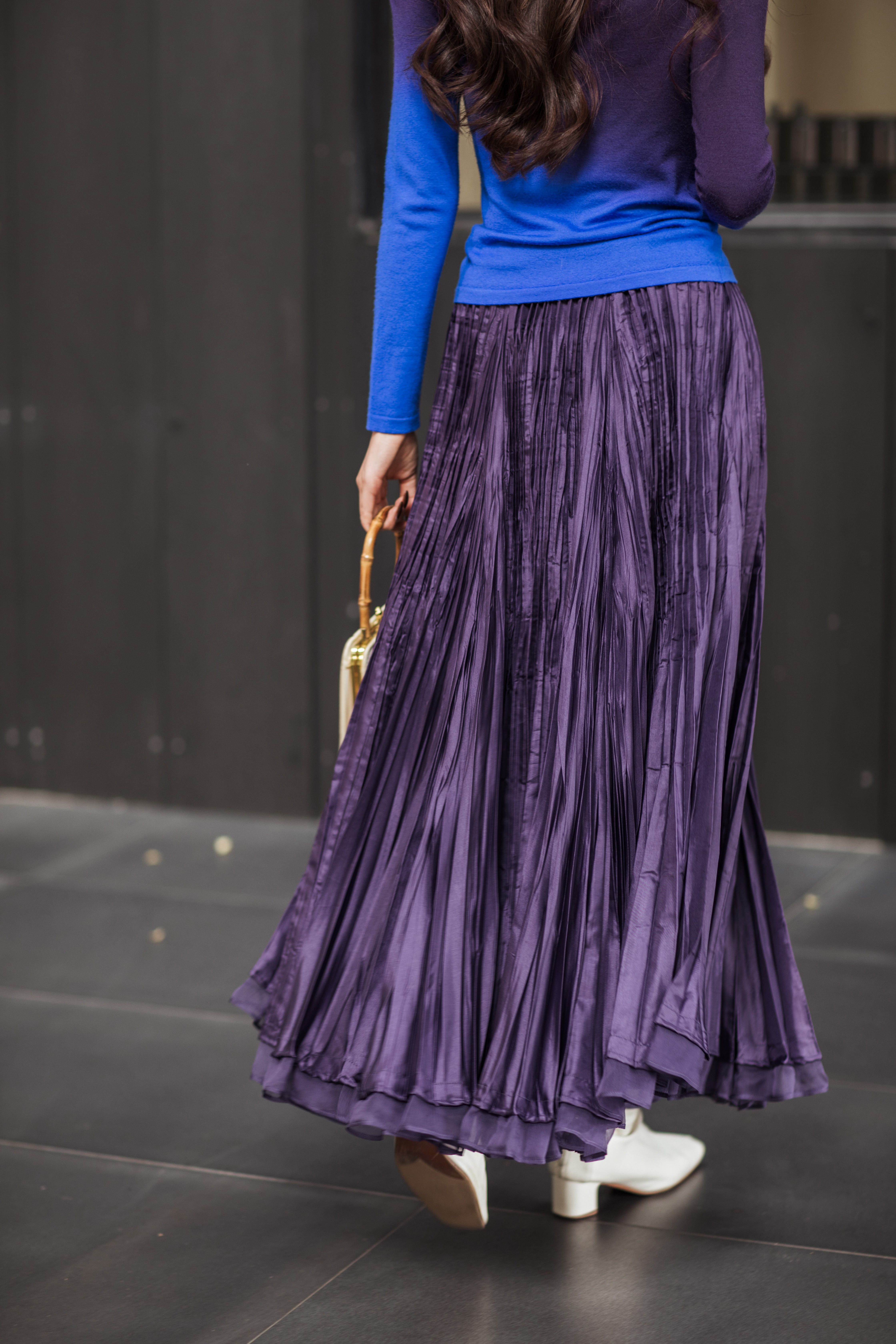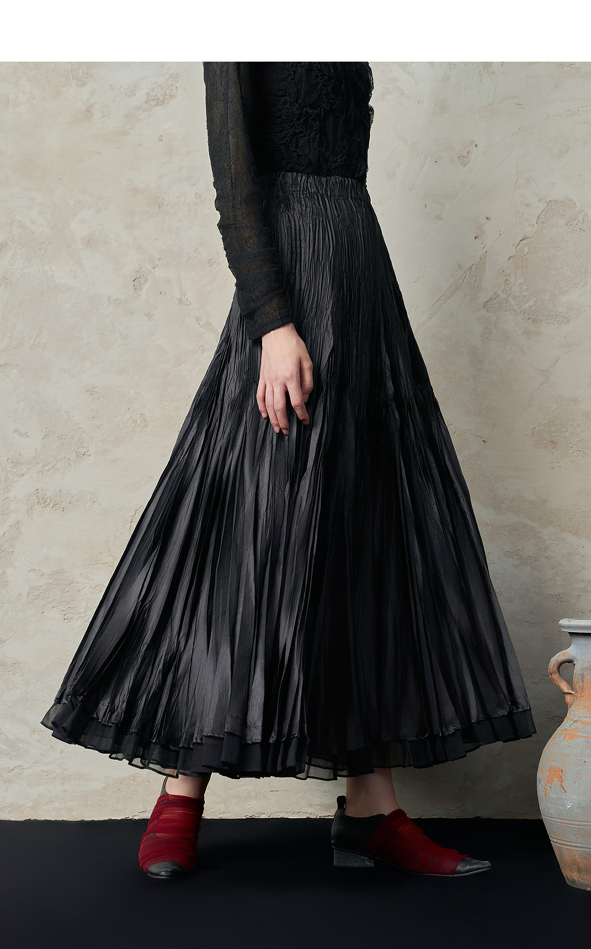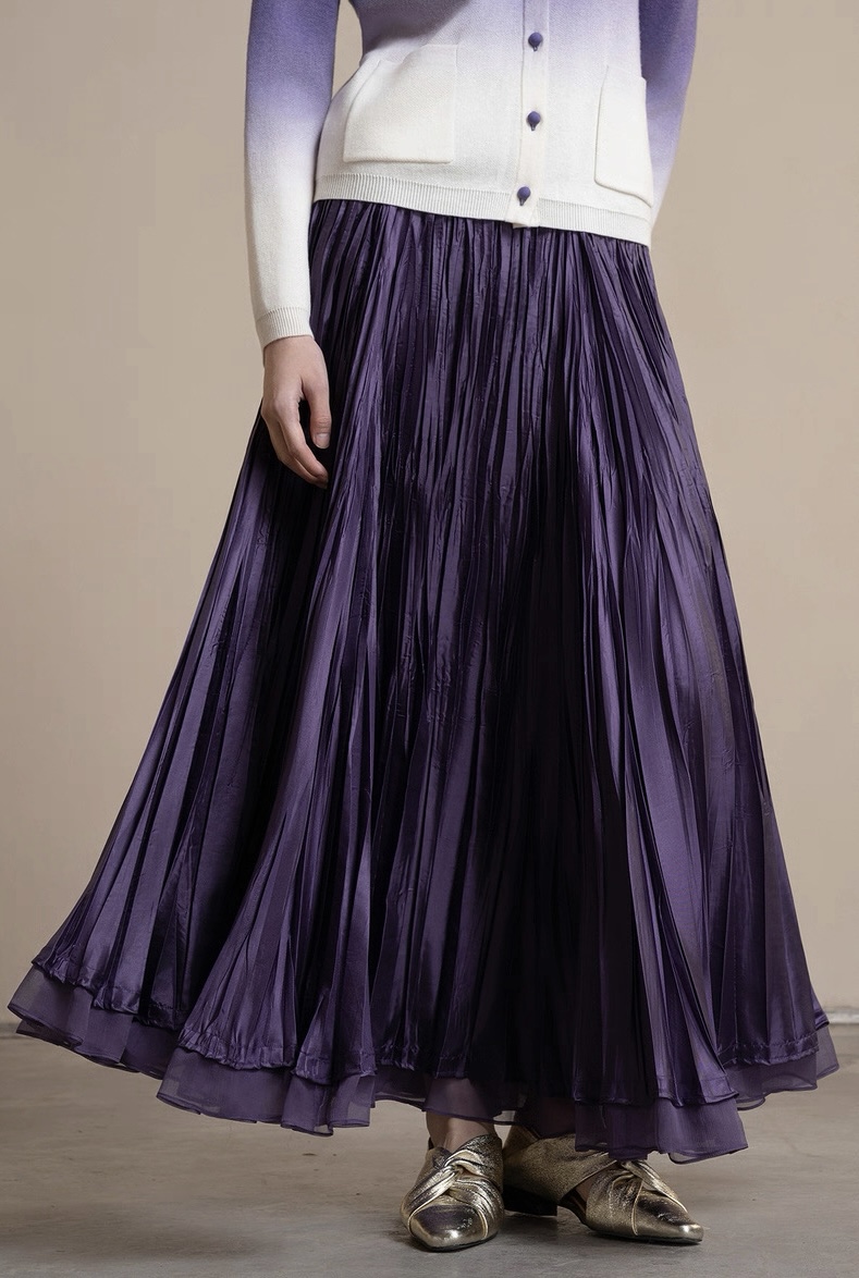 【林栖设计小店】(藏青色/黑色预售12.11)碎钻手工捏褶皱半身裙紫色2025秋季拼真丝休闲文艺新款长裙女1953039
