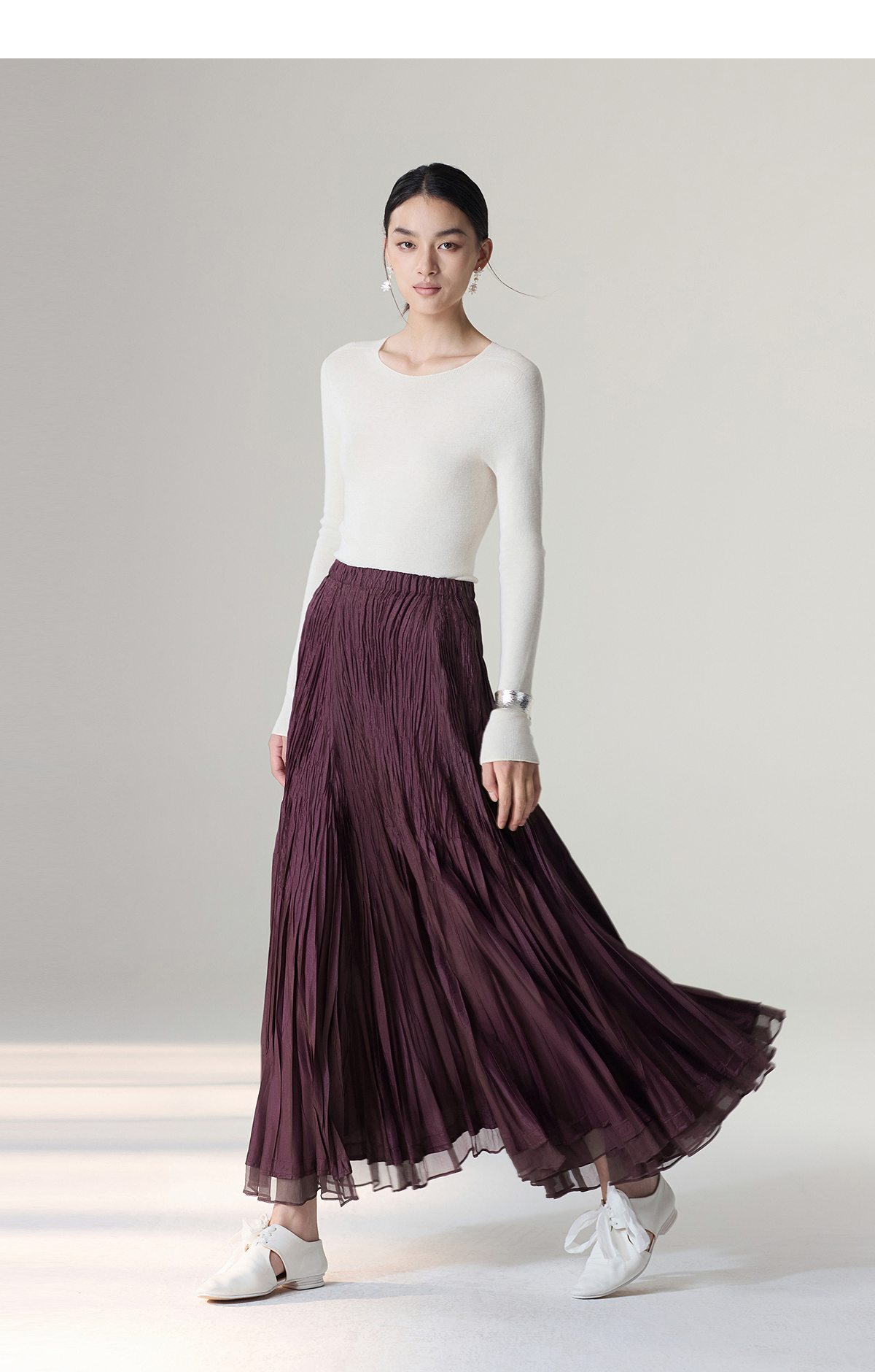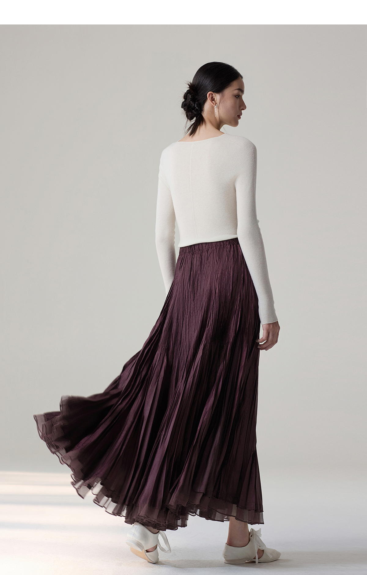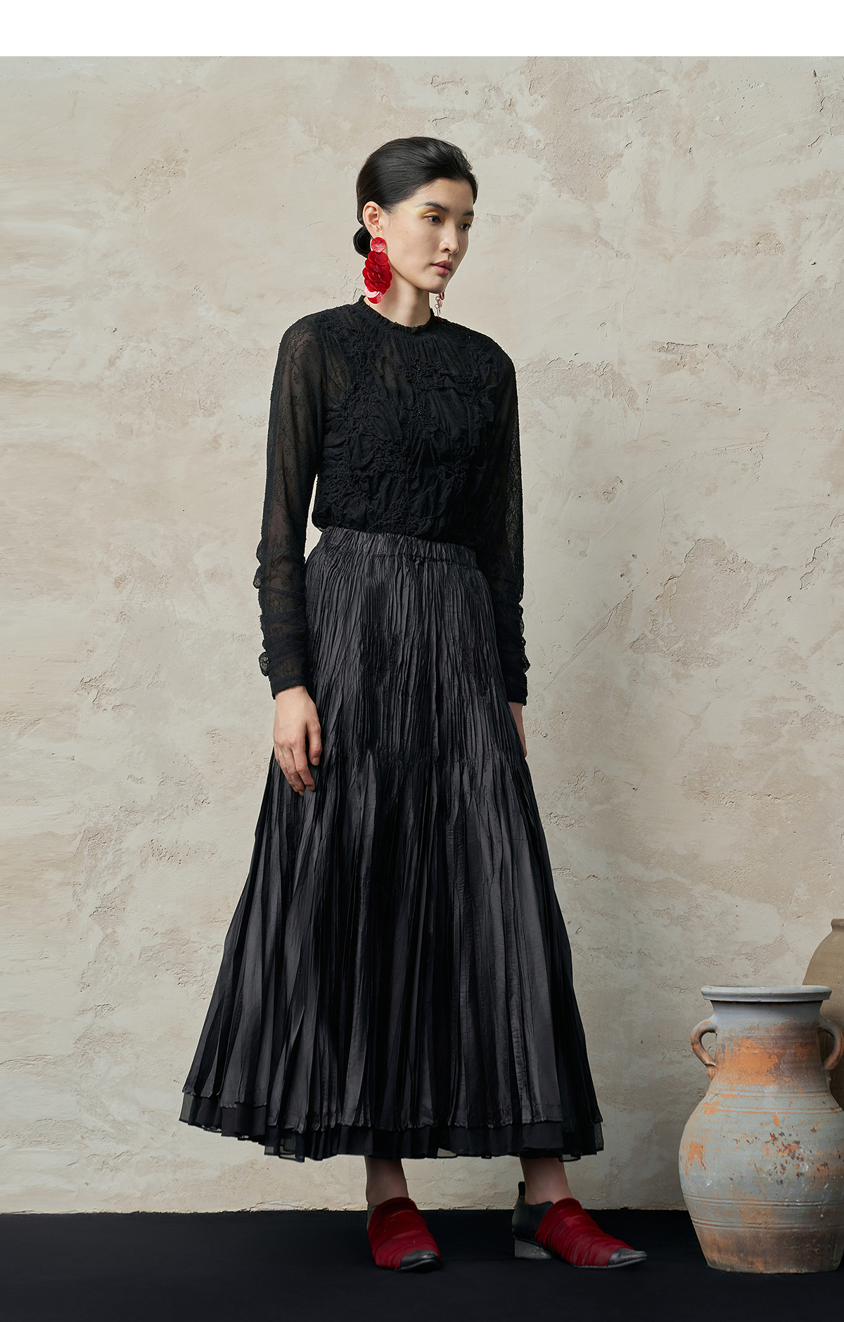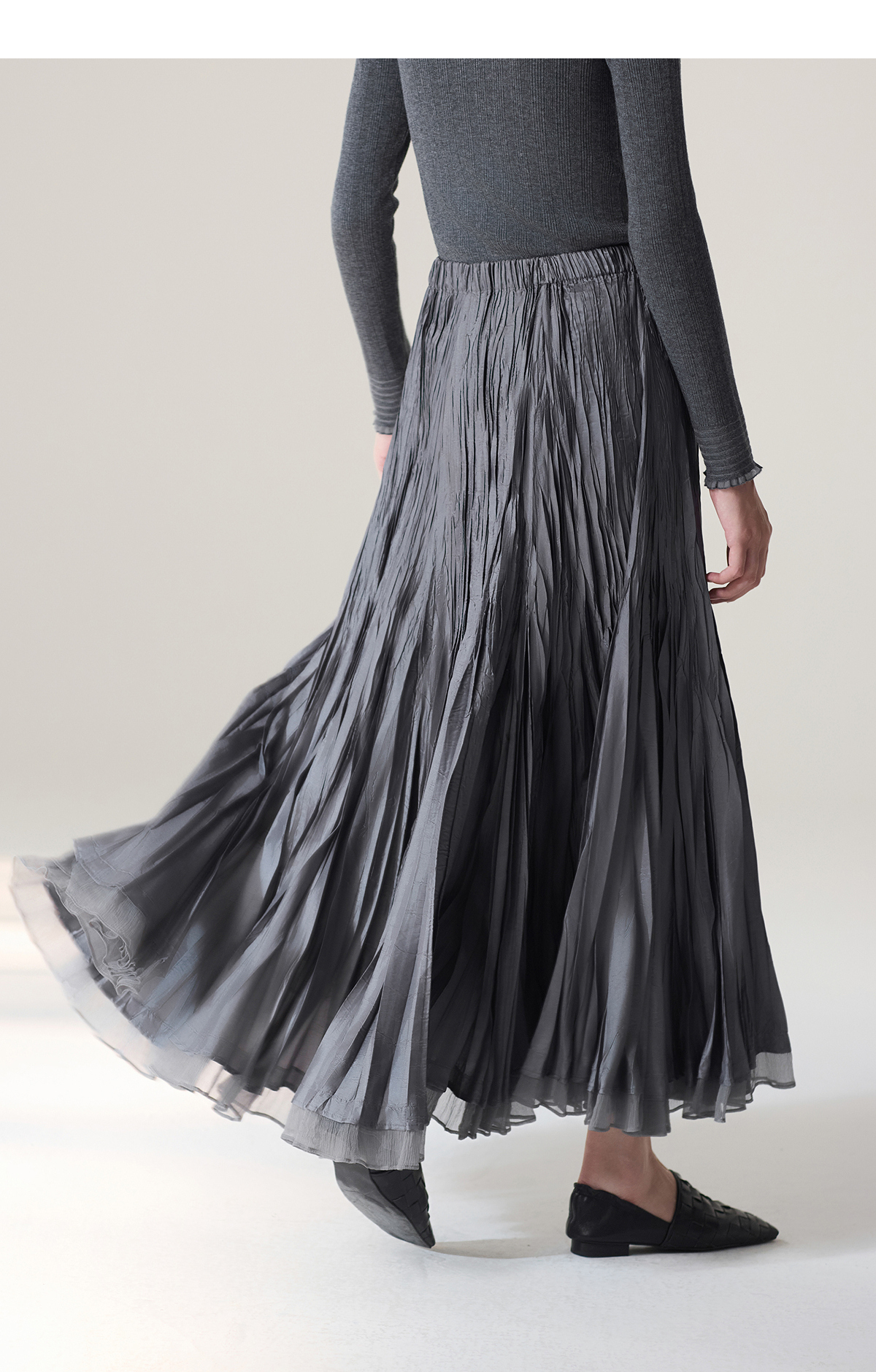 【林栖设计小店】(藏青色/黑色预售12.11)碎钻手工捏褶皱半身裙紫色2025秋季拼真丝休闲文艺新款长裙女1953039