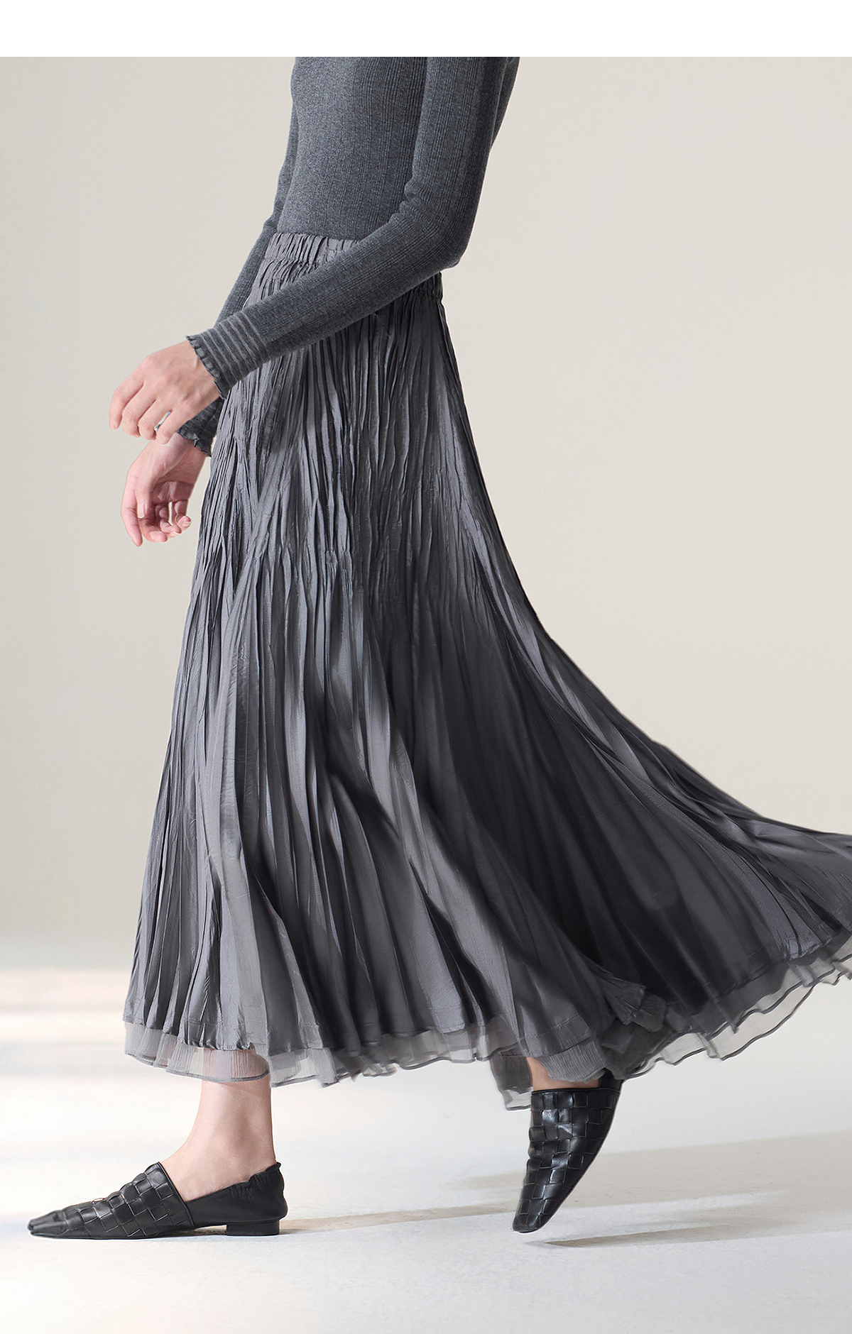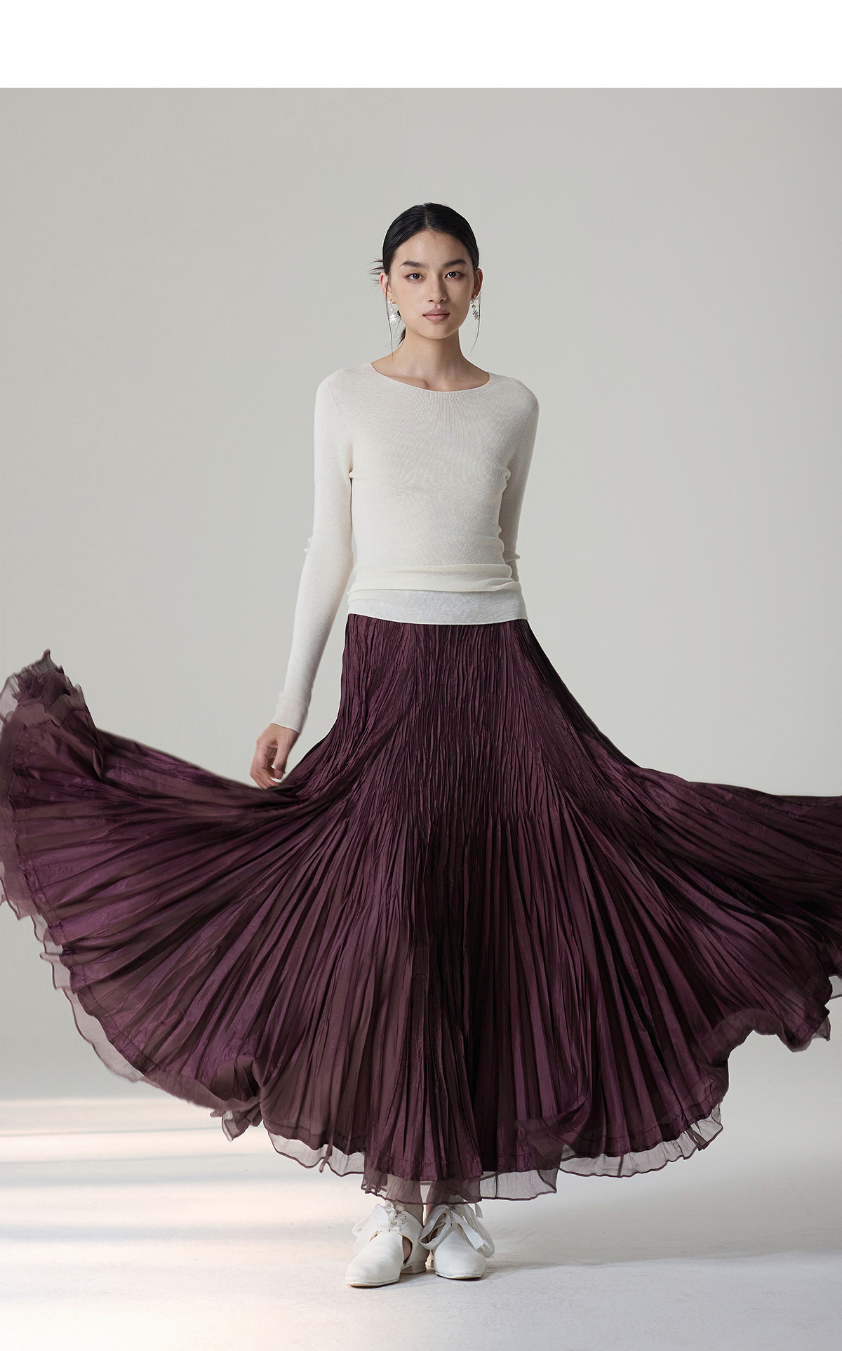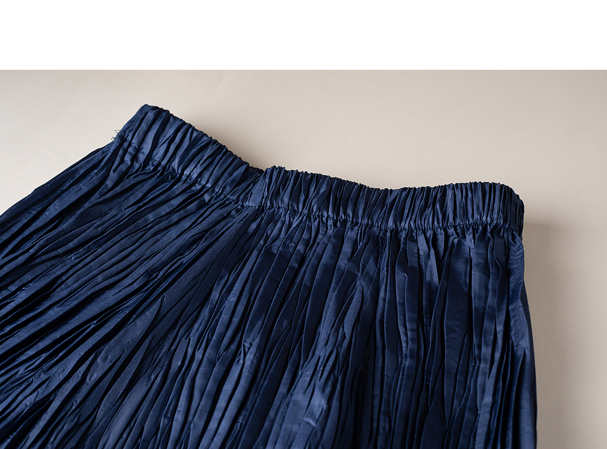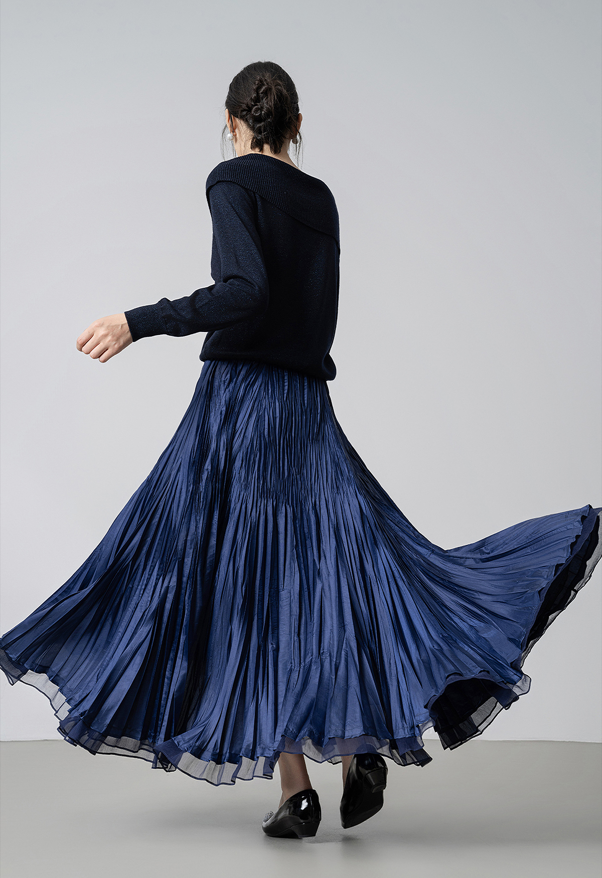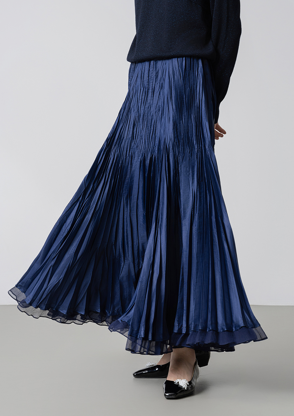 【林栖设计小店】(藏青色/黑色预售12.11)碎钻手工捏褶皱半身裙紫色2025秋季拼真丝休闲文艺新款长裙女1953039