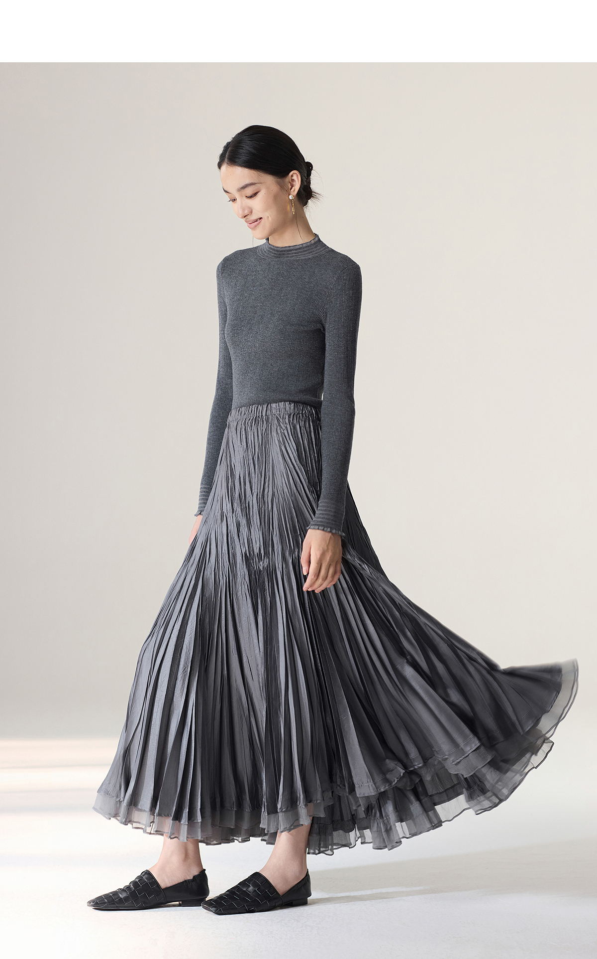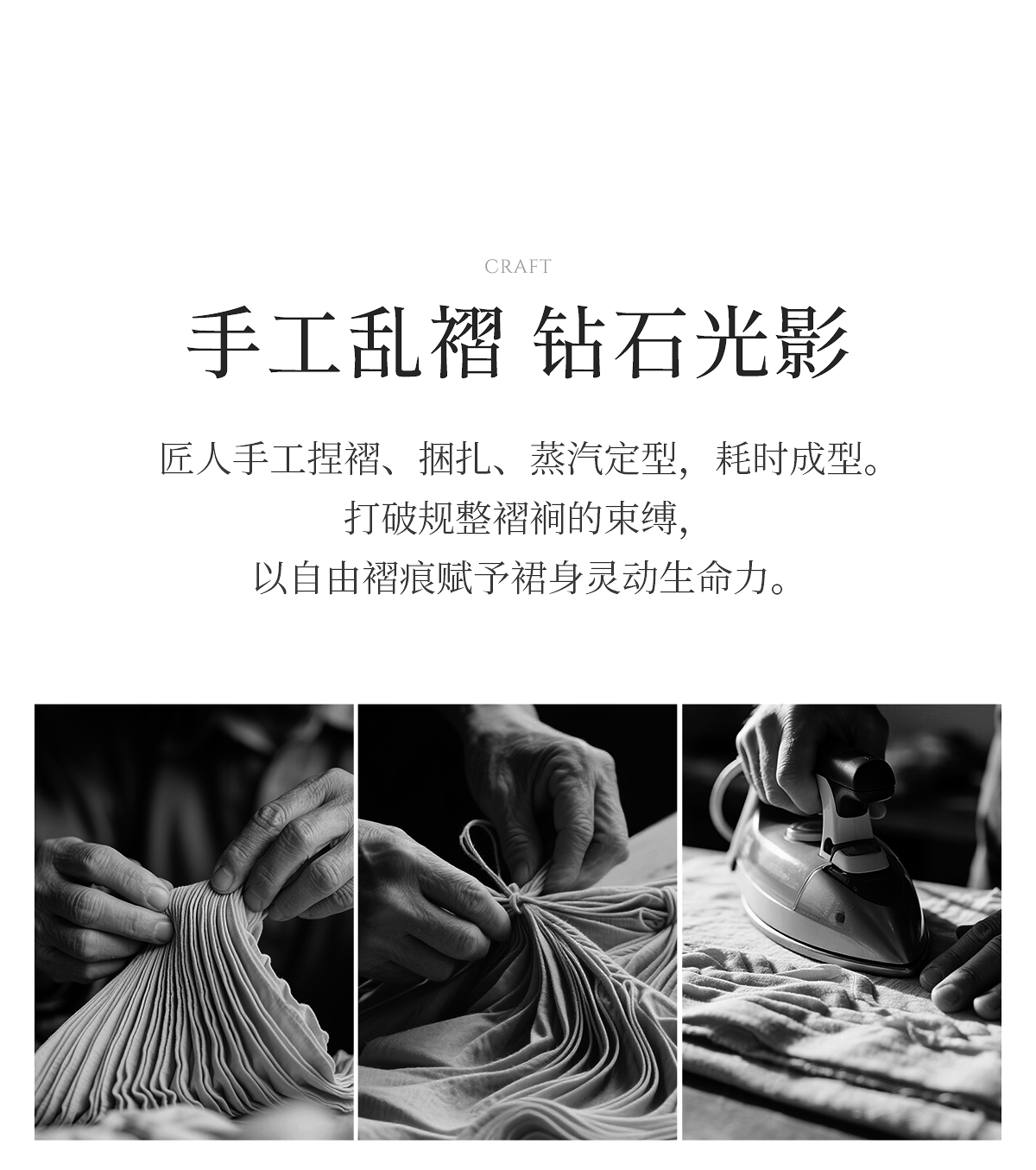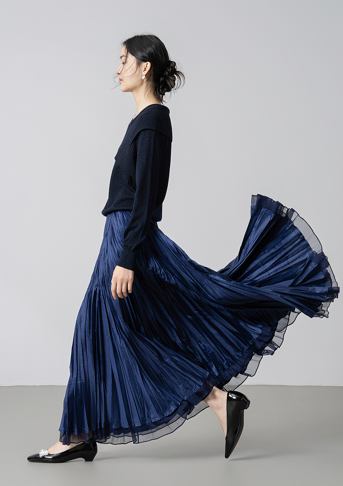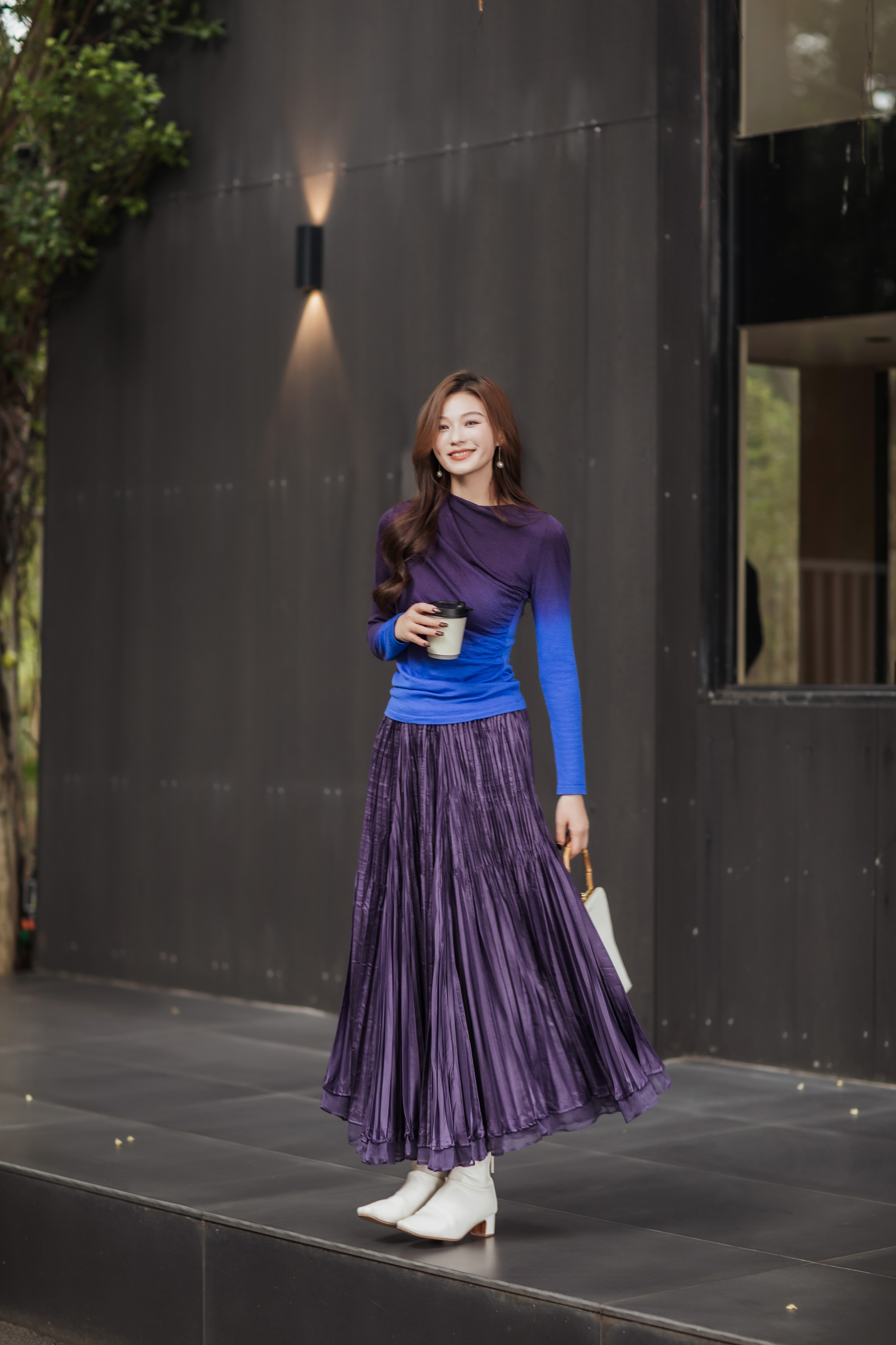 【林栖设计小店】(藏青色/黑色预售12.11)碎钻手工捏褶皱半身裙紫色2025秋季拼真丝休闲文艺新款长裙女1953039