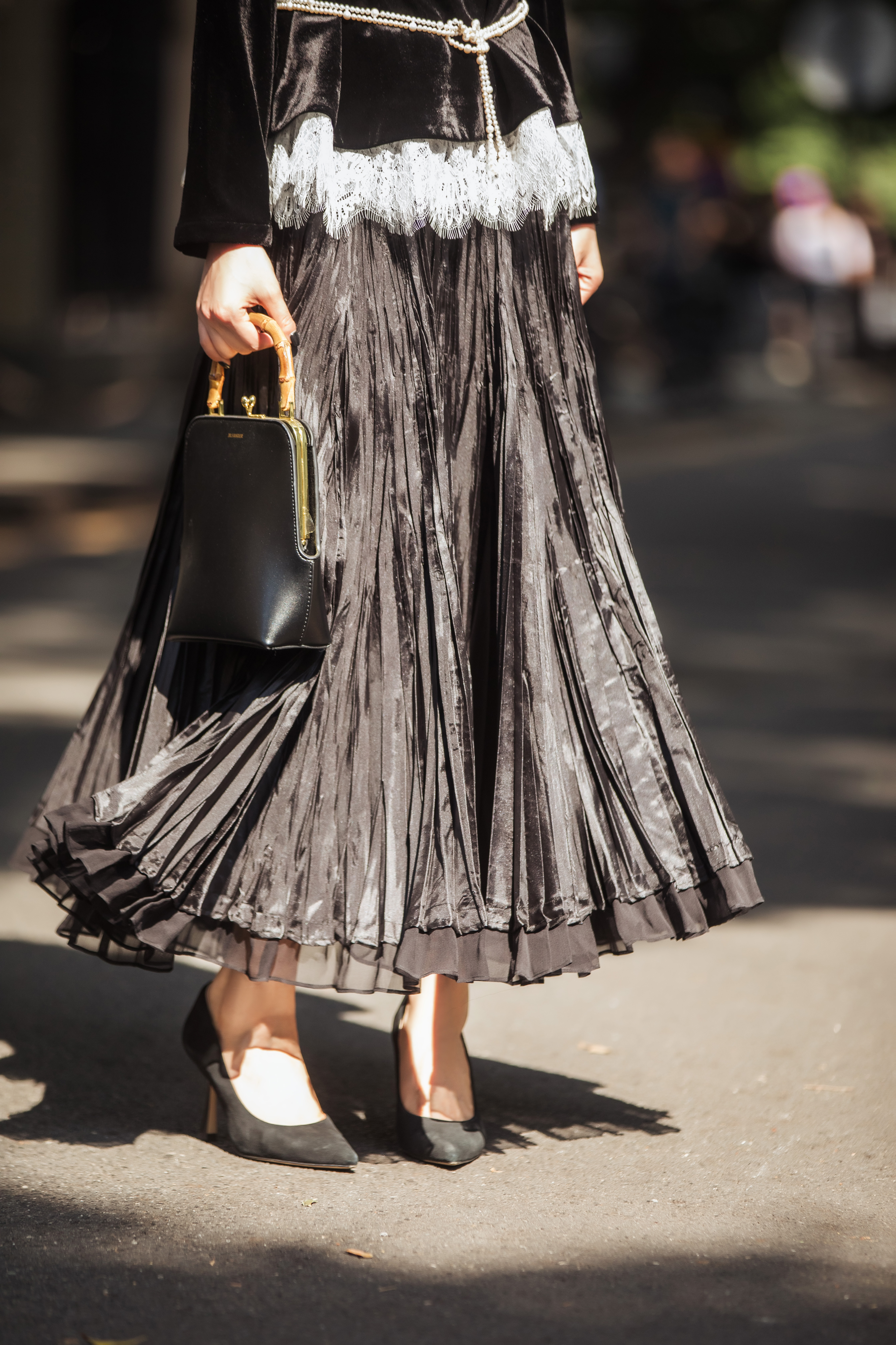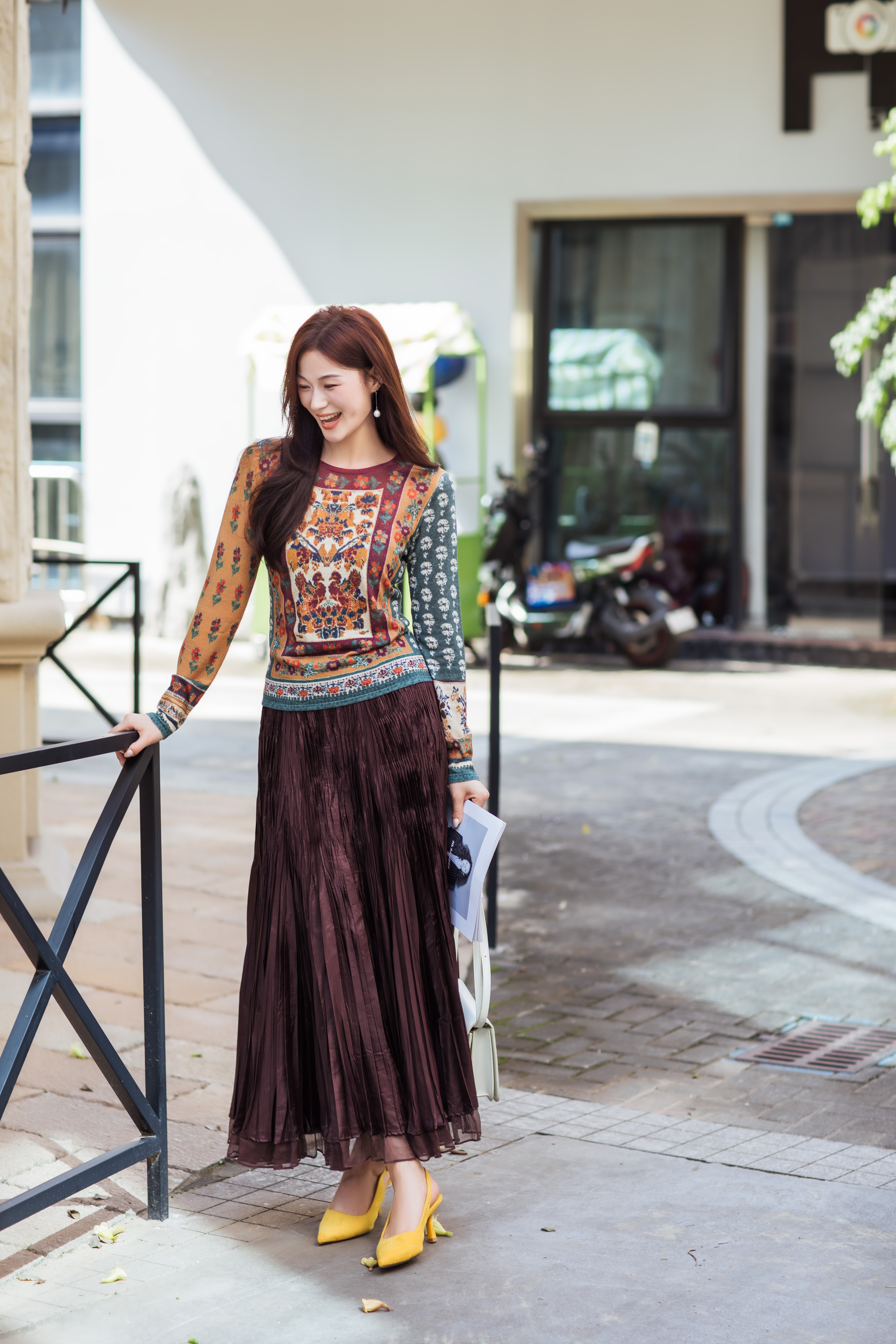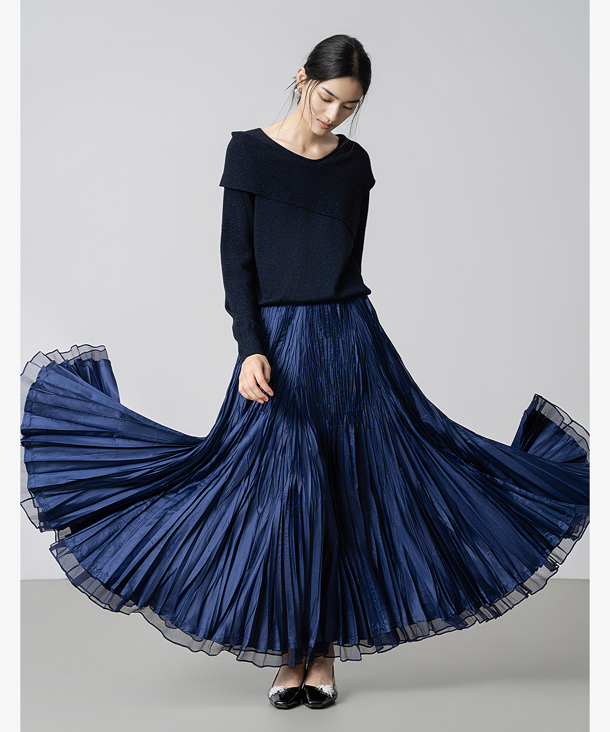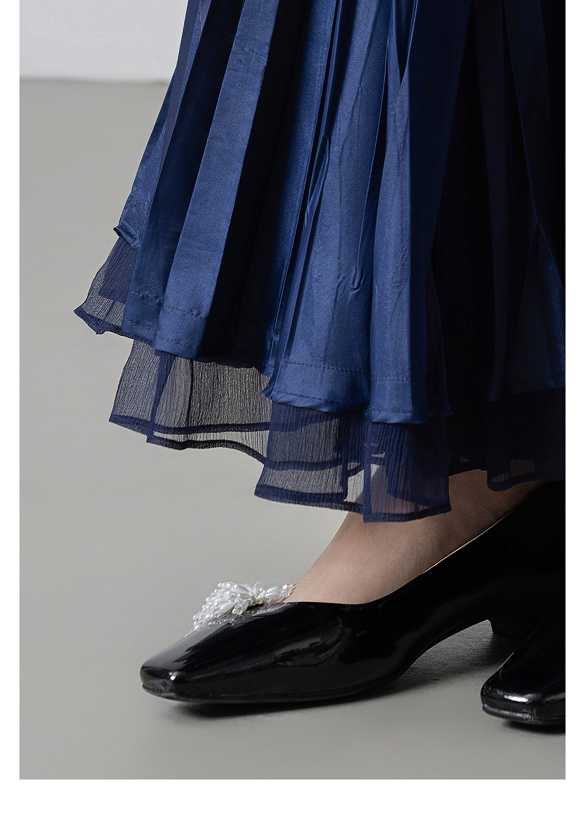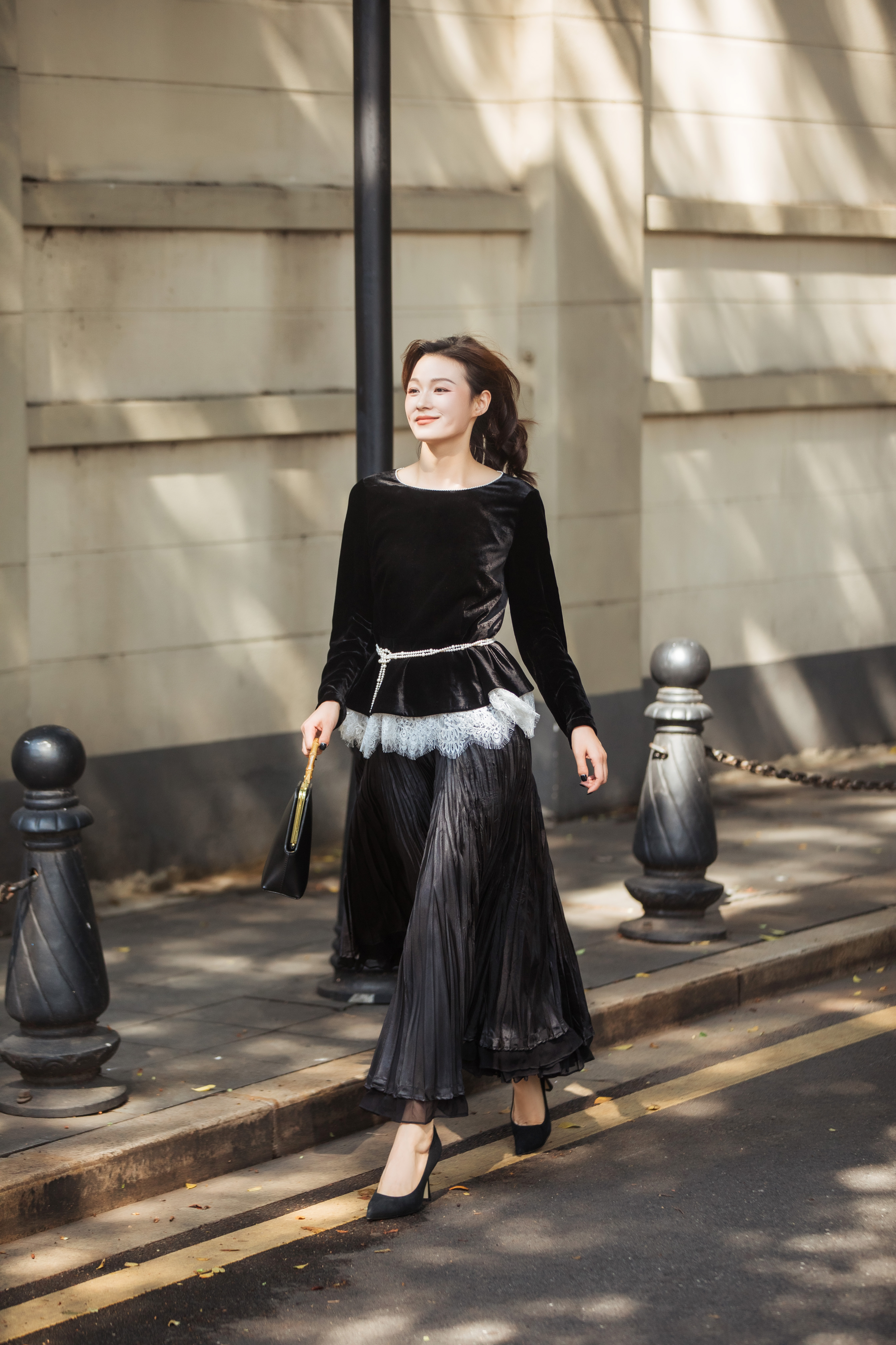 【林栖设计小店】(藏青色/黑色预售12.11)碎钻手工捏褶皱半身裙紫色2025秋季拼真丝休闲文艺新款长裙女1953039