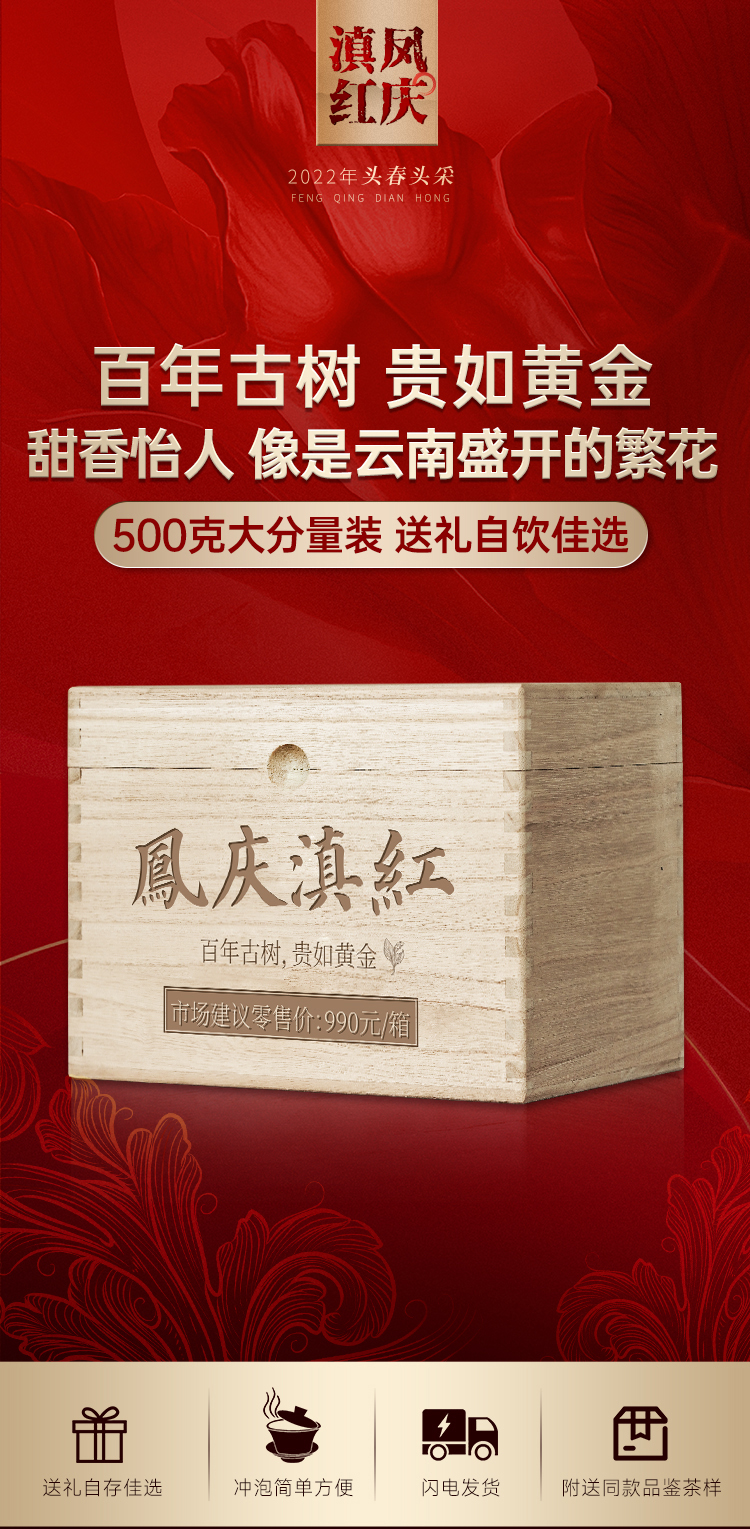 现货直发【凤庆滇红】百年古树贵如黄金滇红之乡凤庆滇红福利回馈500克/箱送礼自饮佳选 商品图0