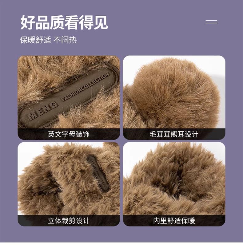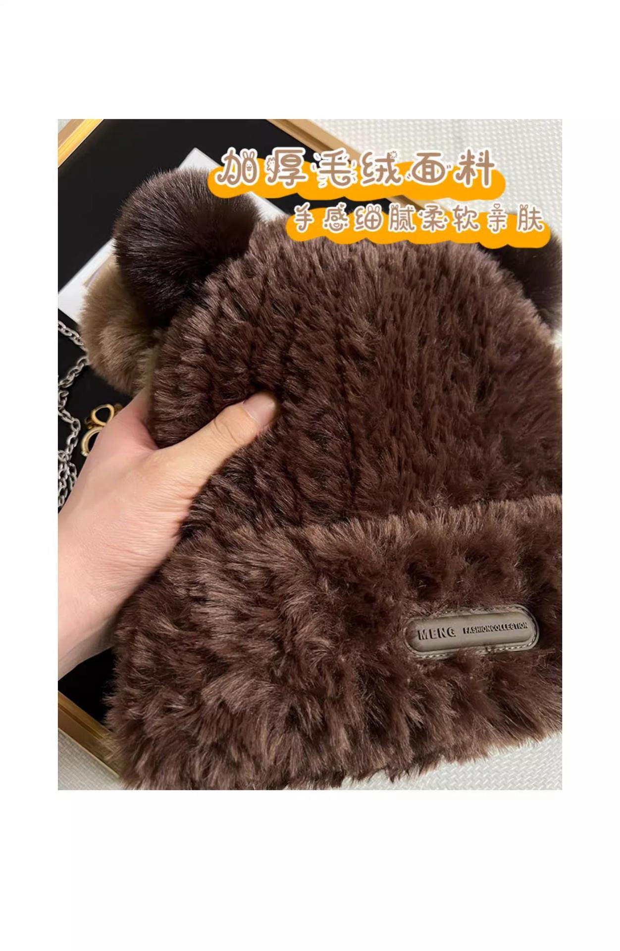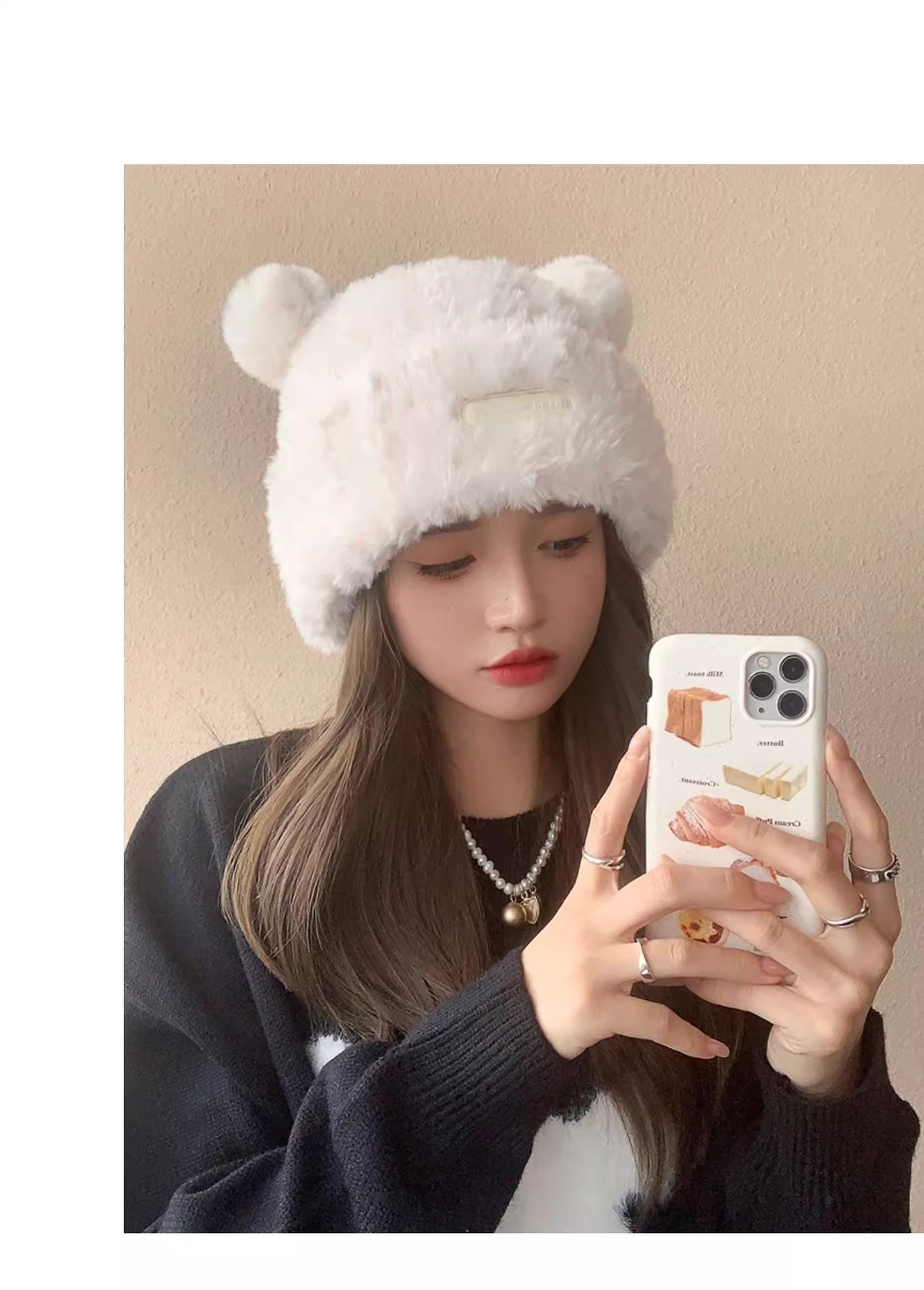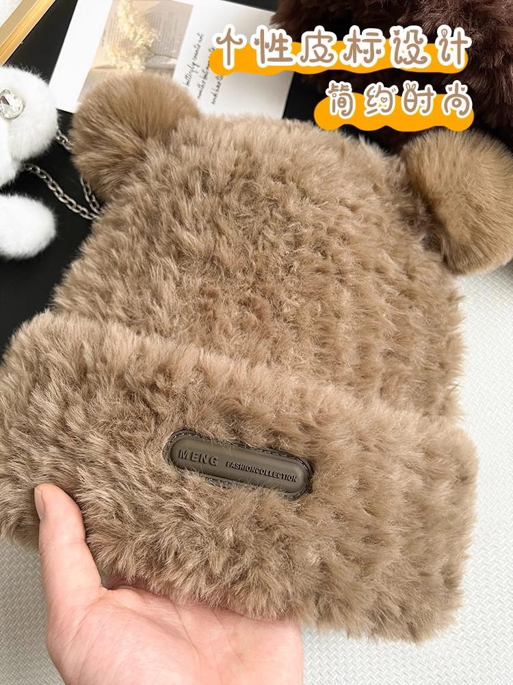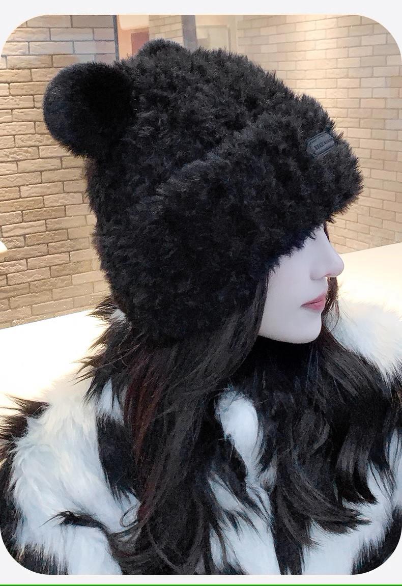 冬季新款可爱小熊毛绒帽女保暖加厚护耳帽大头围针织毛线帽子