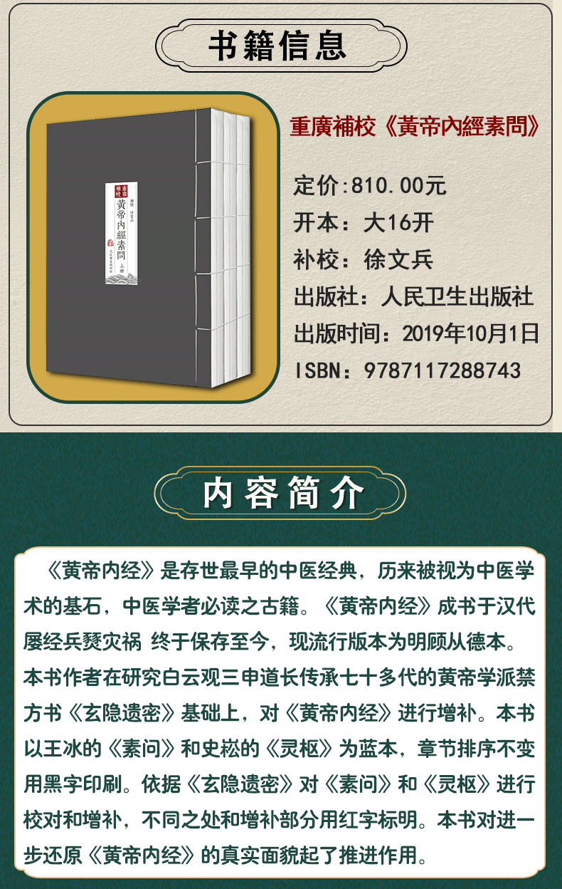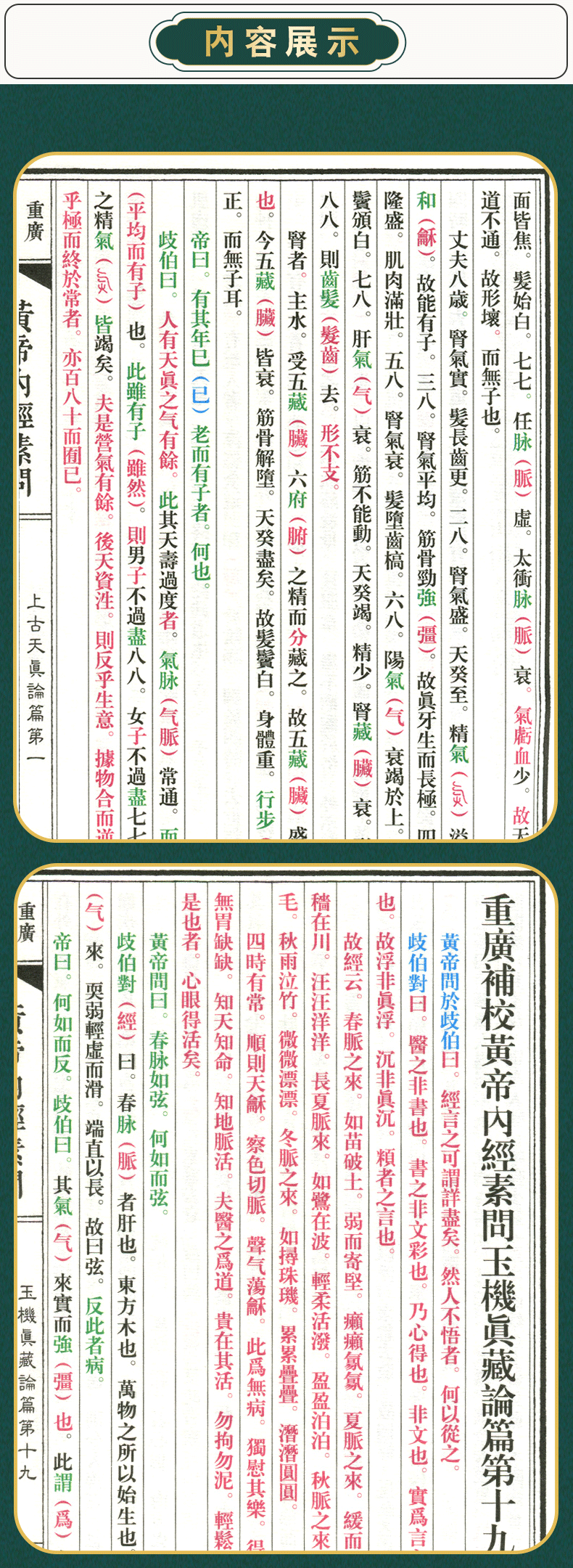 书名:四色版重廣補校黃帝內經素問+靈樞厚朴堂中医学堂徐文兵补校