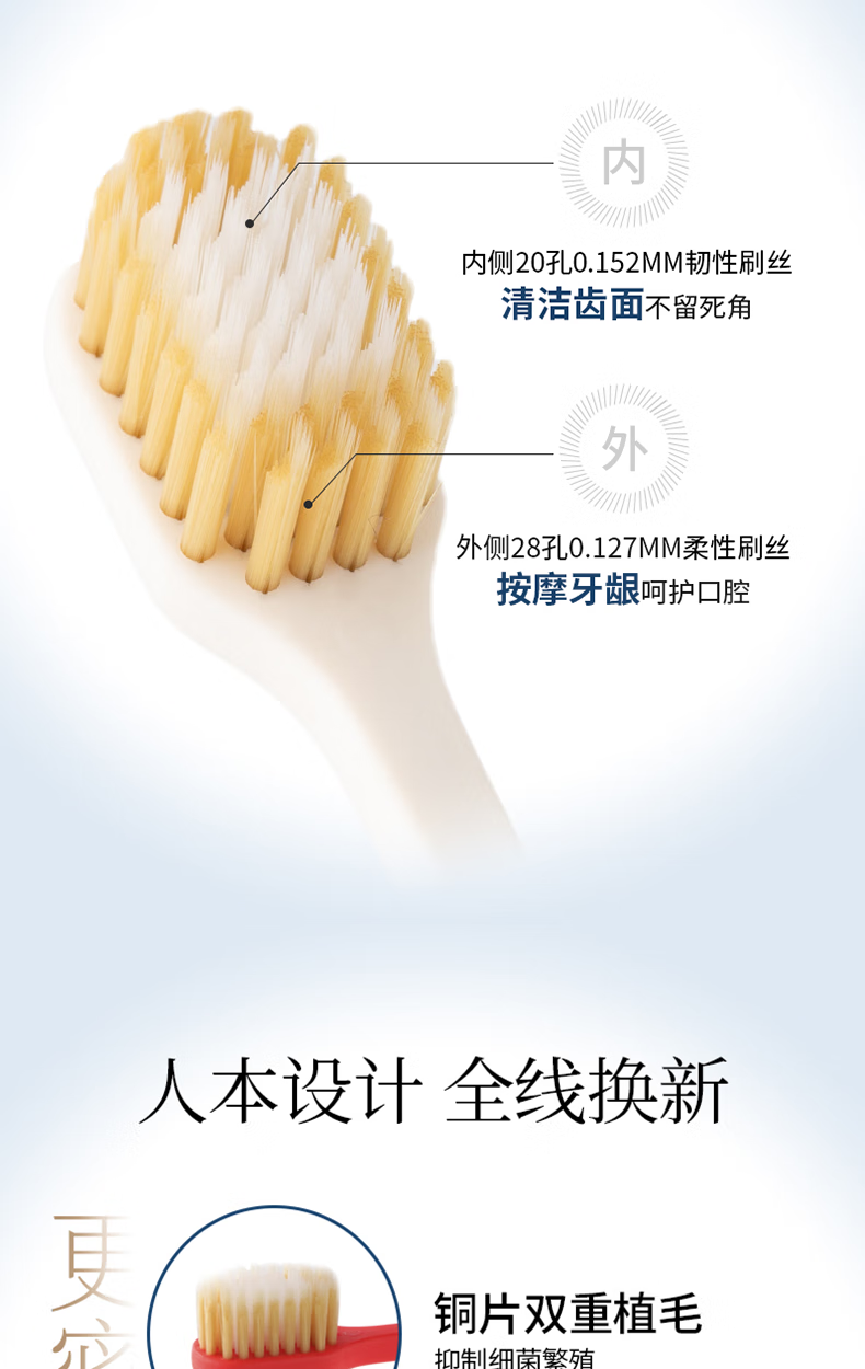 由美枝4色牙刷 48孔双重洁柔牙刷 舒适宽头软毛家庭装