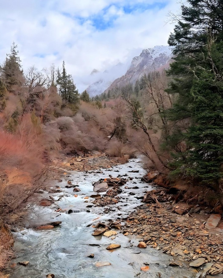最后在生长着一片人参果地的【人生果坪】,看小溪静静流淌,牦牛在旁边静静吃草,双桥沟的静谧时光完美体现