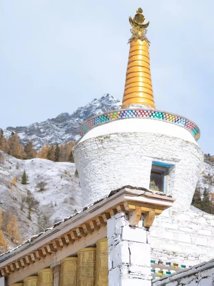 沿着【布达拉峰】向上走,白塔矗立,顺时针行走,是虔诚的佛教徒
